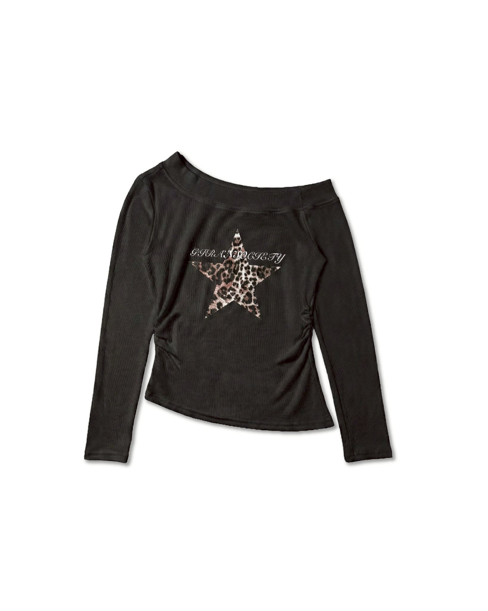 斜肩豹紋星星打底長袖上衣