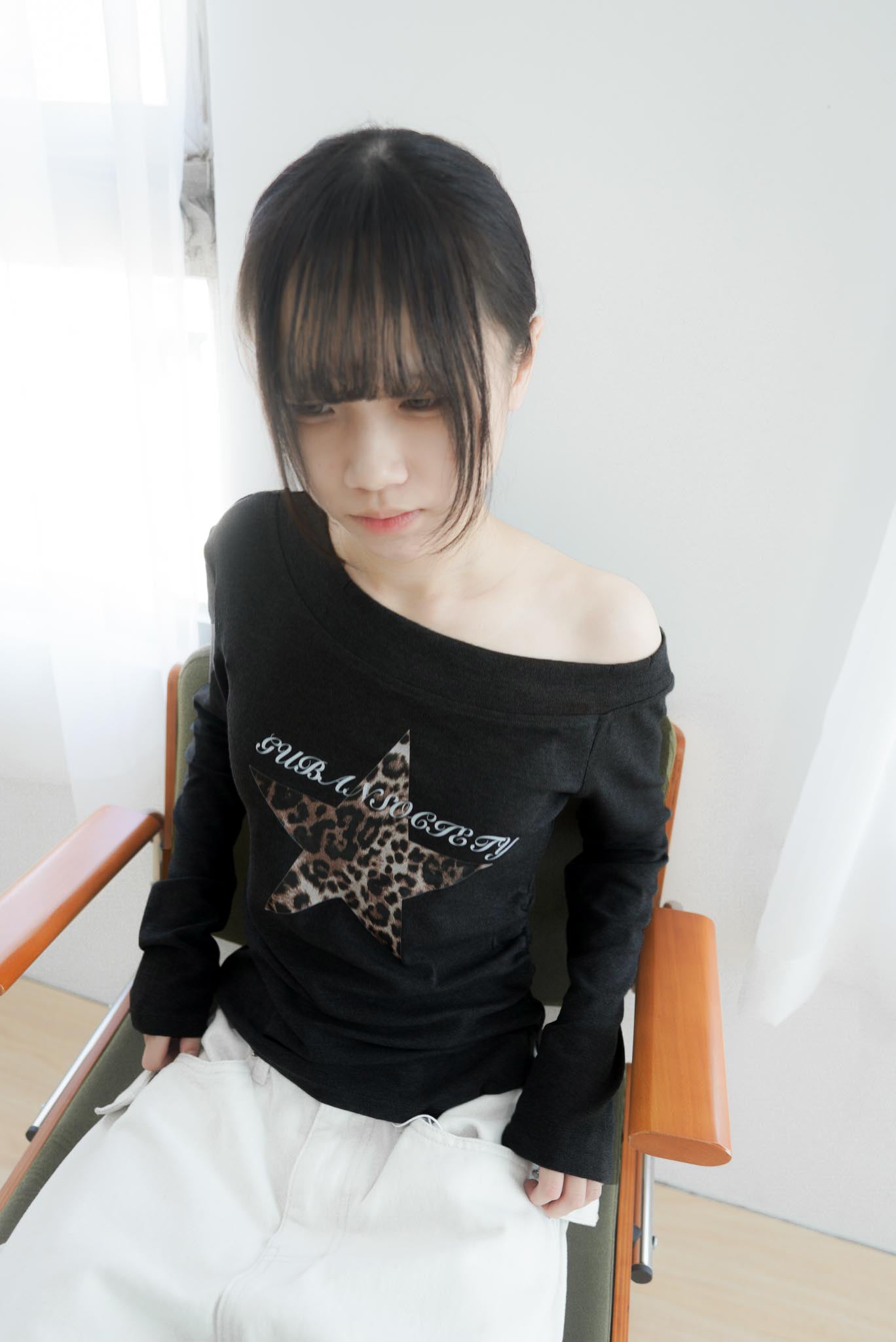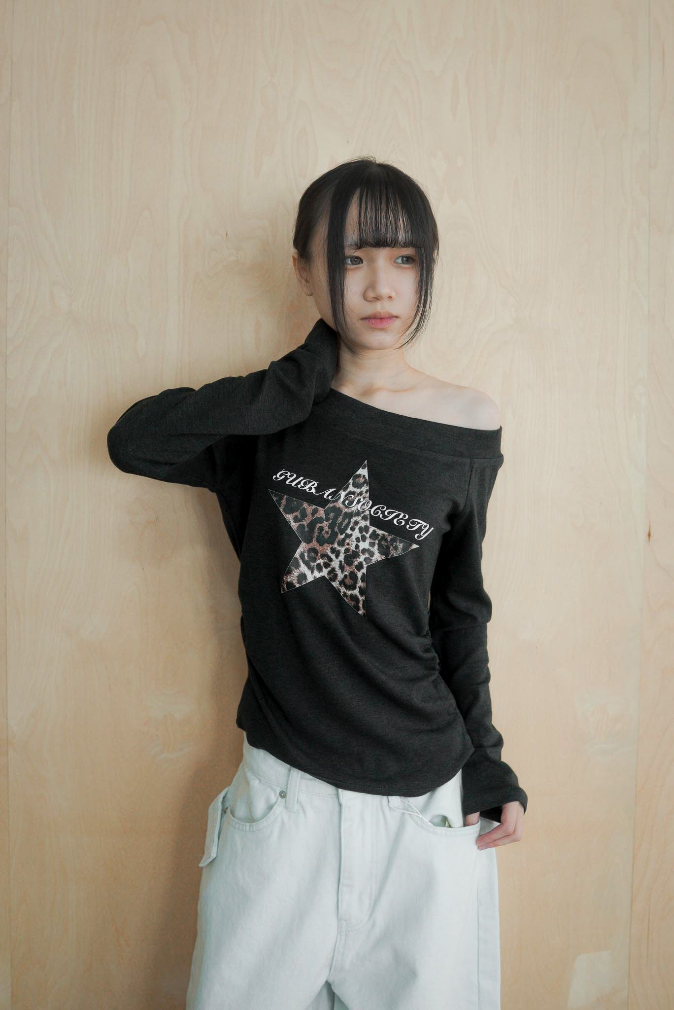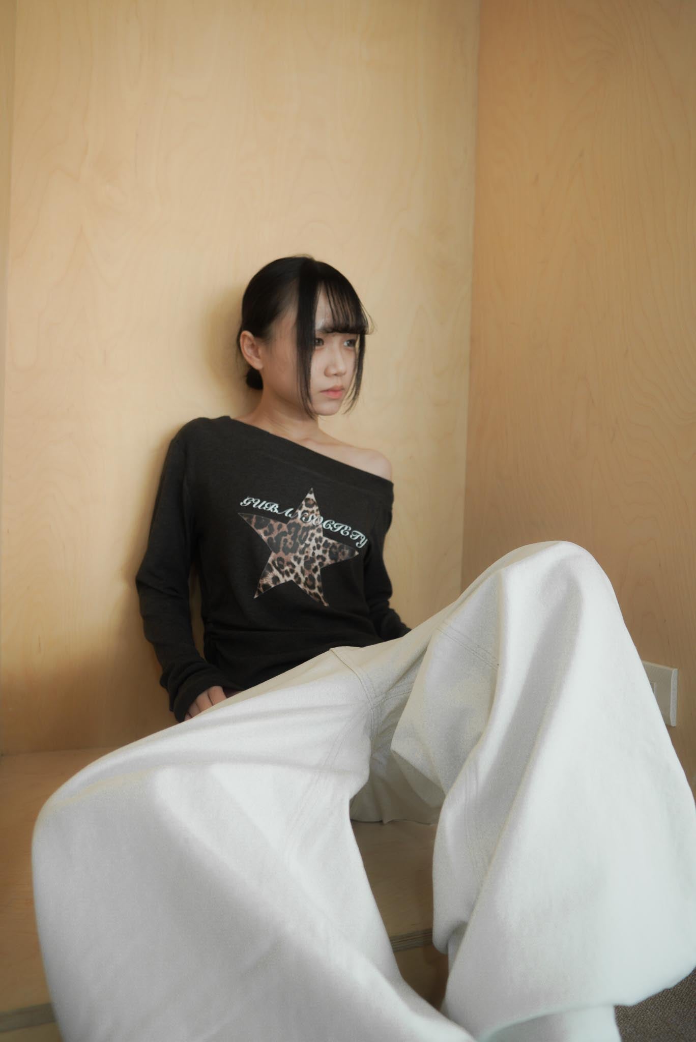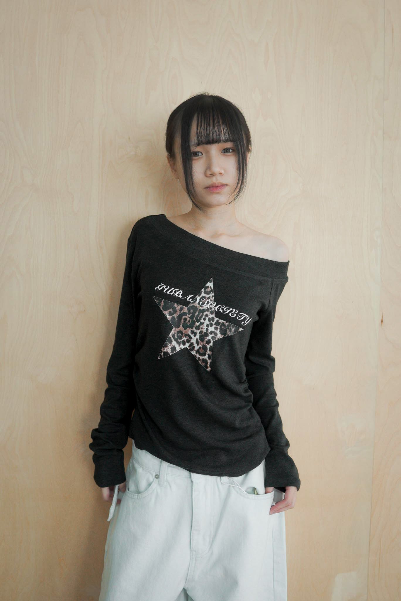 Q140斜肩豹紋星星打底長袖上衣