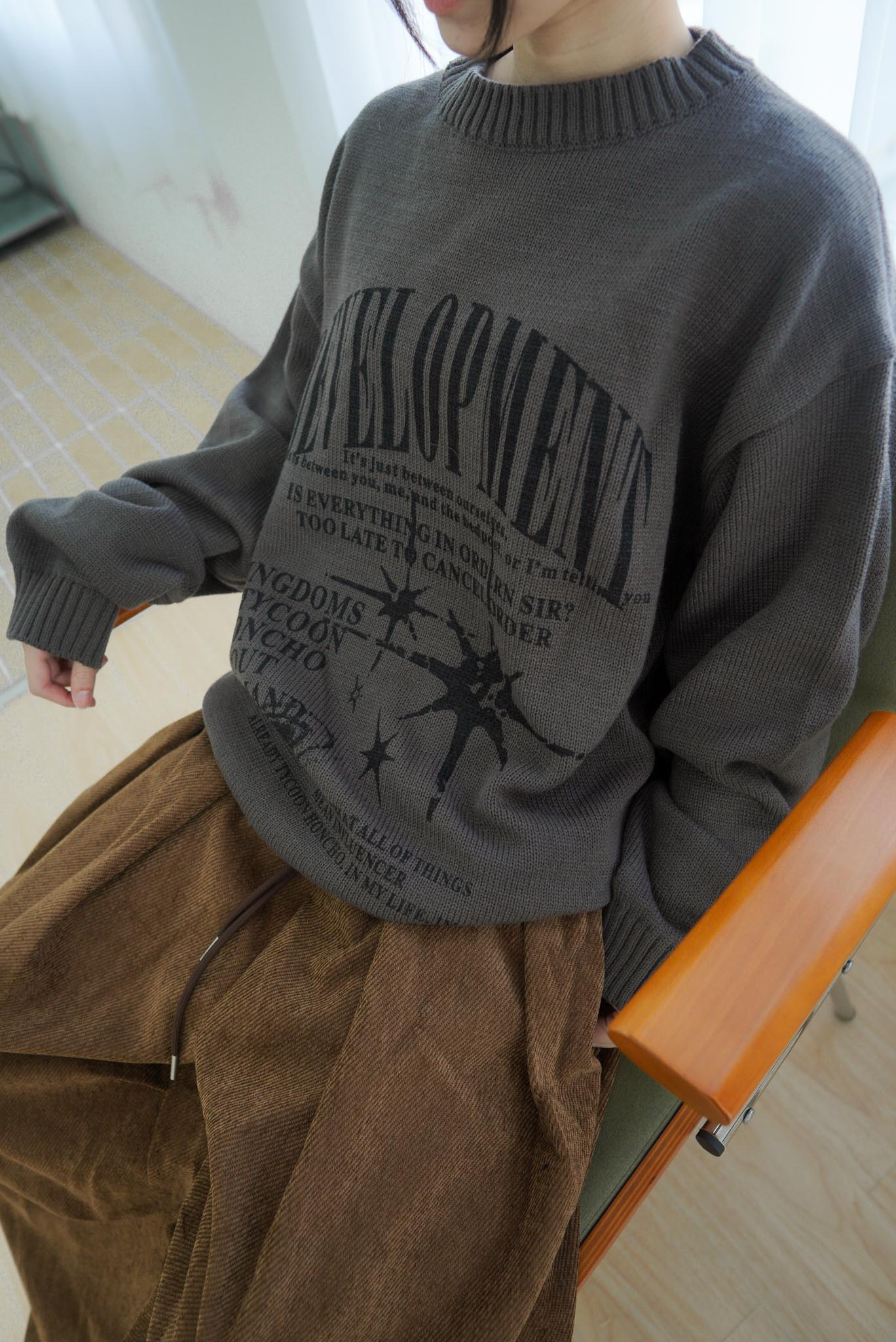 星星字母長袖針織T