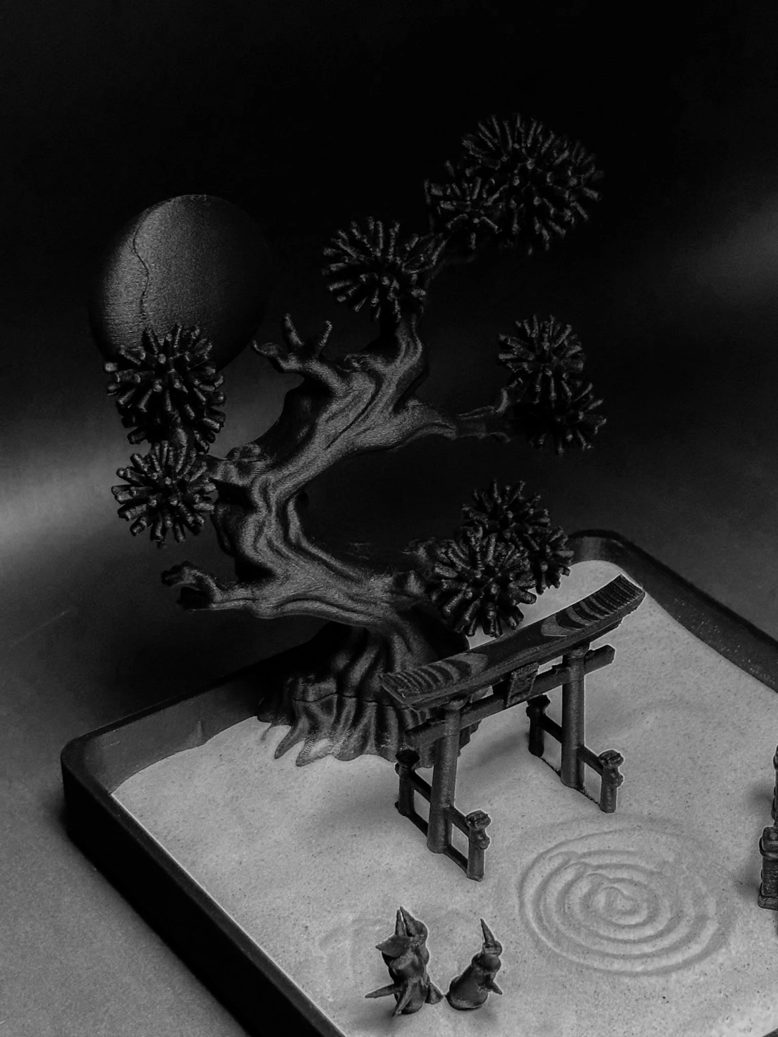 托盤、沙子(黑/白)、竹子、小橋、鳥居、月・五針松、