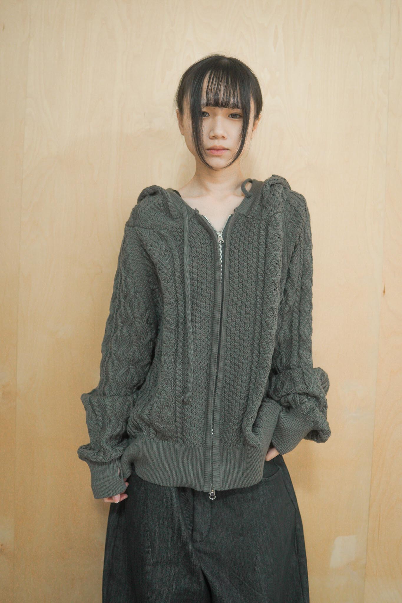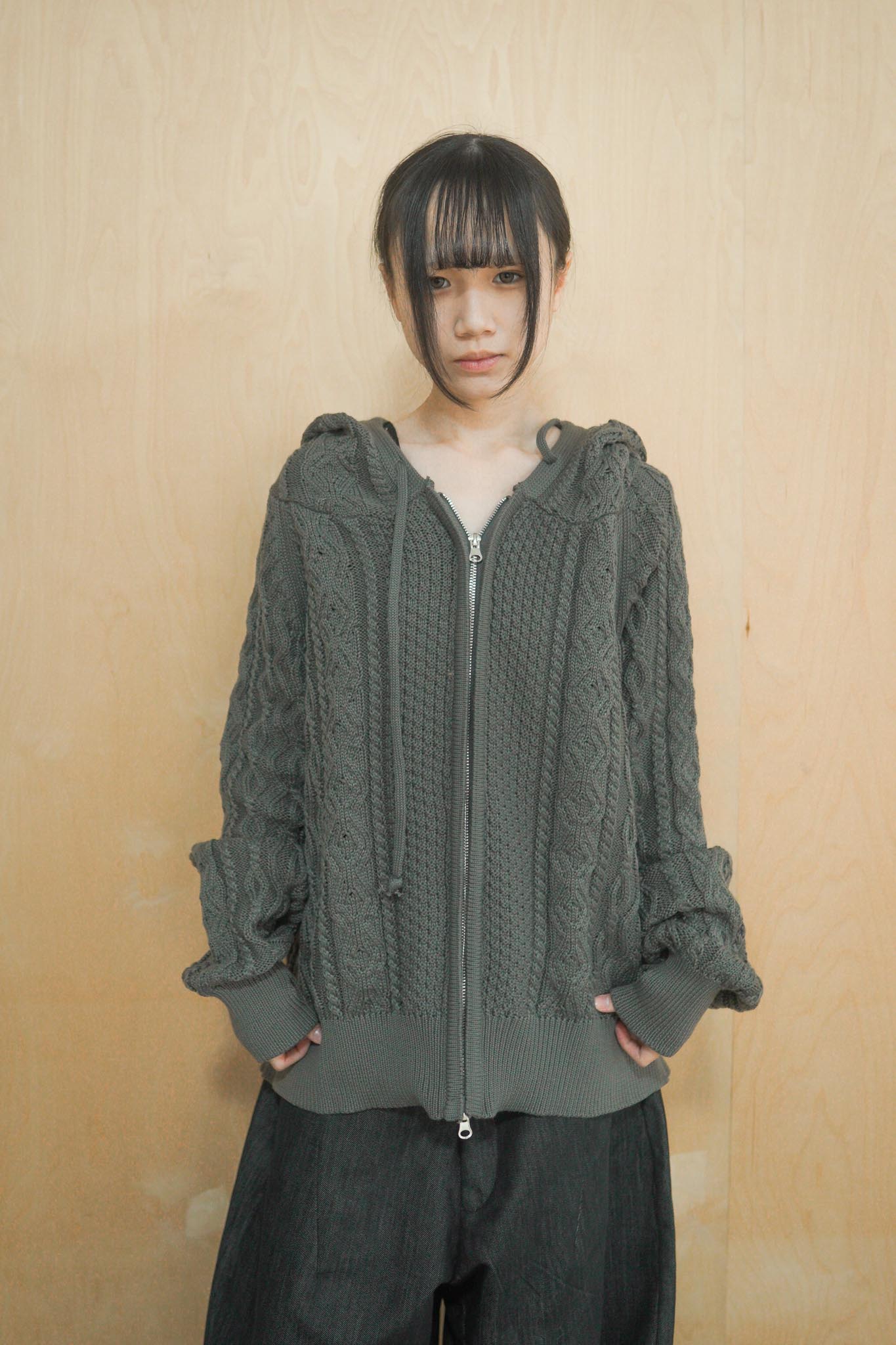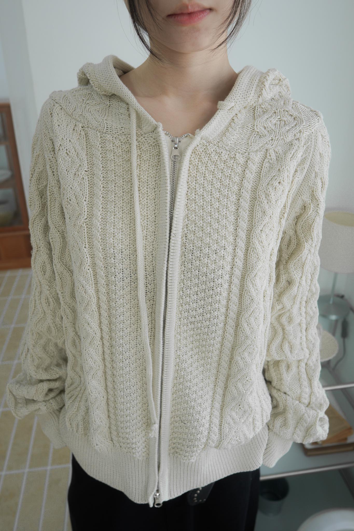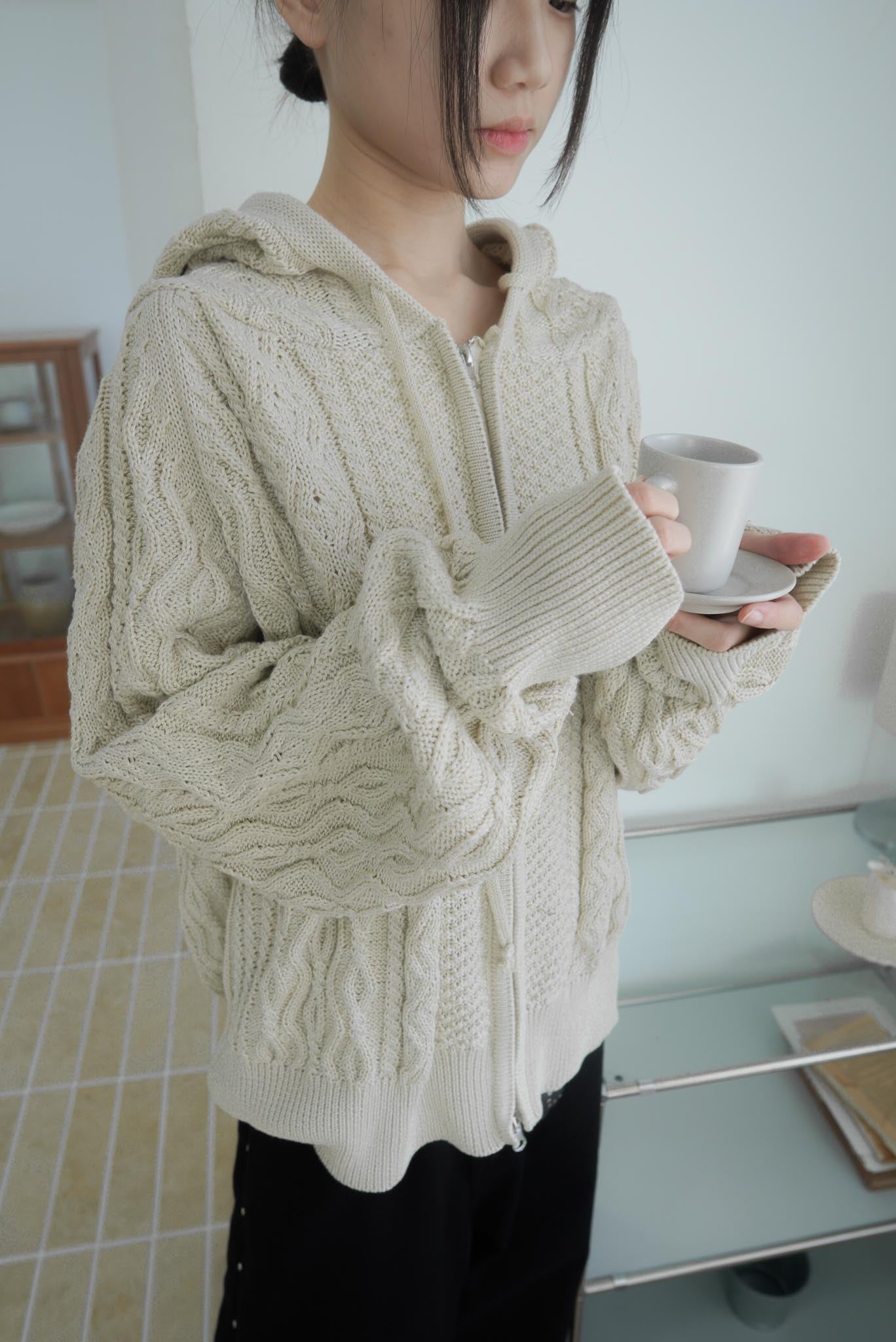 【GUBAN】JP-3278"LOCALMANSION" 正韓 寬鬆 麻花 暖手 連帽 針織外套