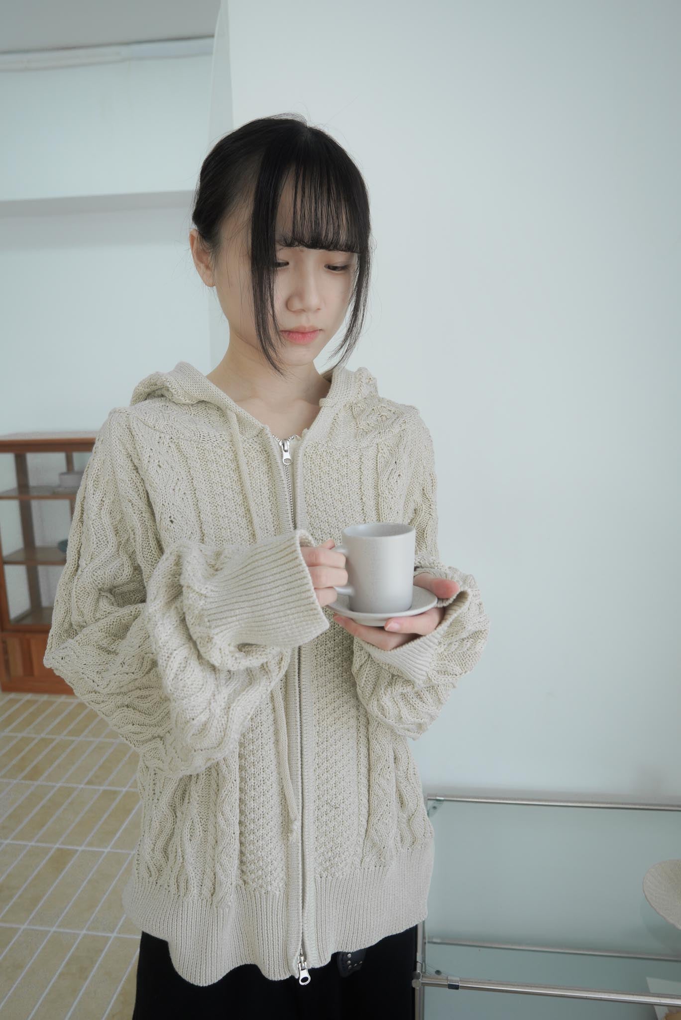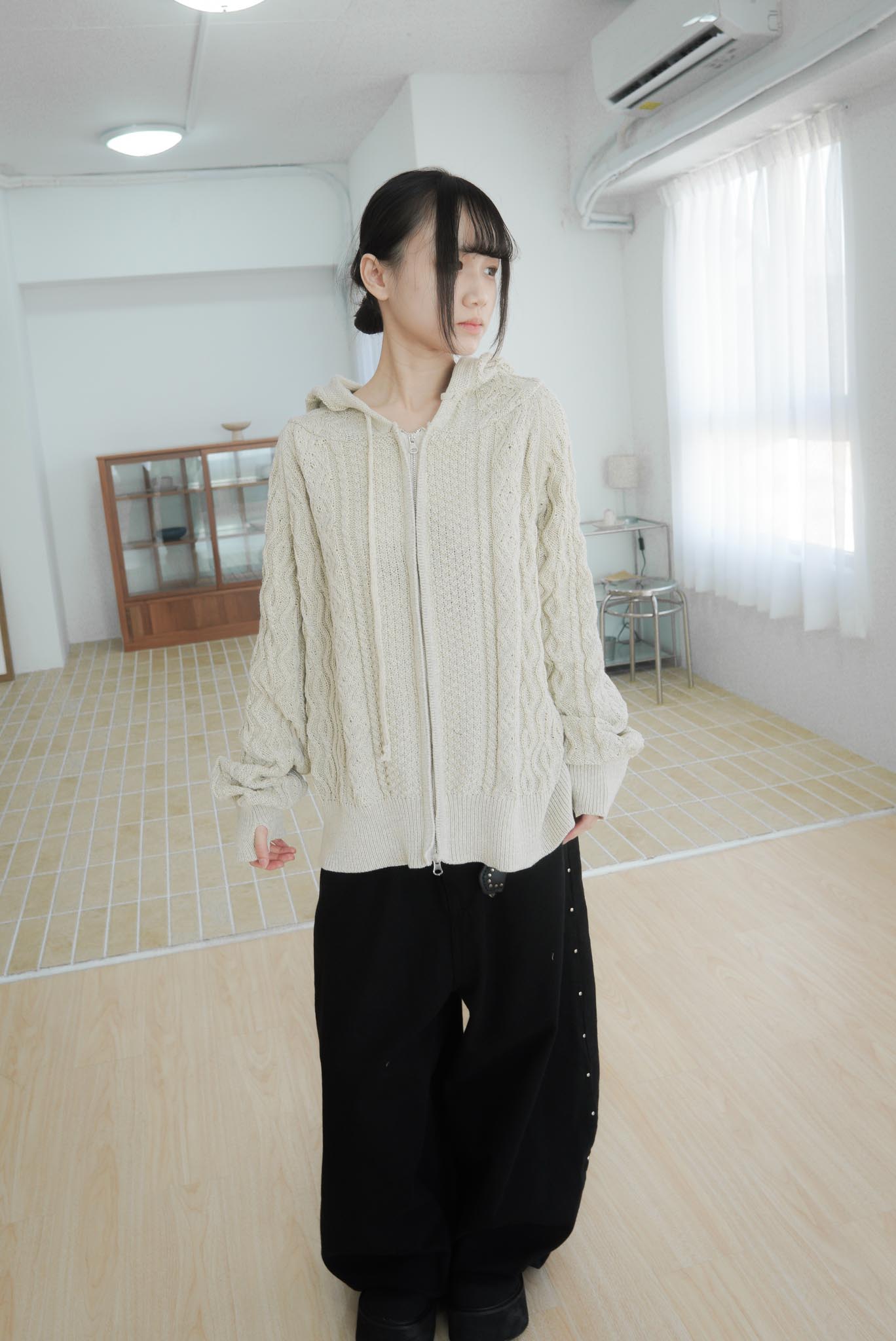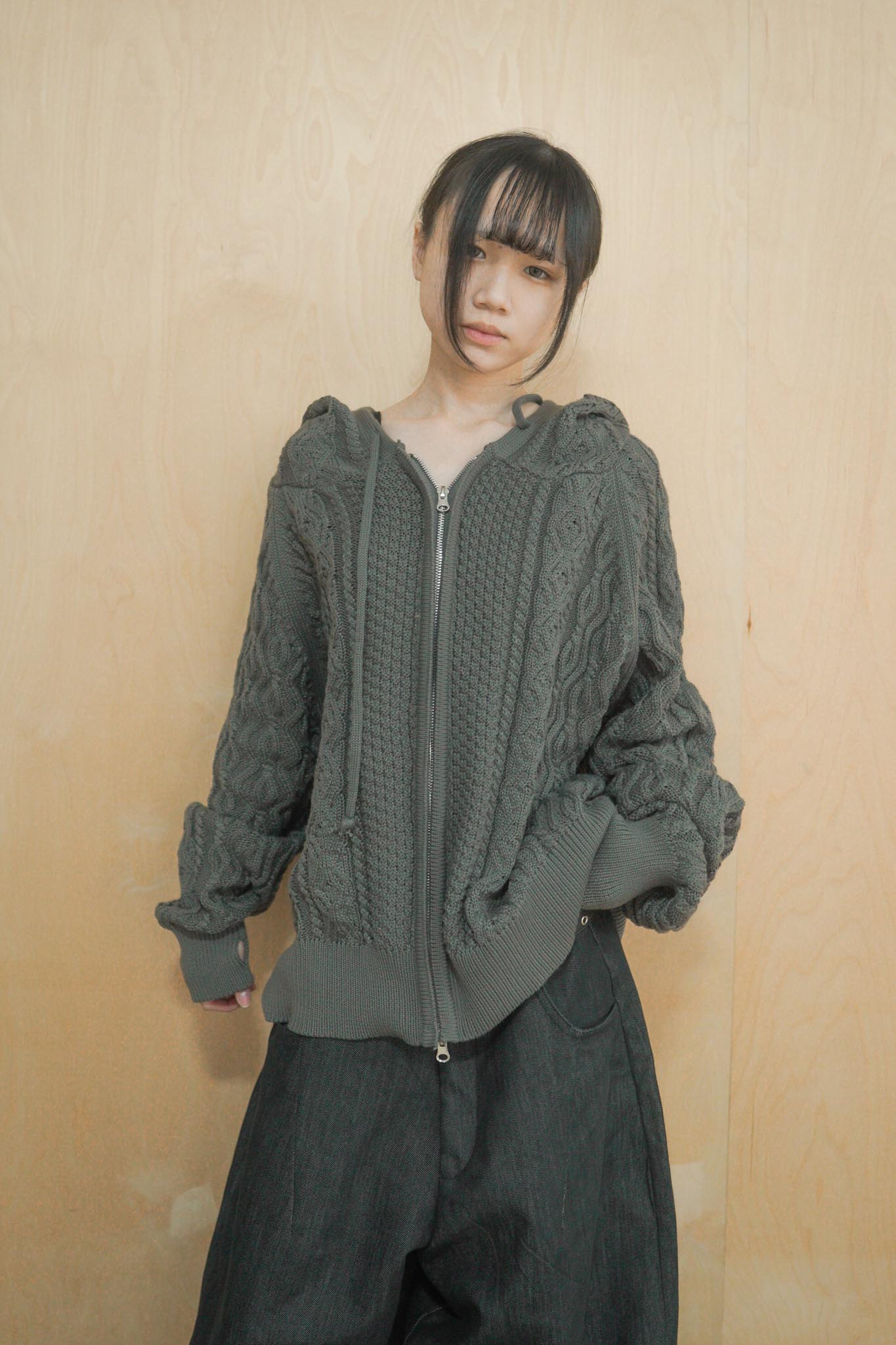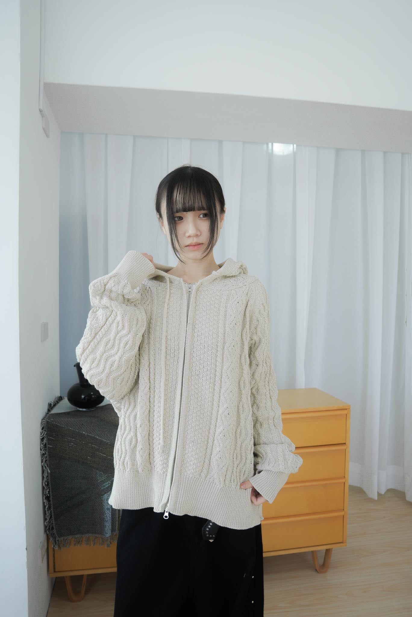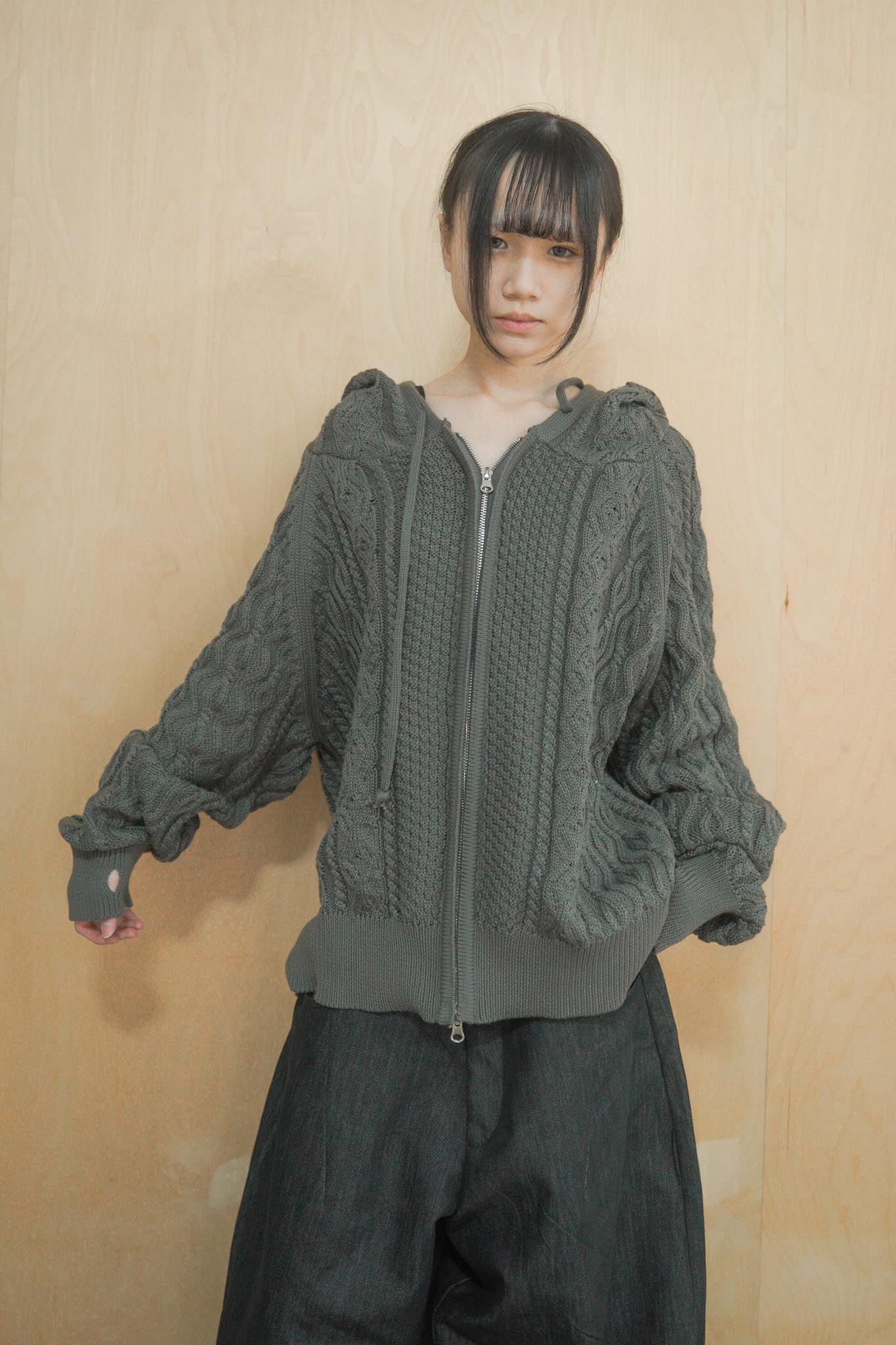 【GUBAN】JP-3278"LOCALMANSION" 正韓 寬鬆 麻花 暖手 連帽 針織外套