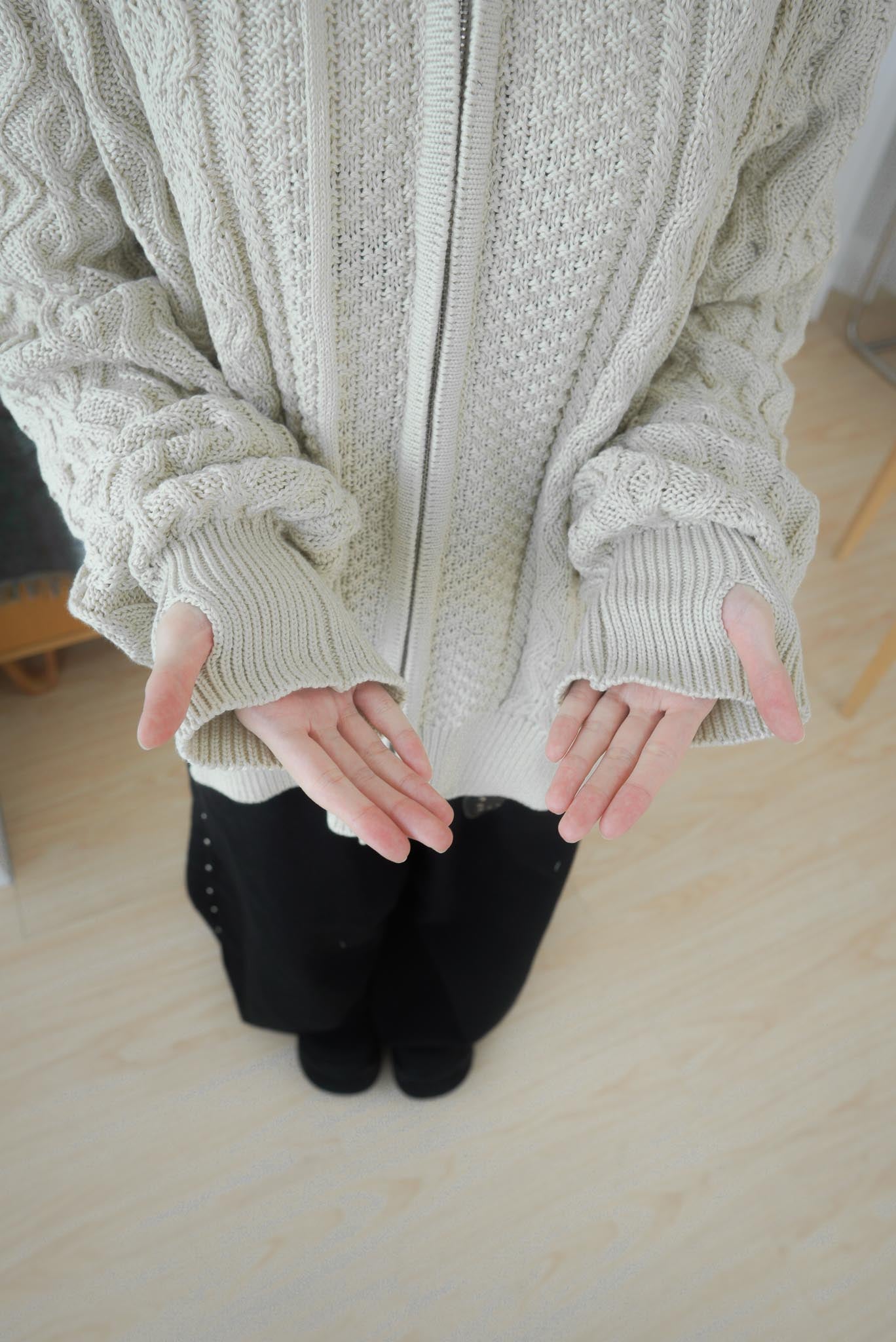 正韓寬鬆麻花暖手連帽針織外套