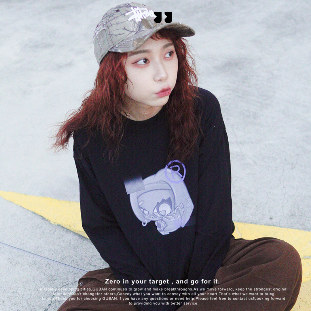 (現貨)【GUBAN】6th 插畫比賽 校園 215G boxy 長袖上衣 - y3k 上學兔