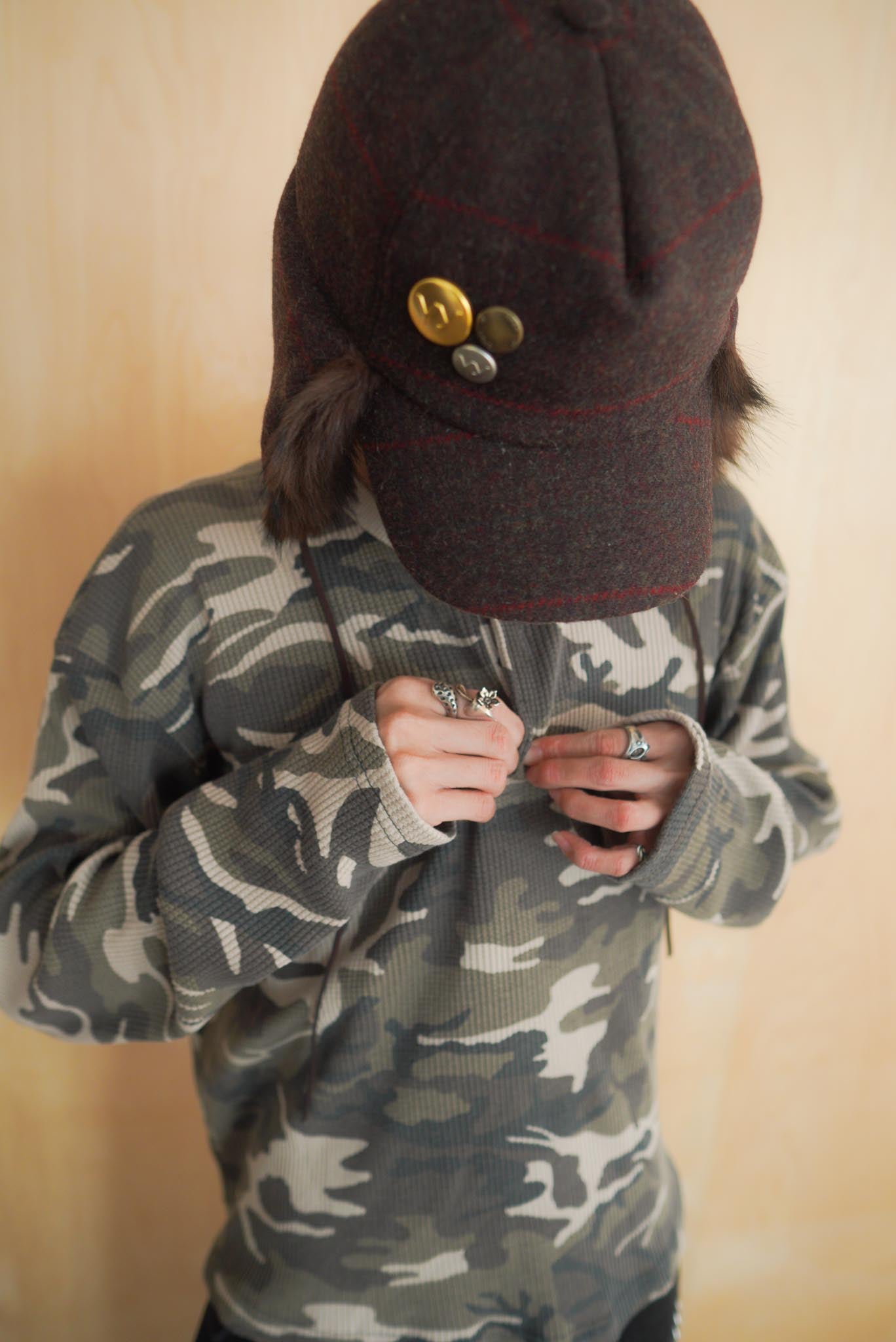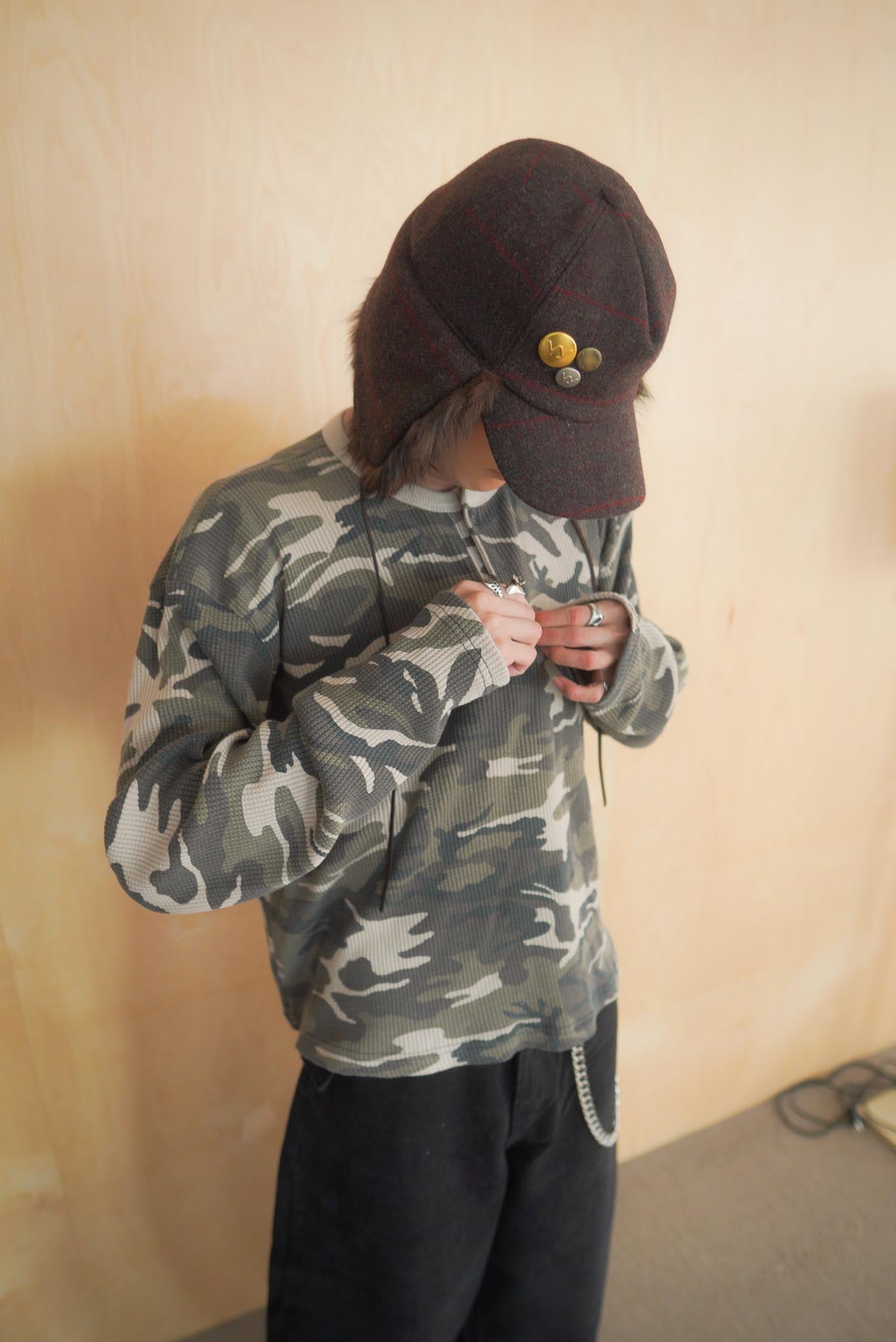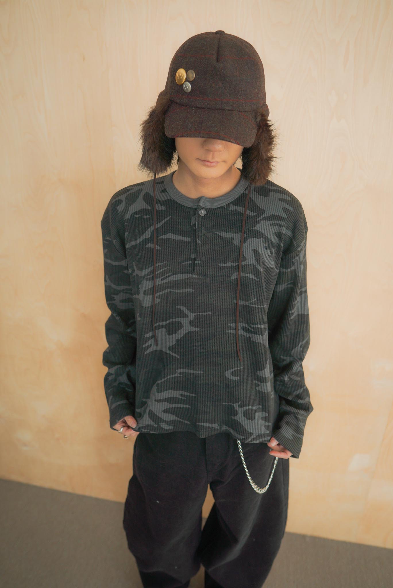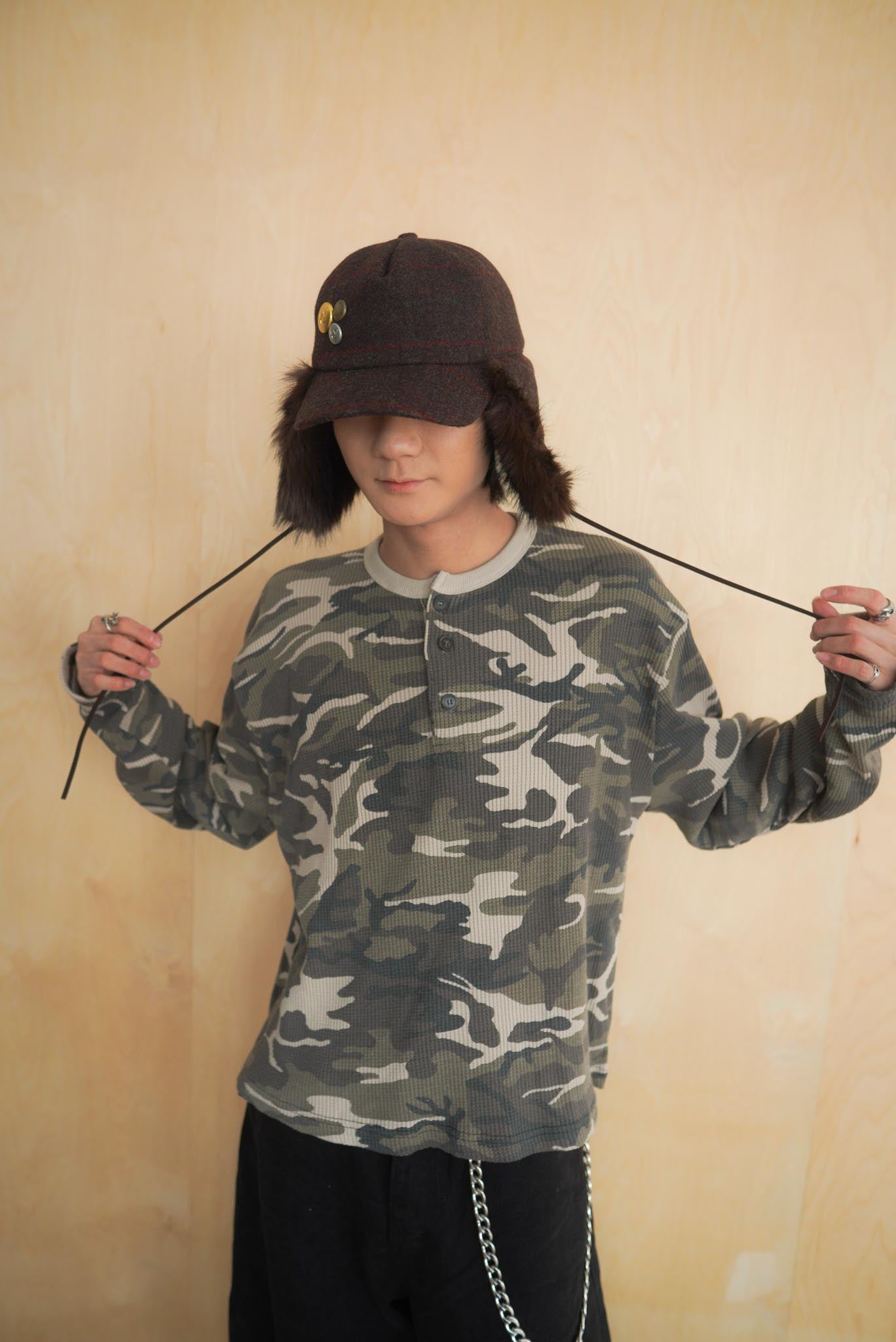 【GUBAN】T-C107 韓國 迷彩 華夫格 短版 亨利領 長袖 上衣