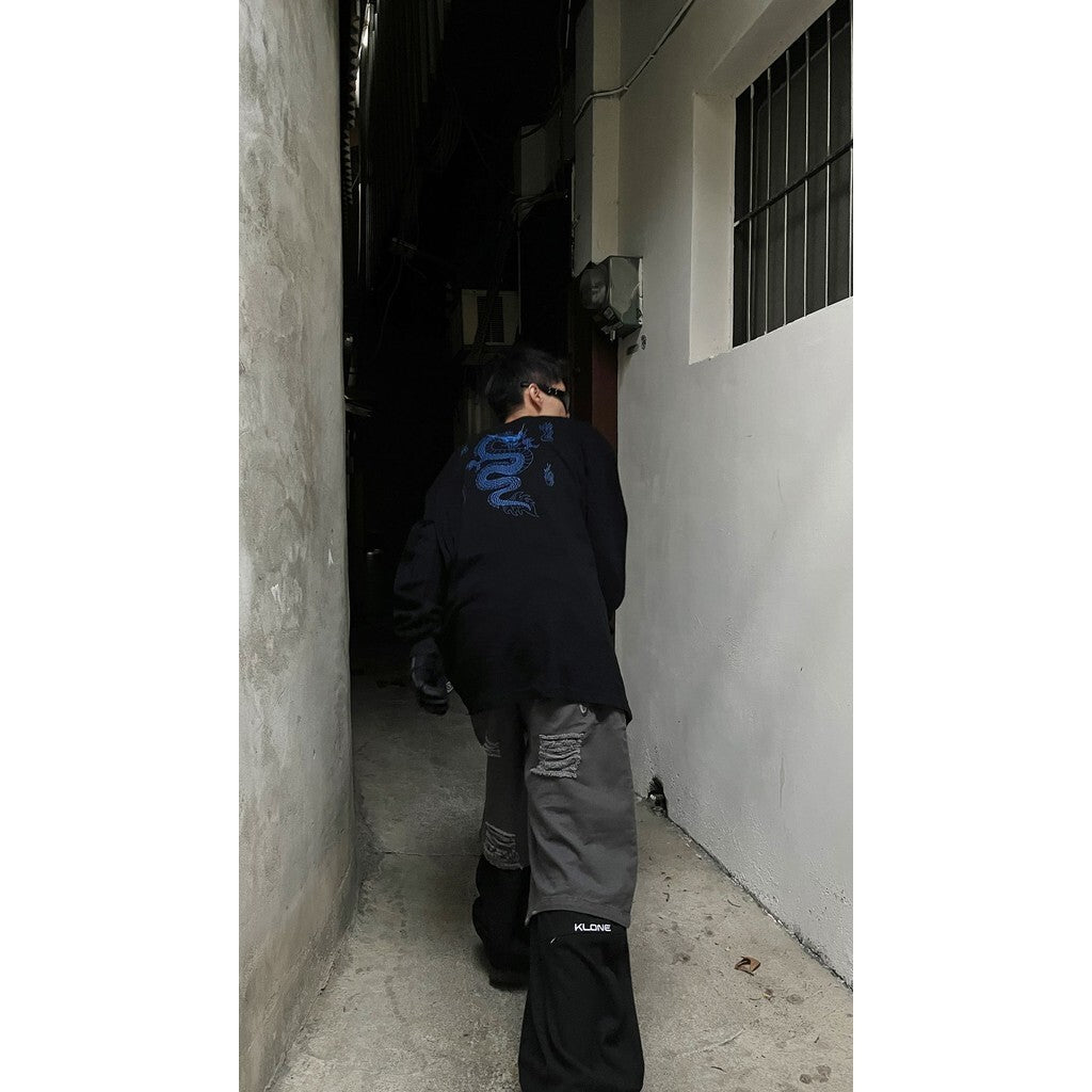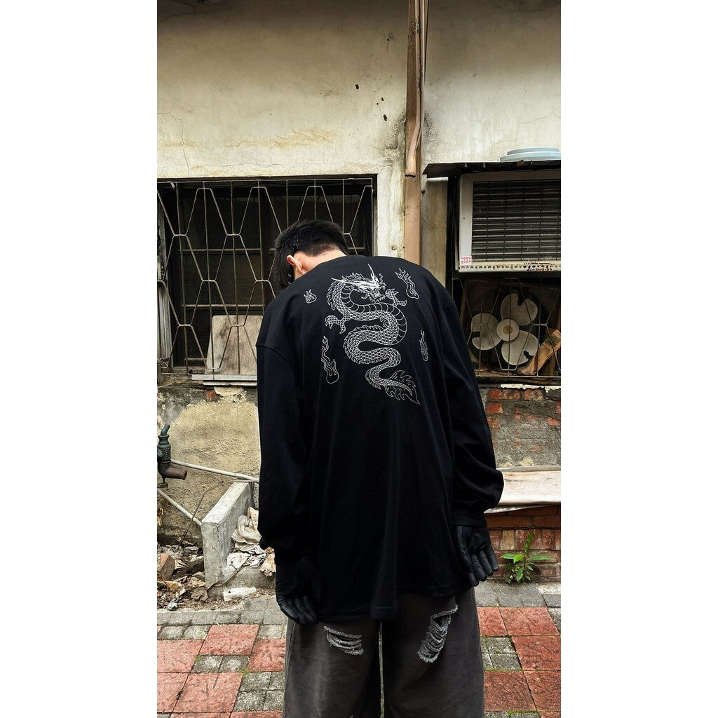 “ 𝗚𝘂𝗯𝗮𝗻 MADE " 龍年限定 龍騰印花 插畫 火焰 寬鬆 重磅 圓領 長袖