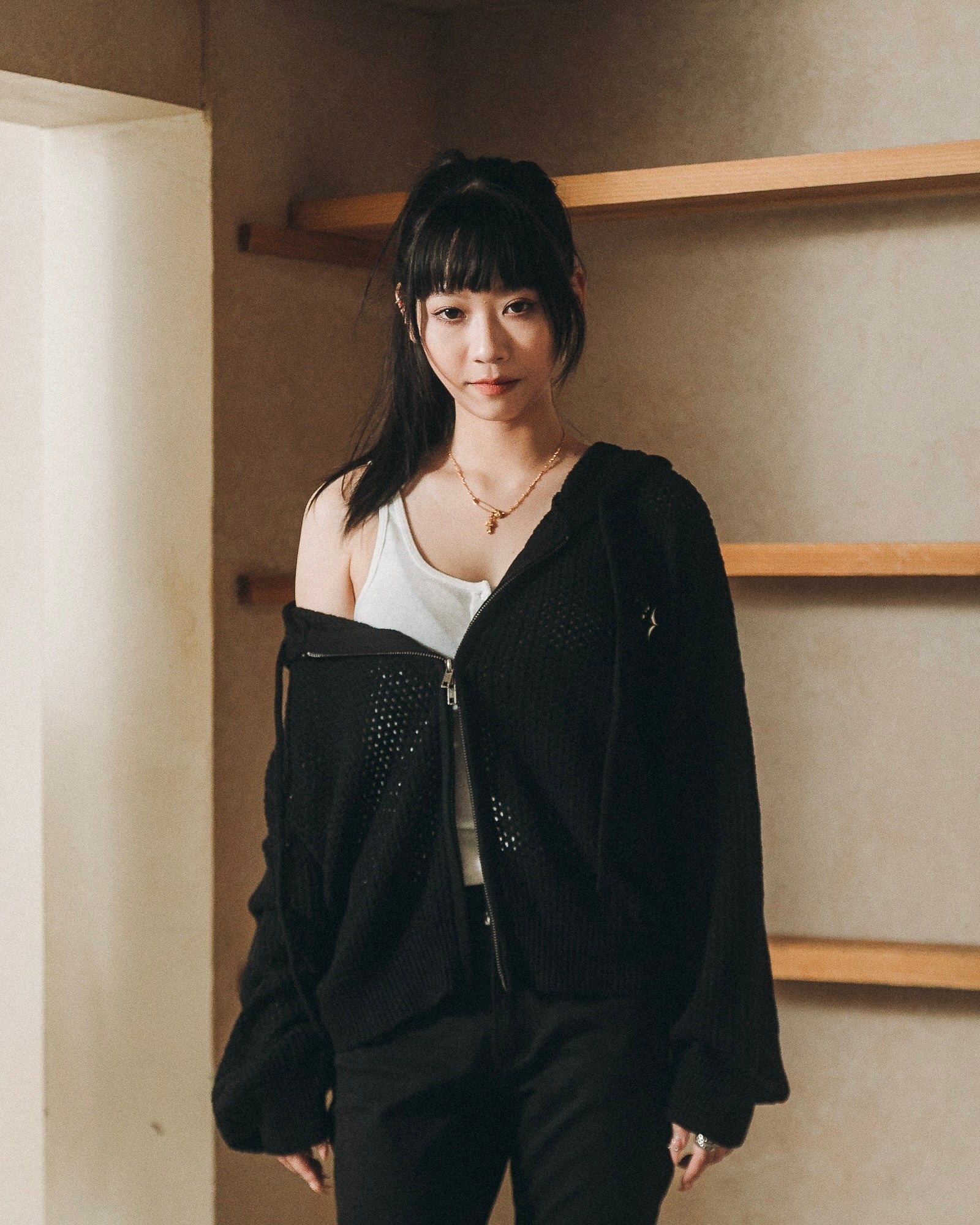 洞洞拉鍊毛衣