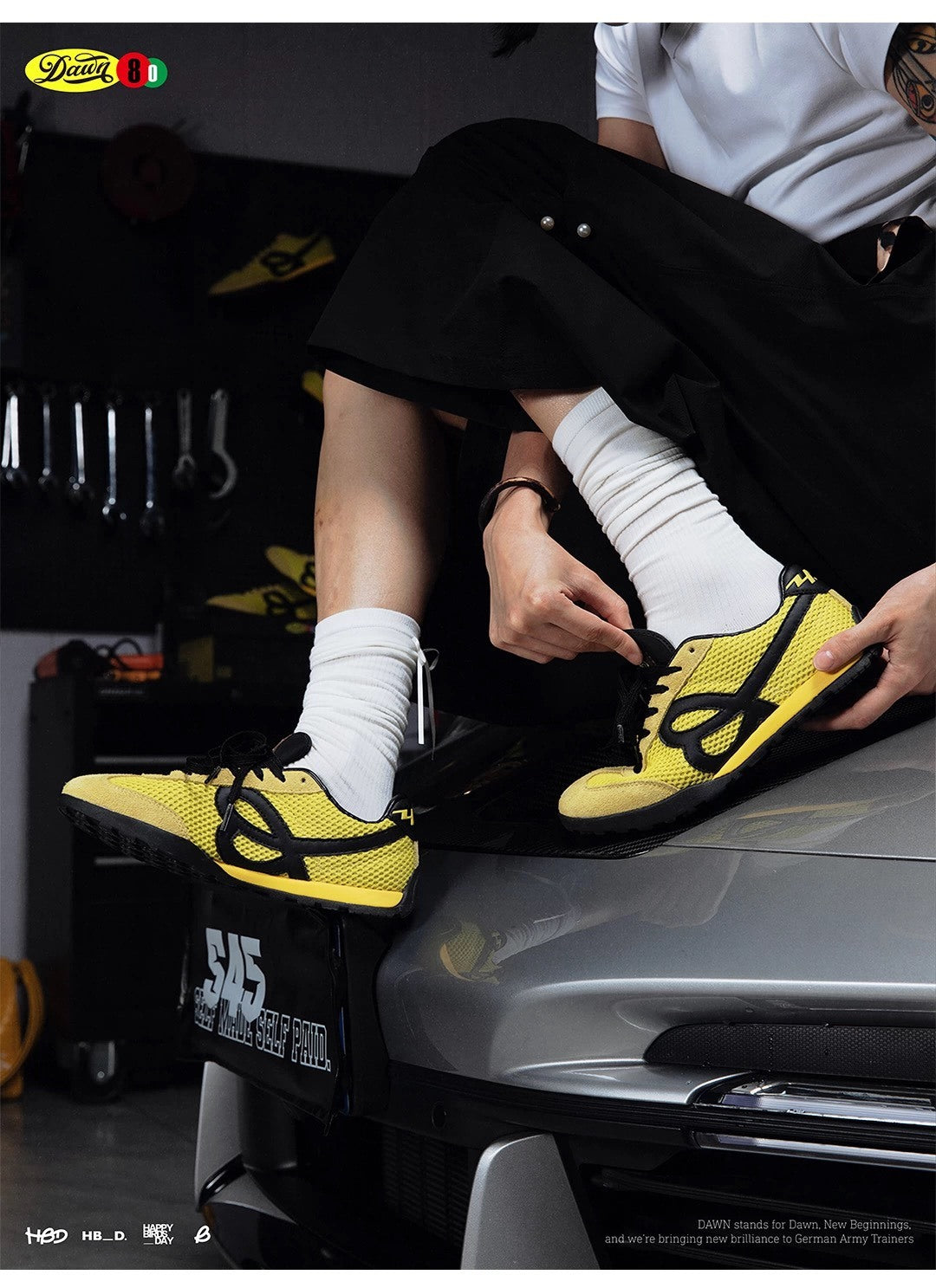 WeFlower HBDxS45 流電黃 復古 運動 網面 德訓鞋