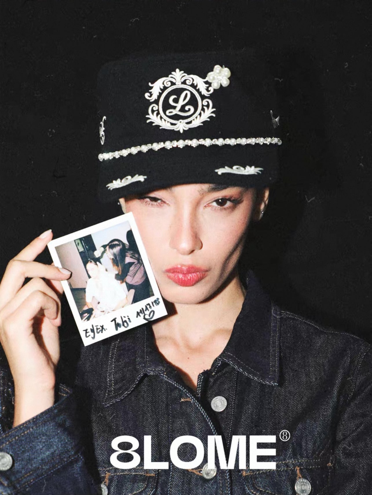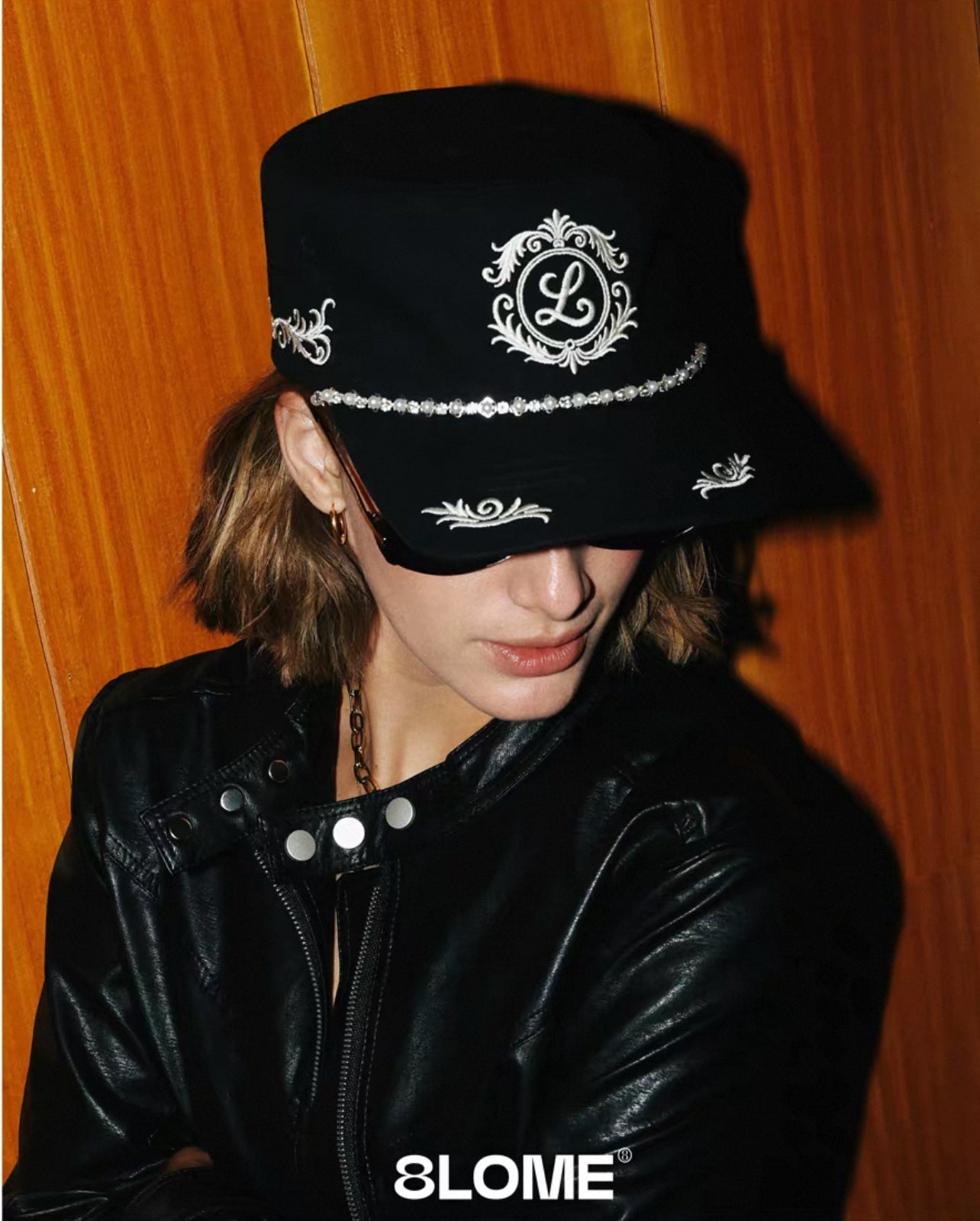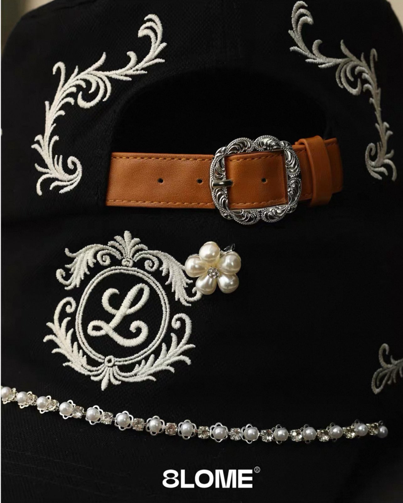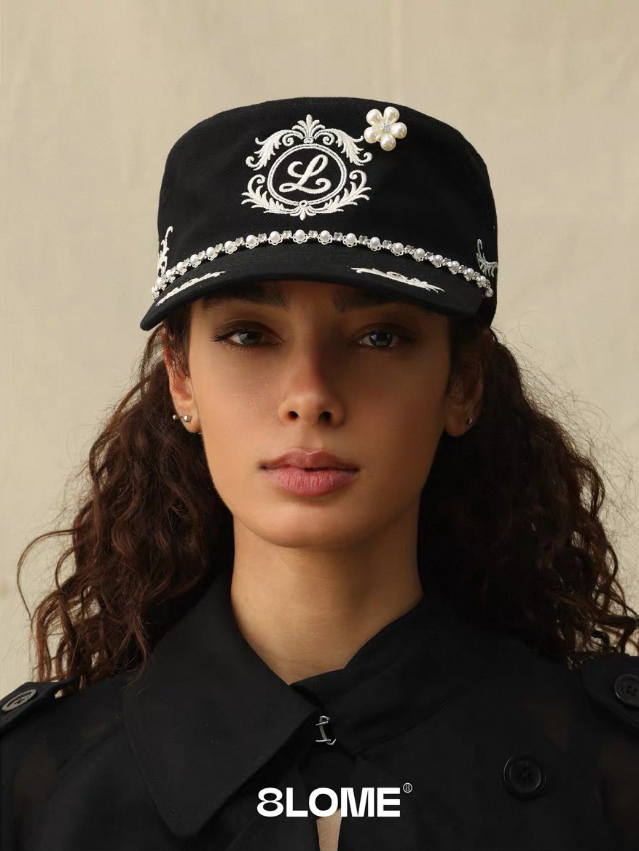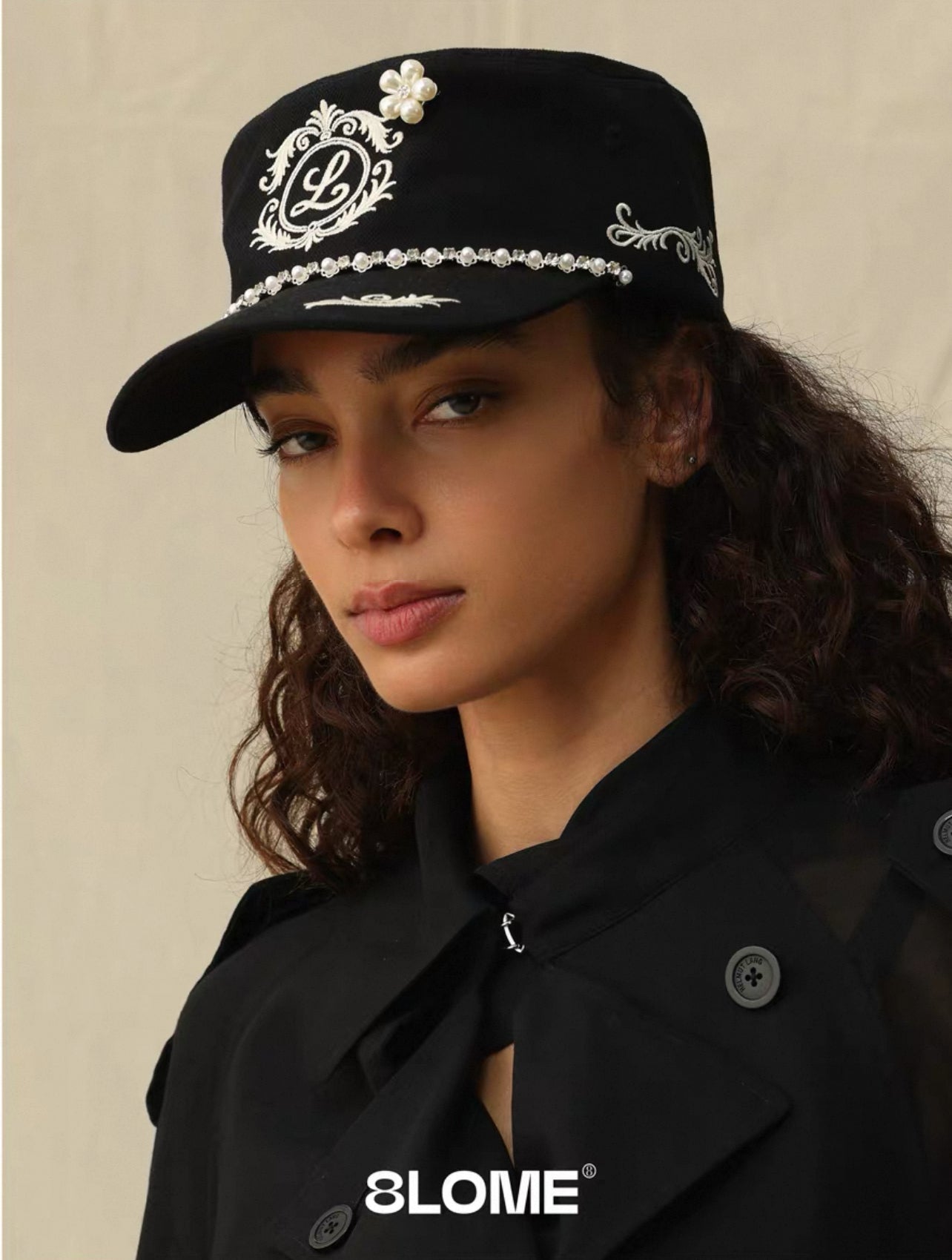 8LOME 平頂復古老錢珍珠刺繡彎簷棒球帽