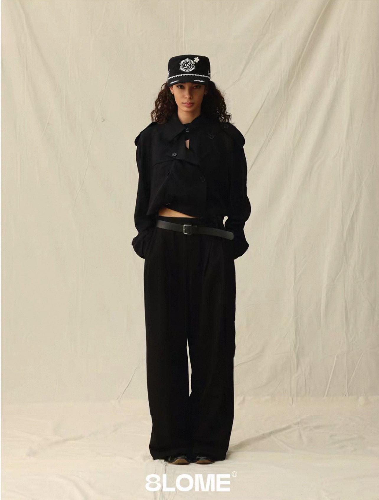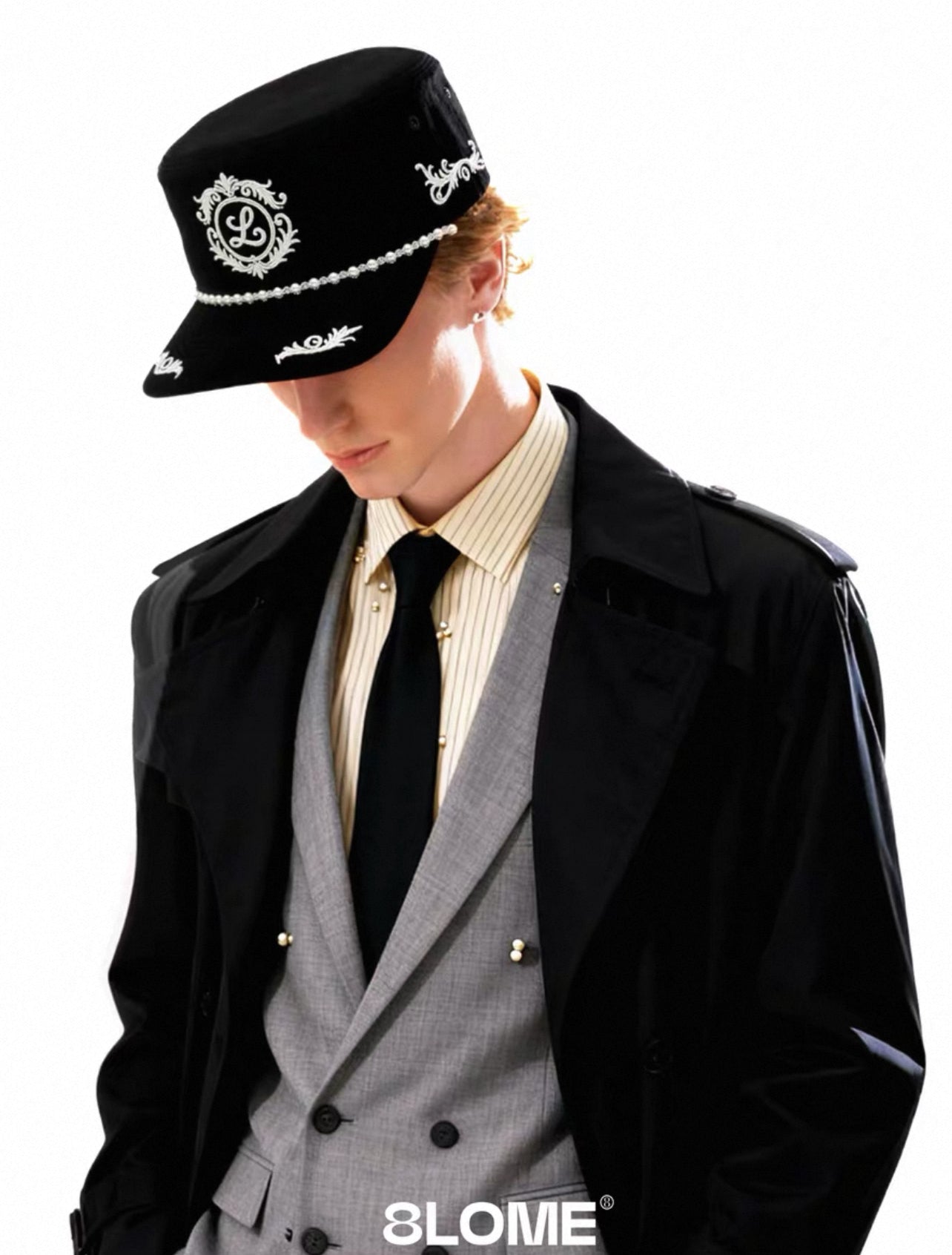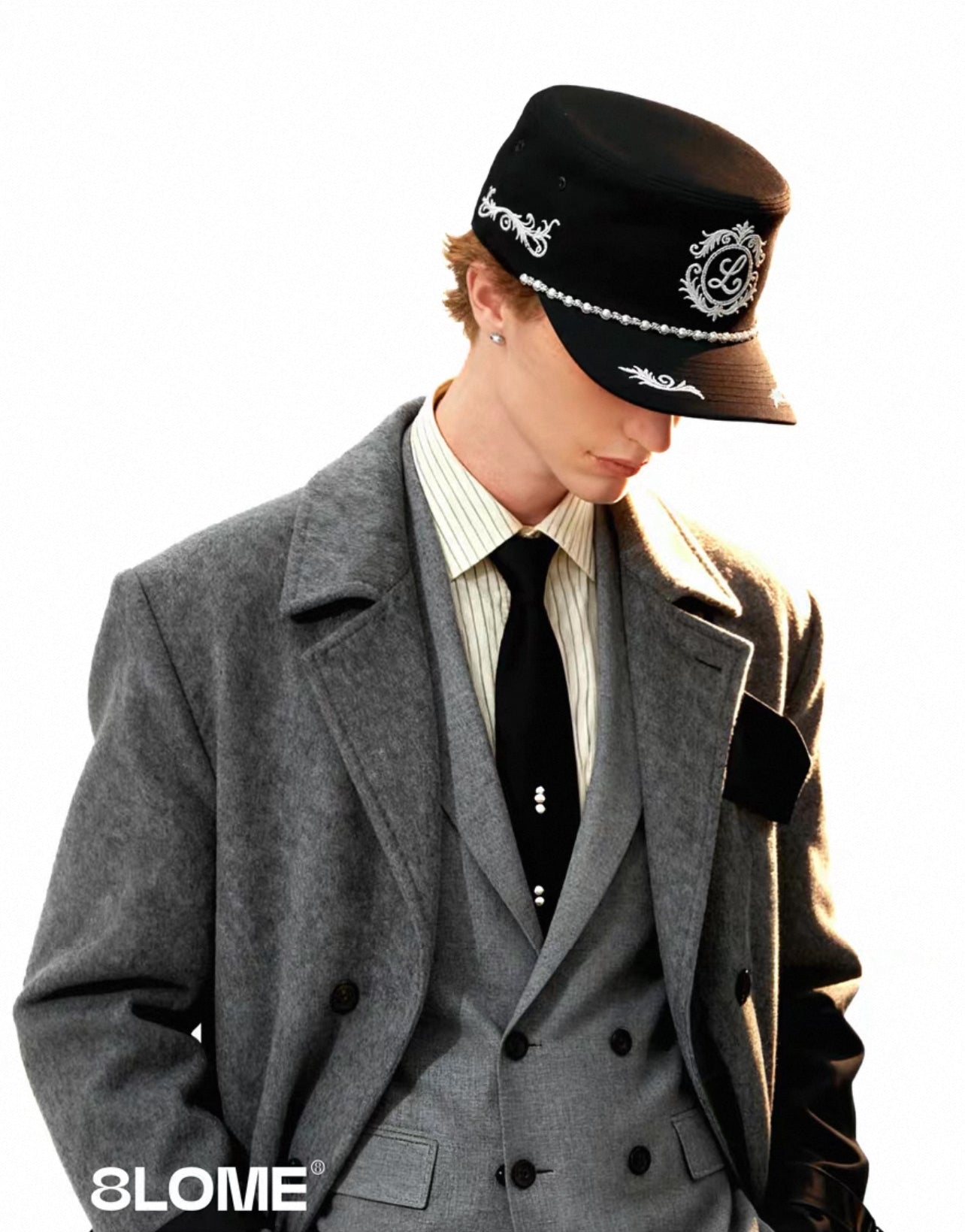 【GUBAN】8LOME 平頂復古老錢珍珠刺繡彎簷棒球帽