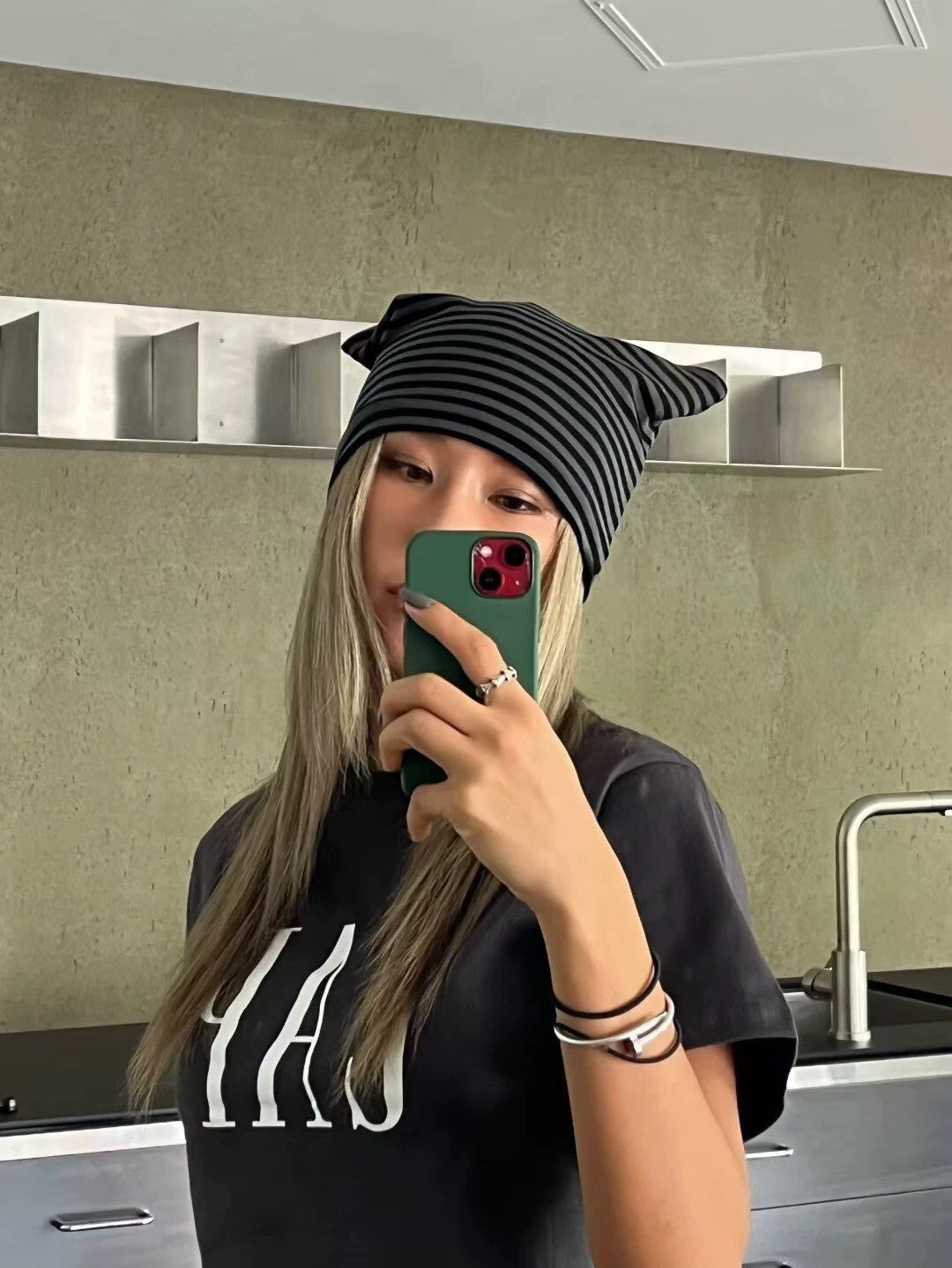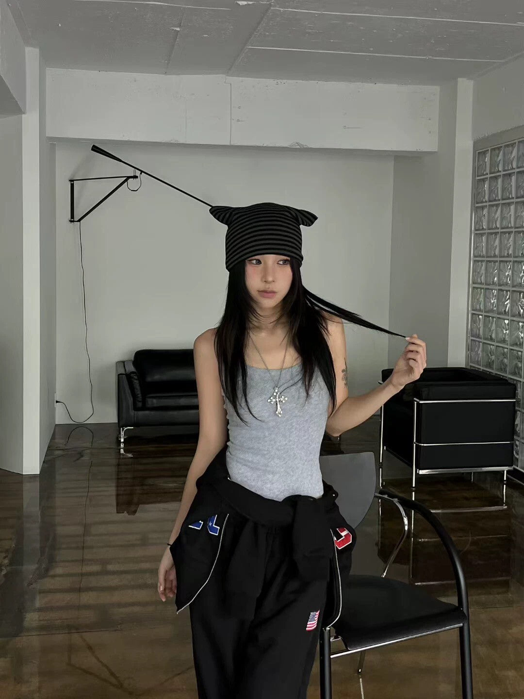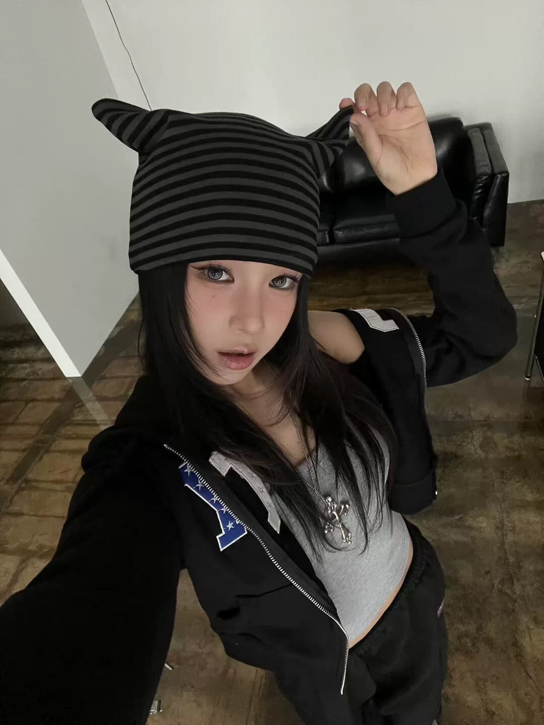 【GUBAN】AC-A115 正韓 復古 Y2K 條文 立耳 貓耳朵 冷帽 帽子