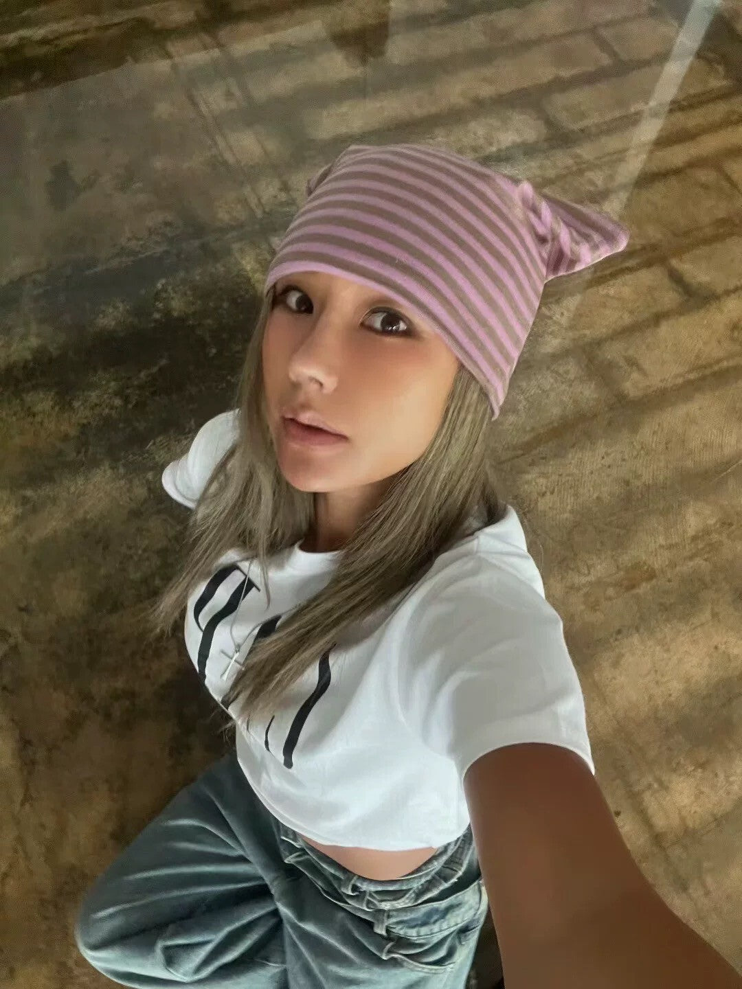 正韓 復古 Y2K 條文 立耳 貓耳朵 冷帽 帽子