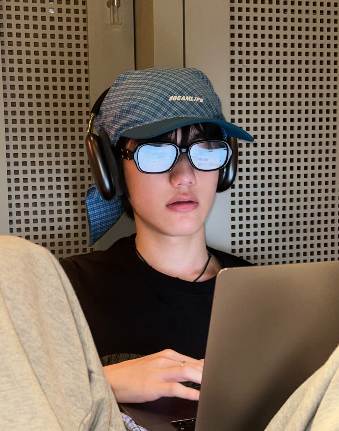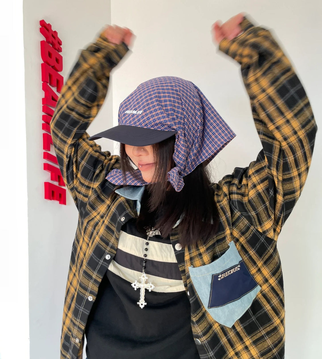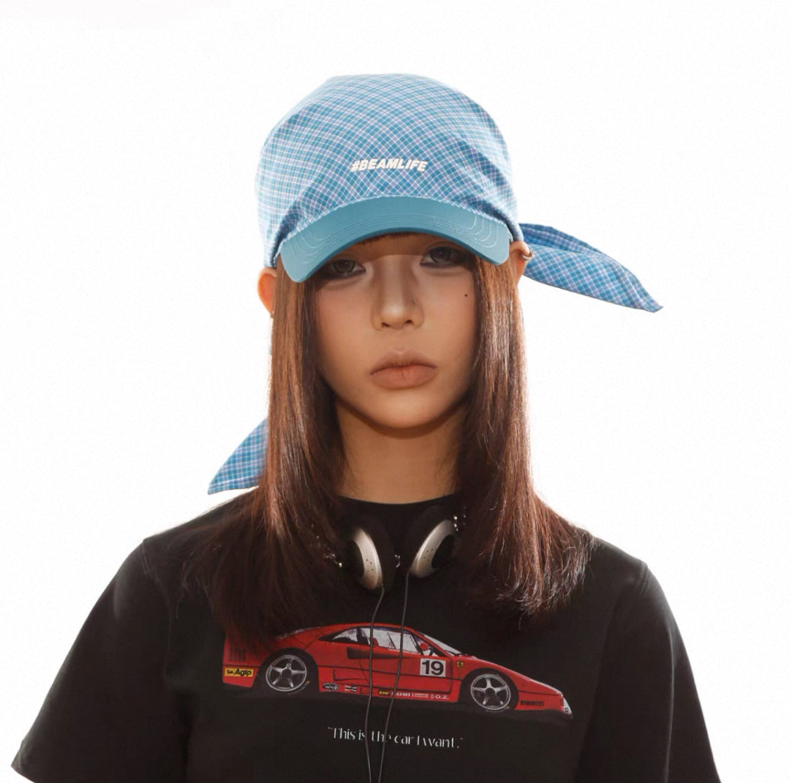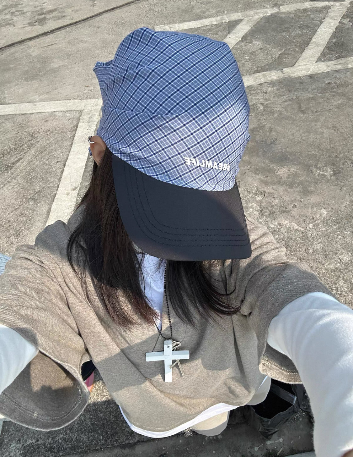 格子綁帶速乾戶外字母鴨舌帽