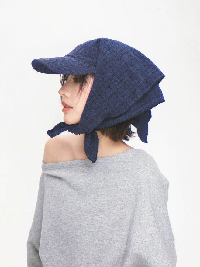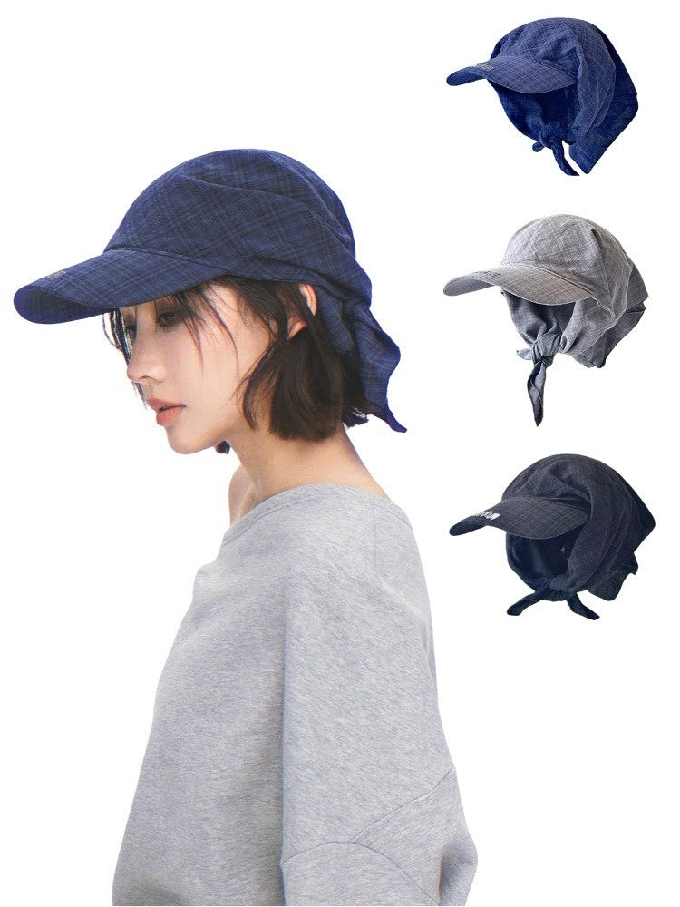 復古 美式 格紋 綁帶 方巾 棒球帽