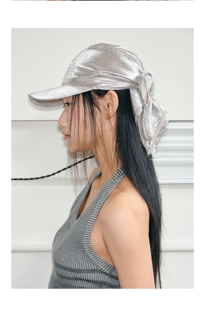 時髦 液態銀 綁帶 休閒 頭巾 棒球帽 鴨舌帽