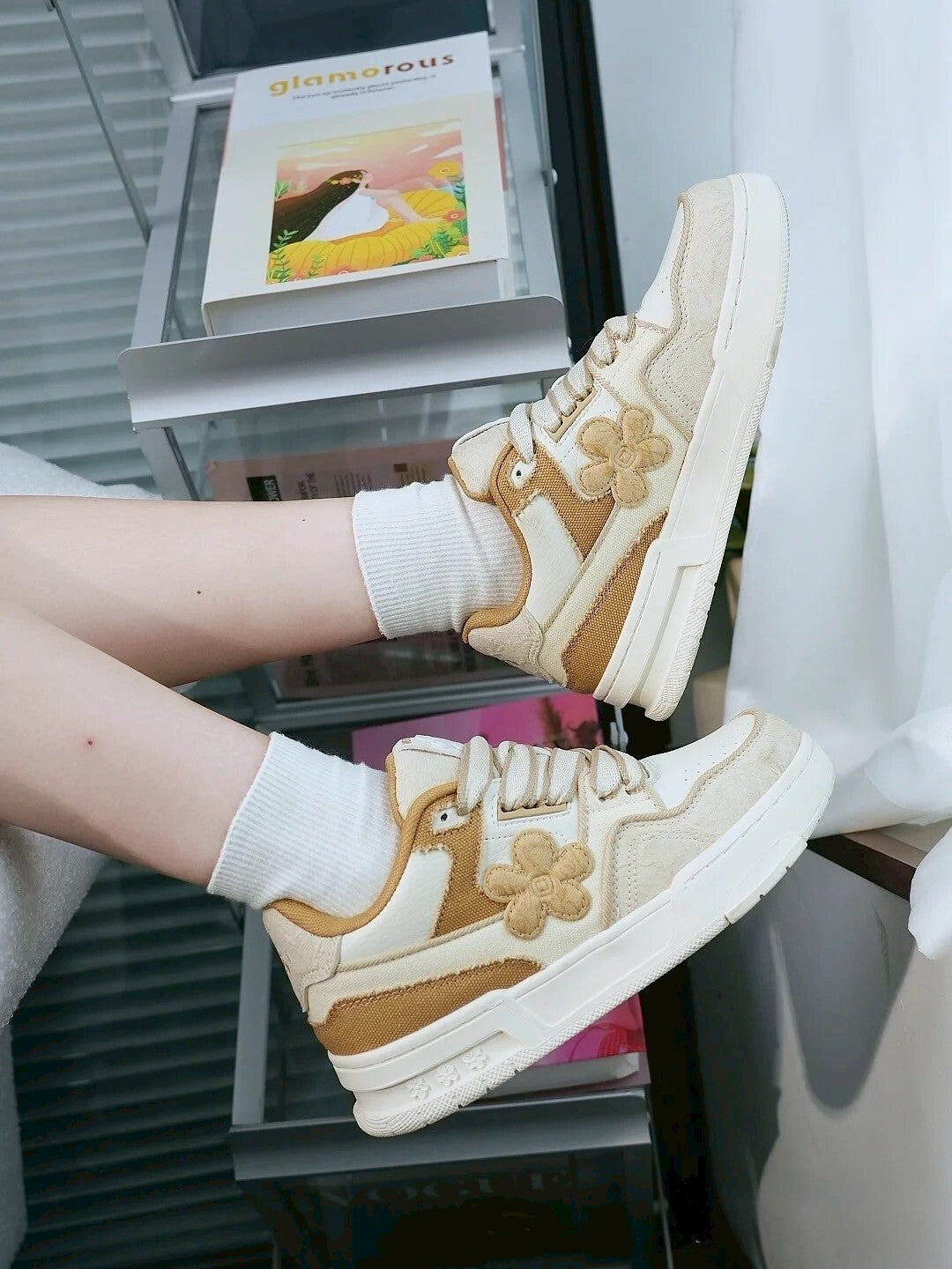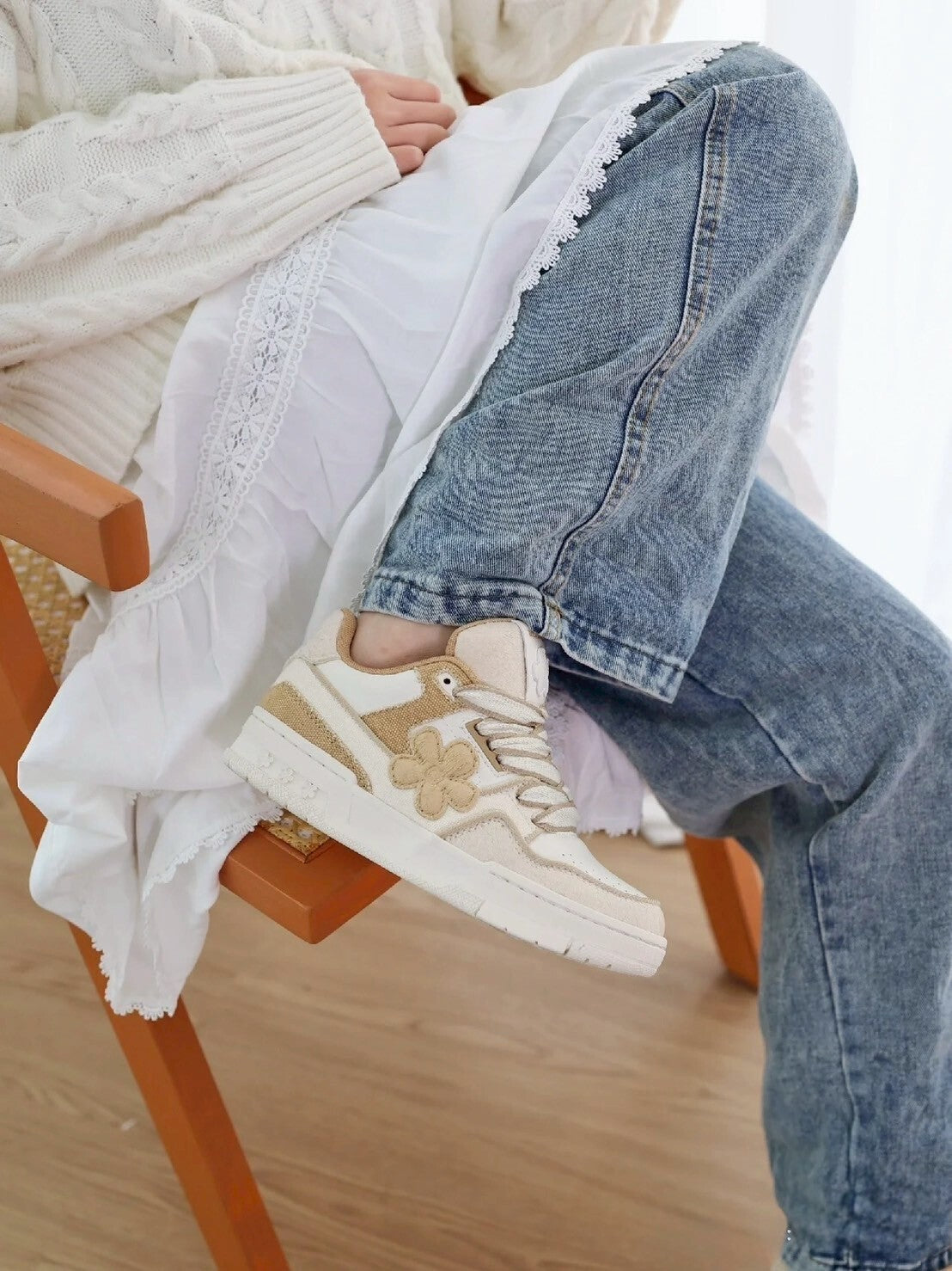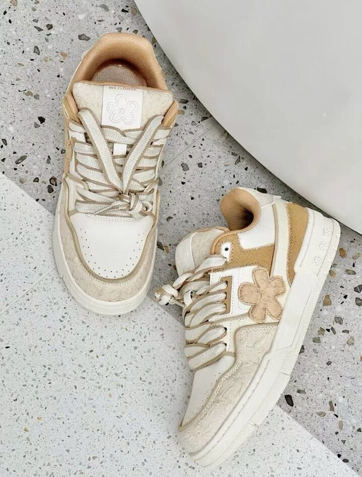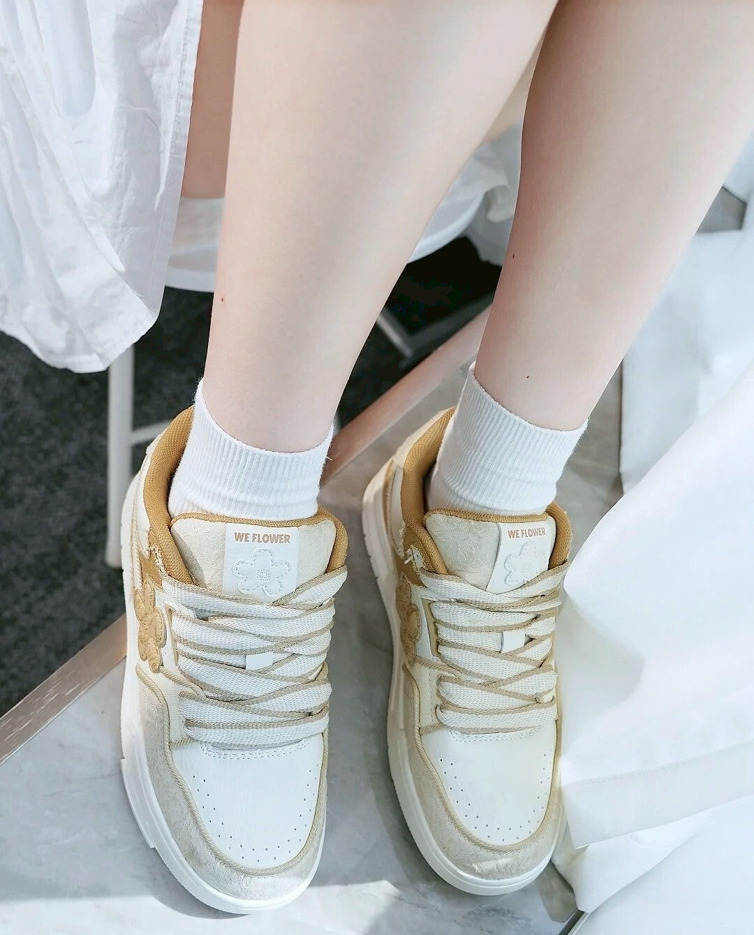 We Flower 小花鞋 軟底 耐磨 增高 透氣 奶茶色