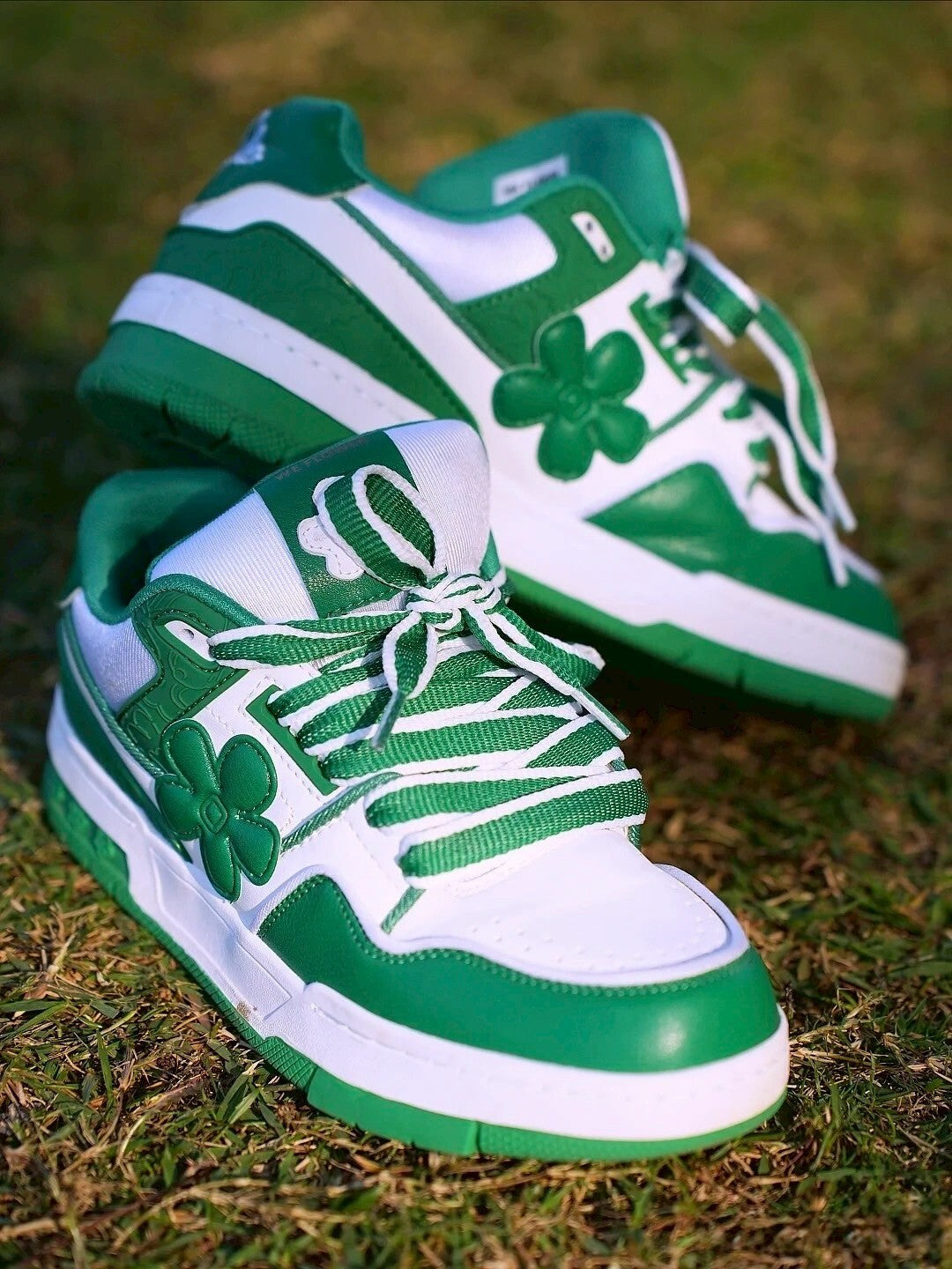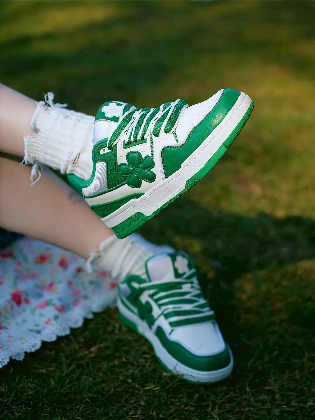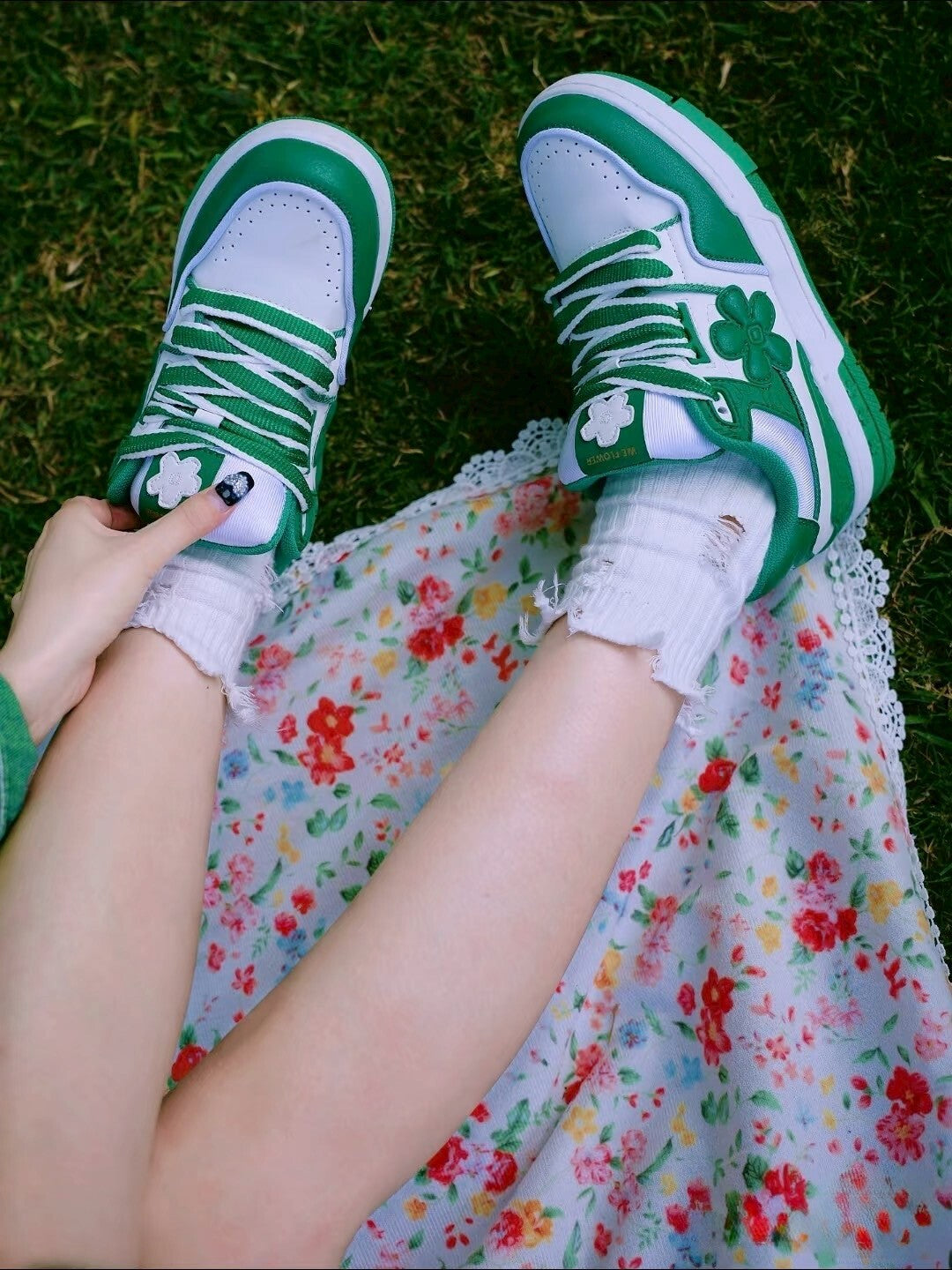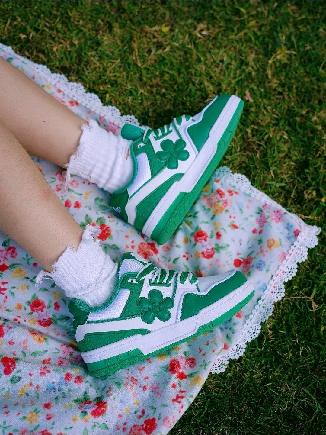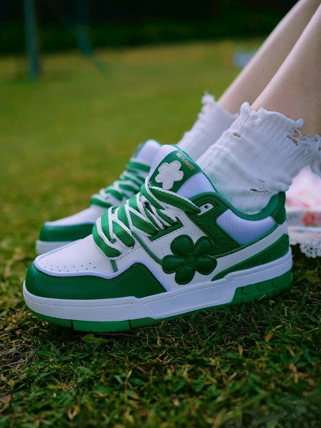 We Flower 小花鞋 軟底 耐磨 增高 透氣 白綠色