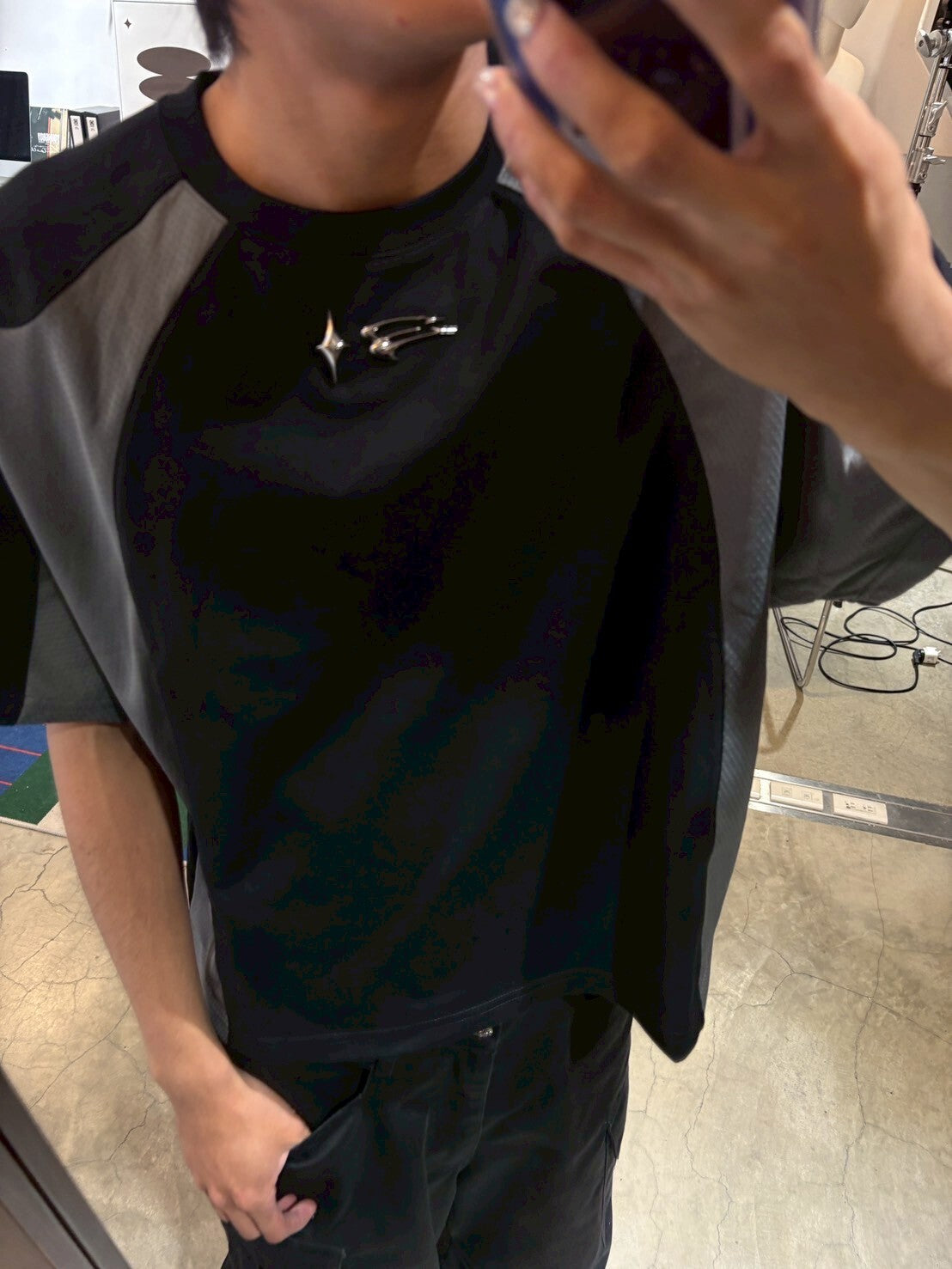 E’TREALOUEST 25SS Layered Mesh Boxy 拼接 網眼 黑色短袖