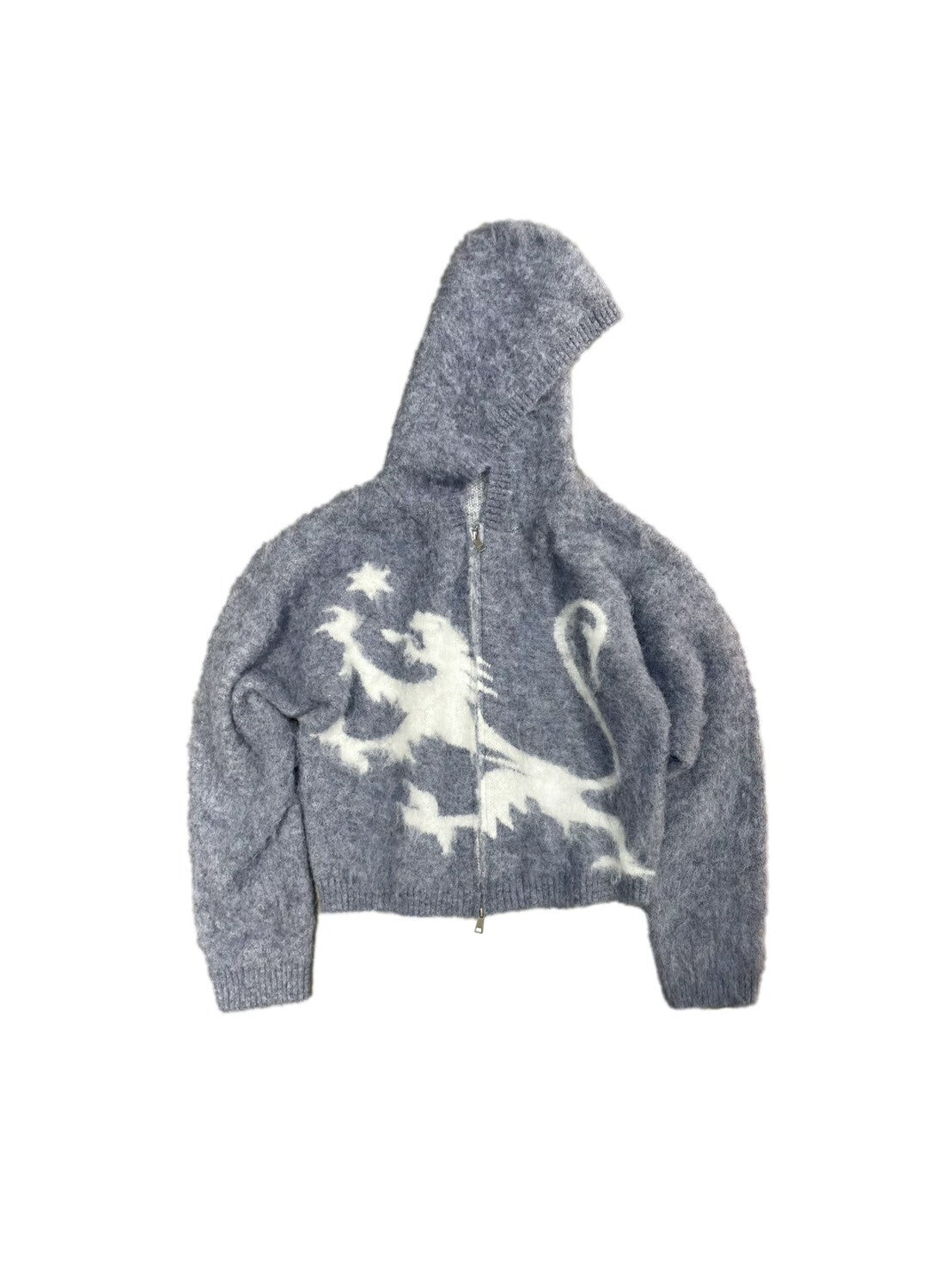 小眾 海馬毛 針織 提花 雙拉鍊 慵懶 連帽外套