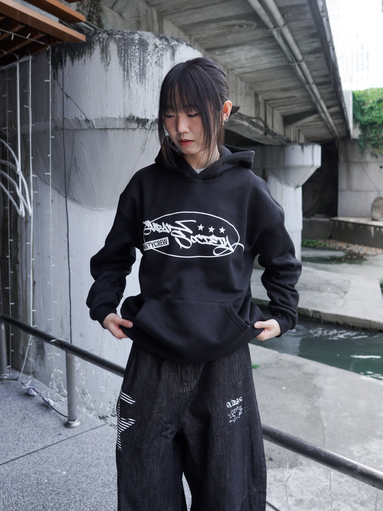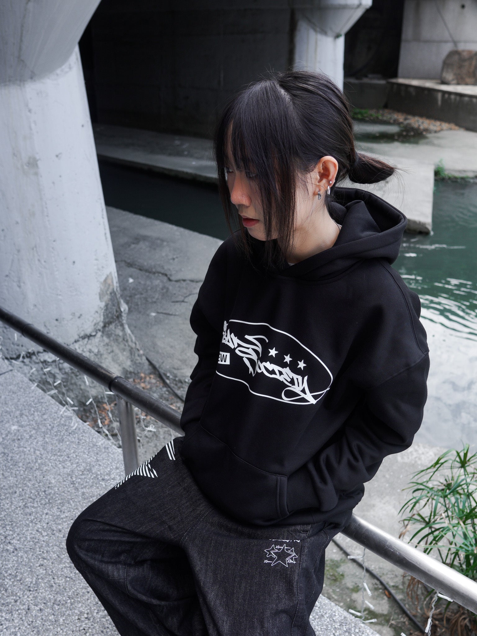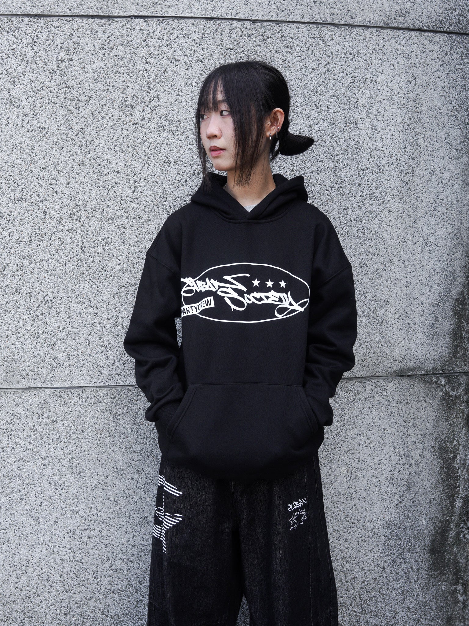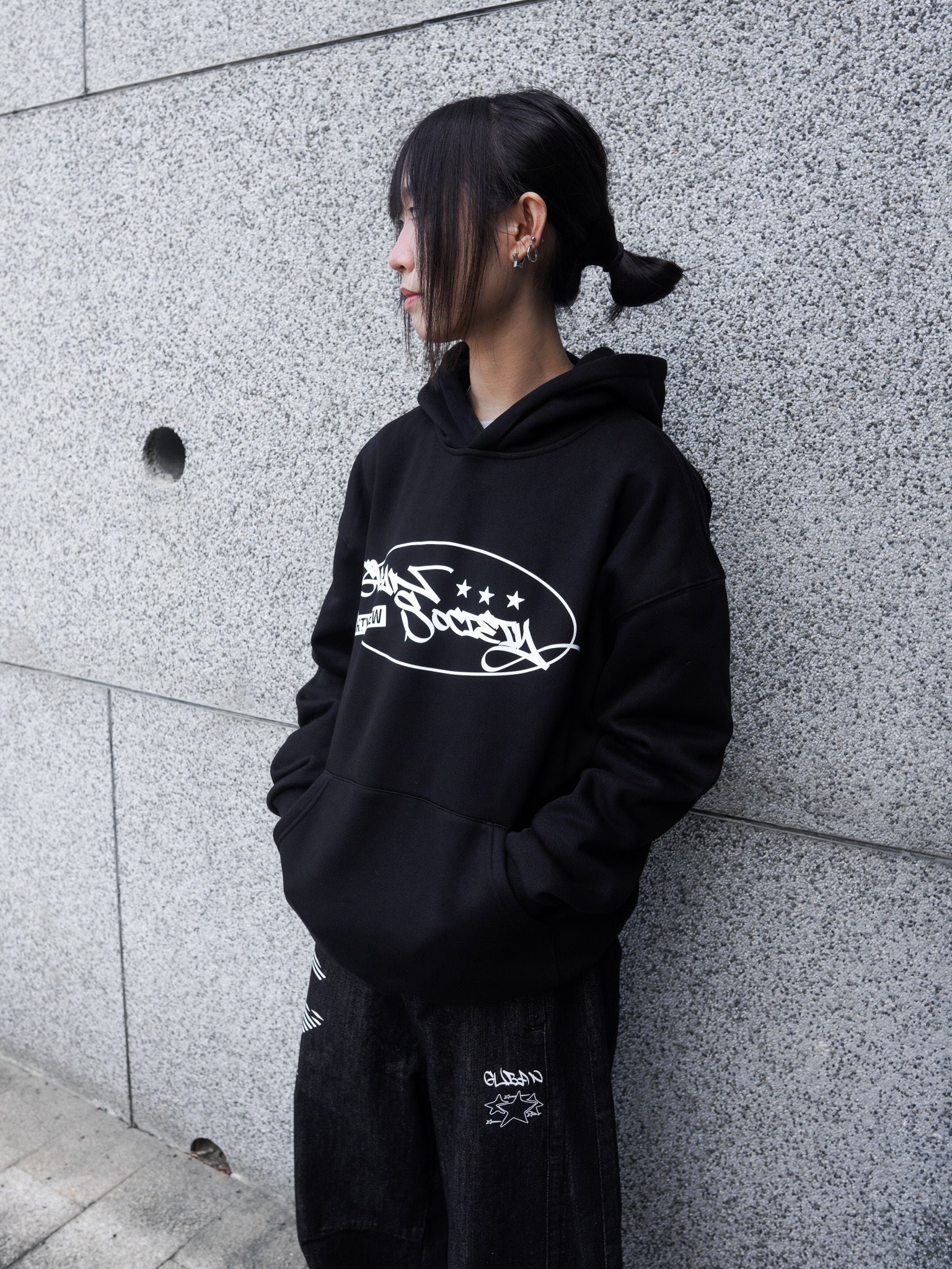 【GUBAN】J-M67 塗鴉logo連帽絨毛長袖帽T