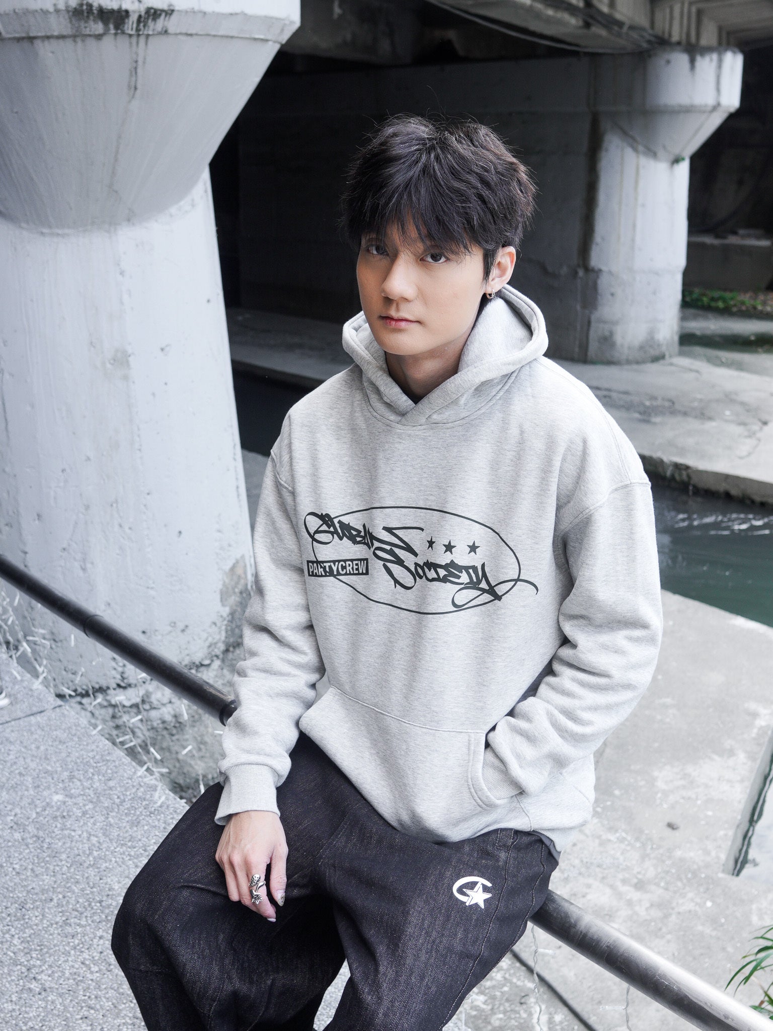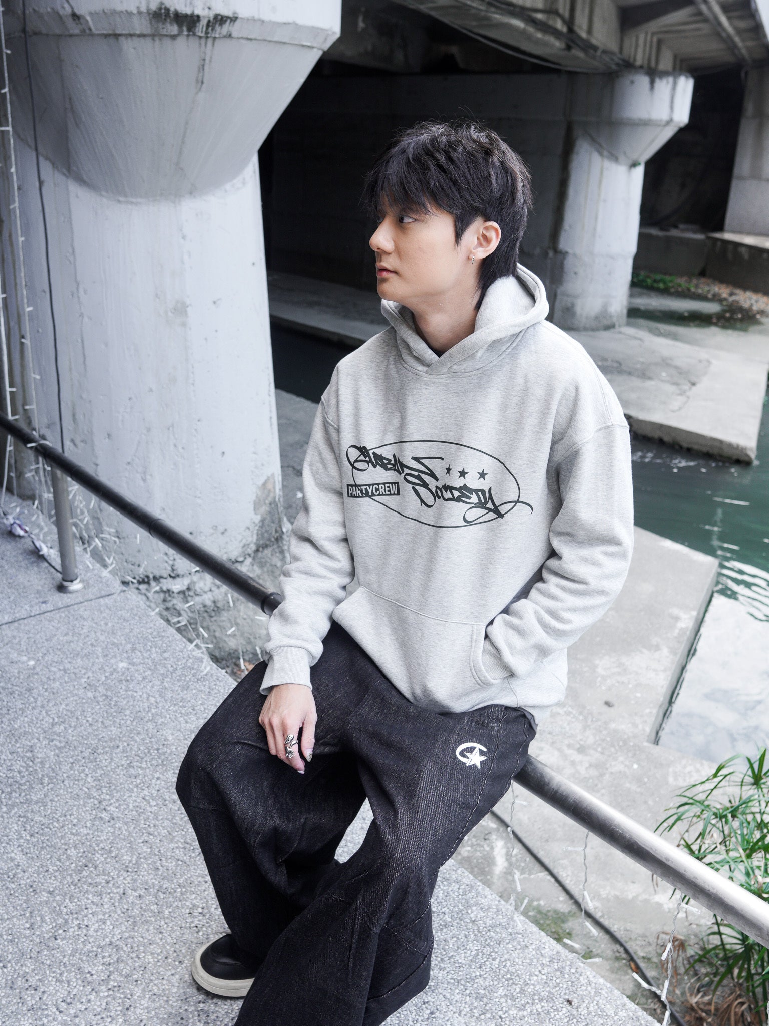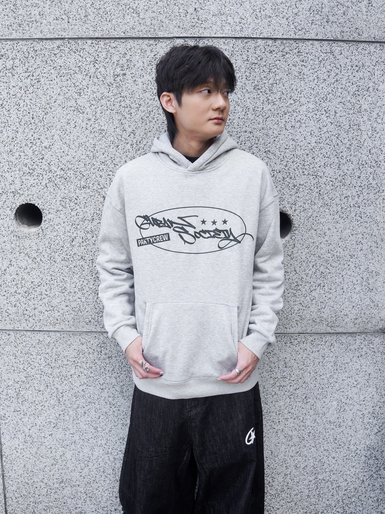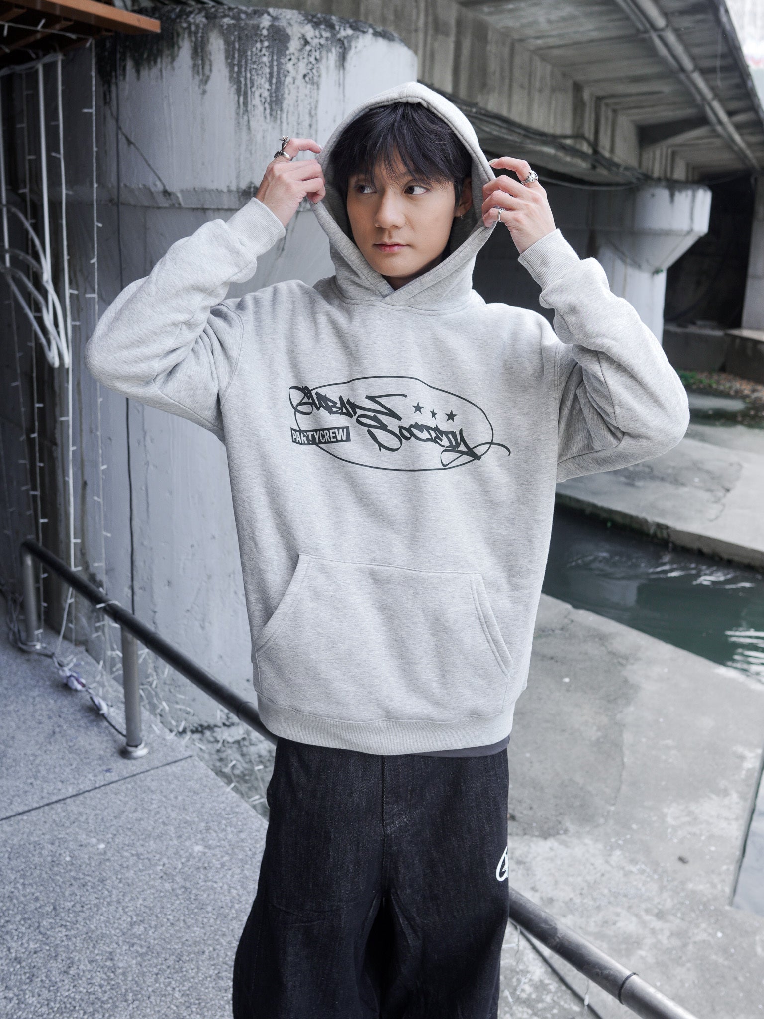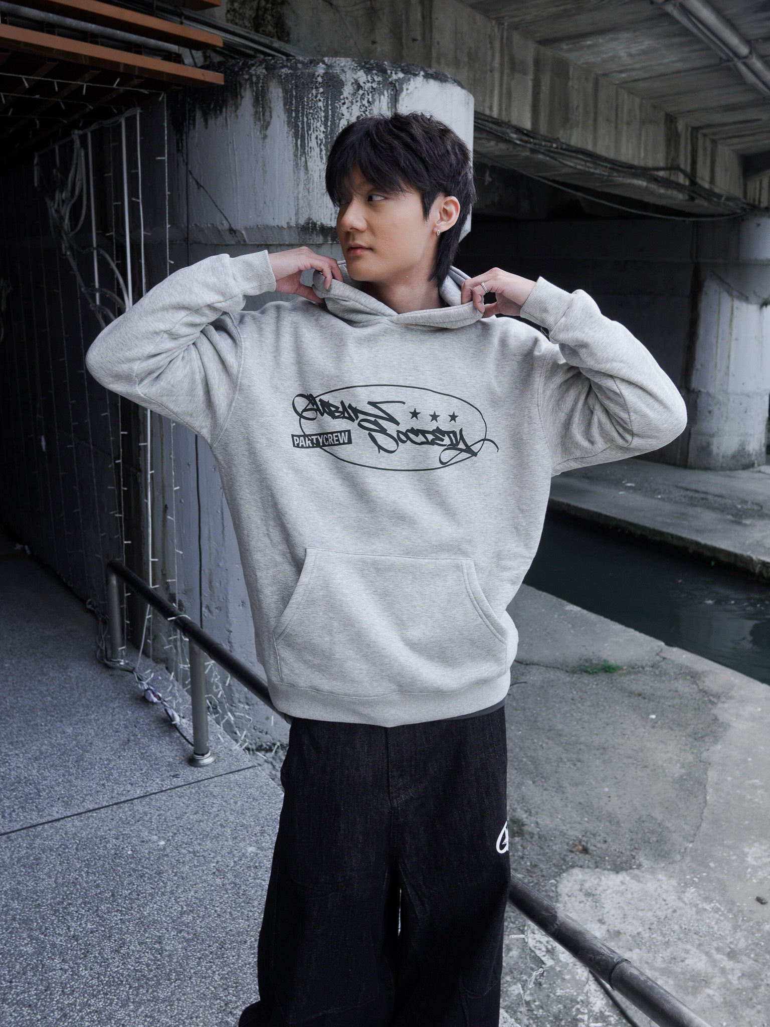 【GUBAN】J-M67 塗鴉logo連帽絨毛長袖帽T