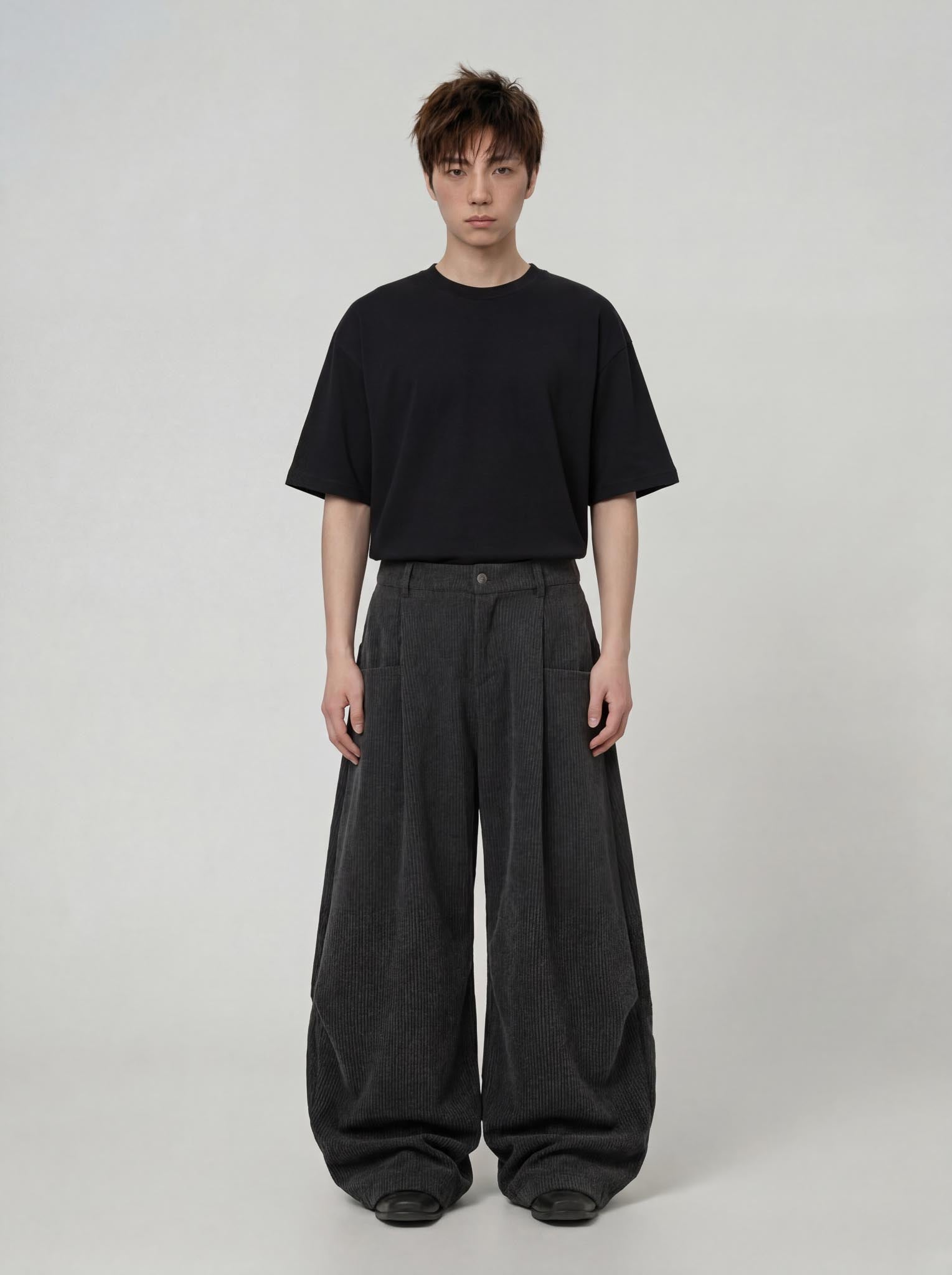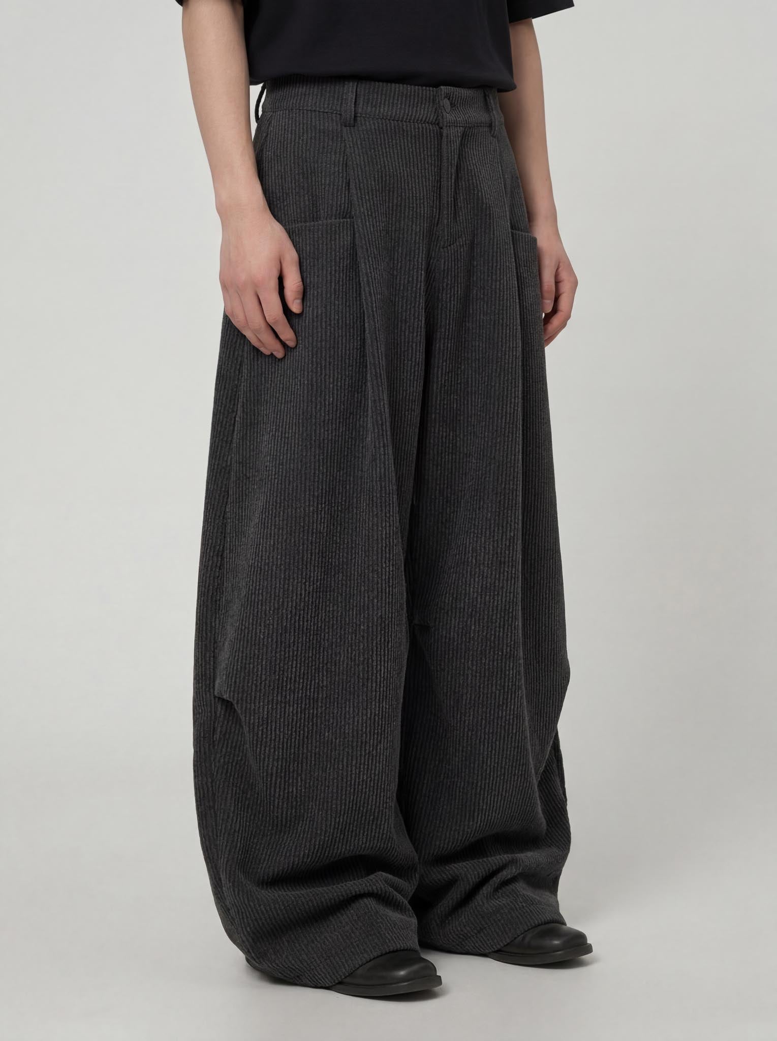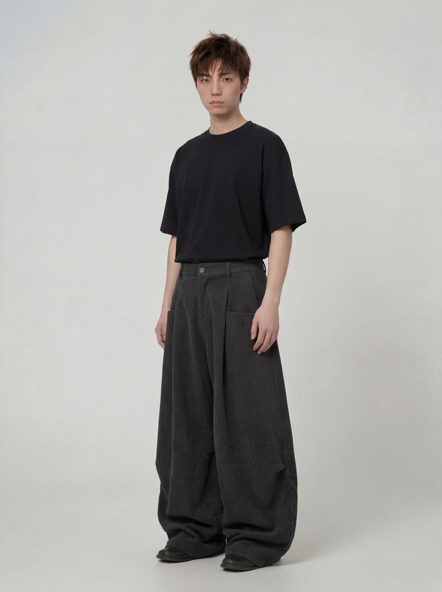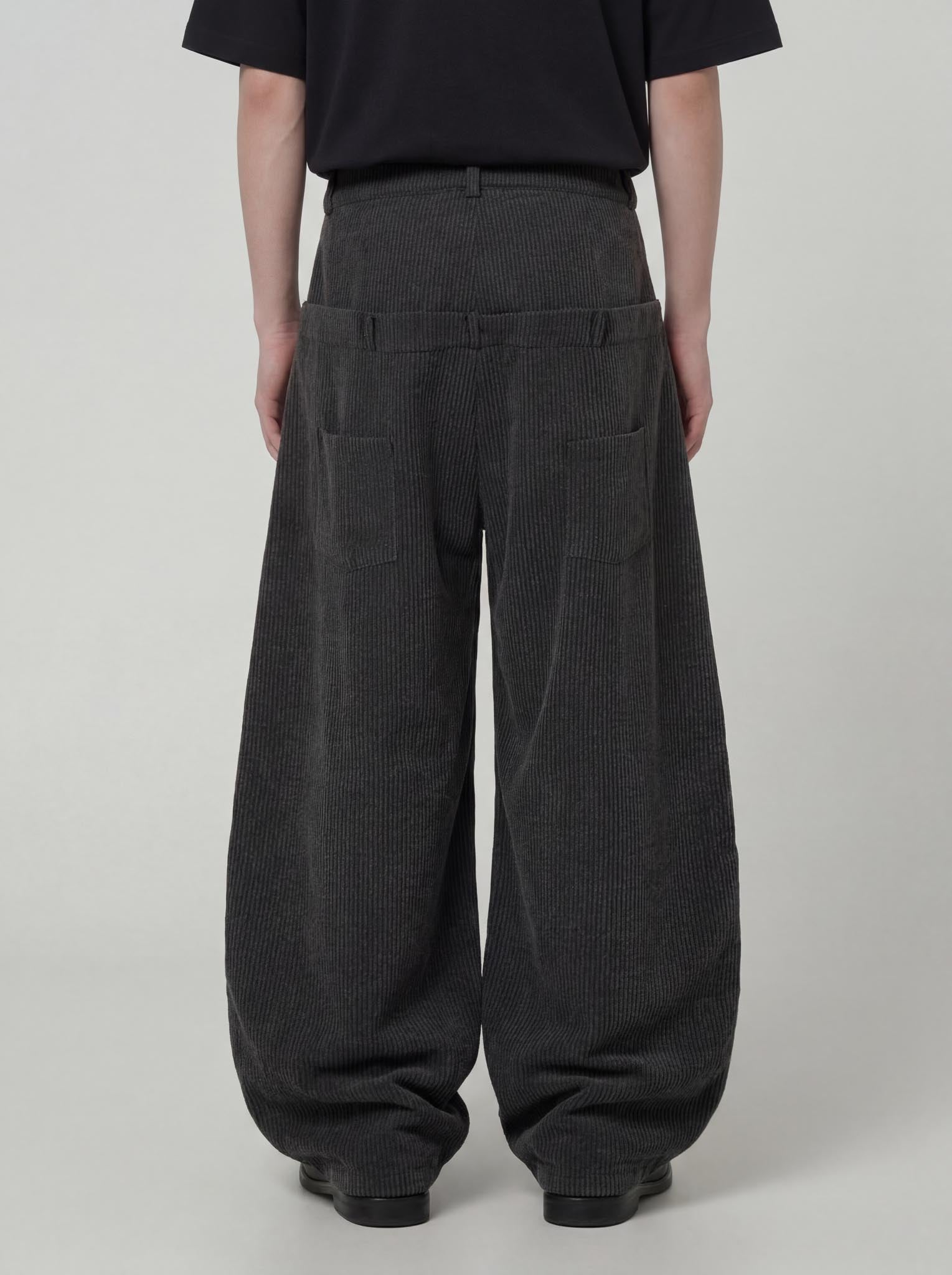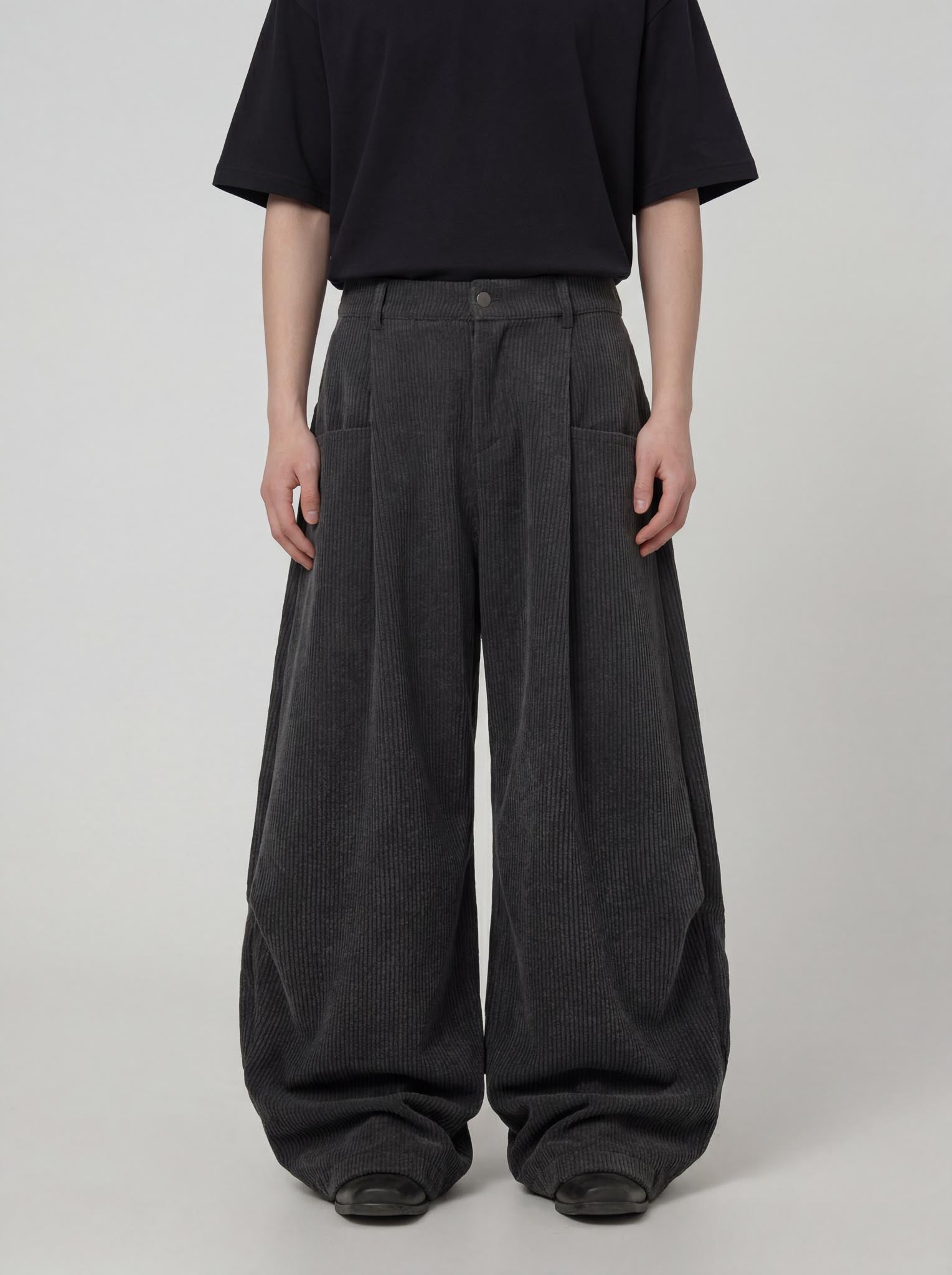 【GUBAN】P-D124 燈芯絨皺摺廓形彎刀長褲