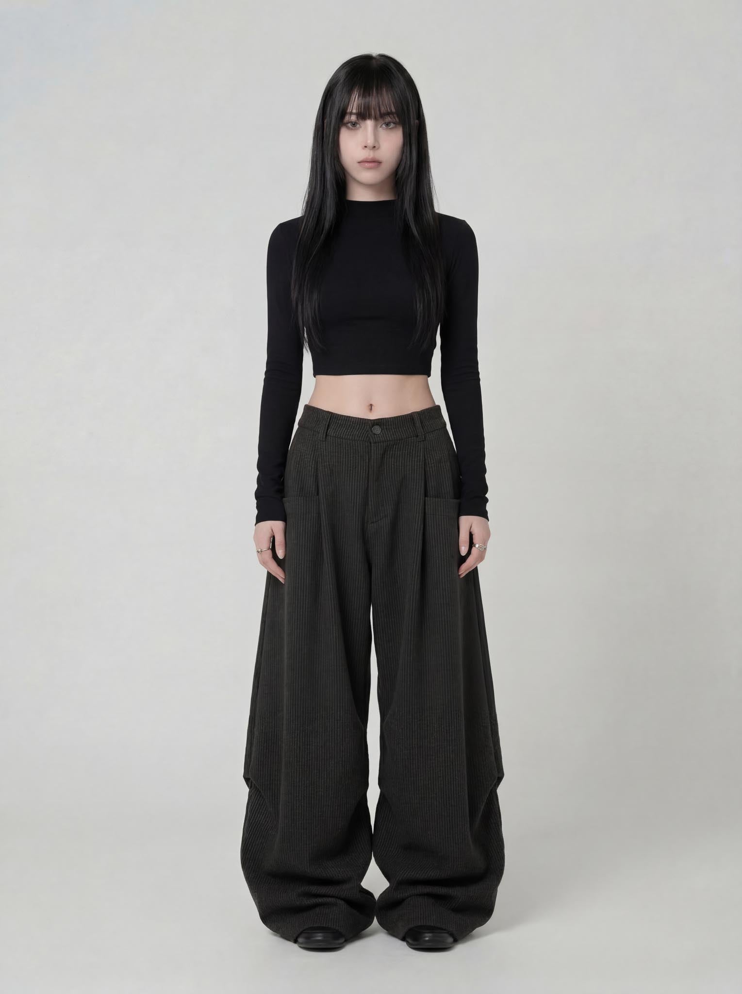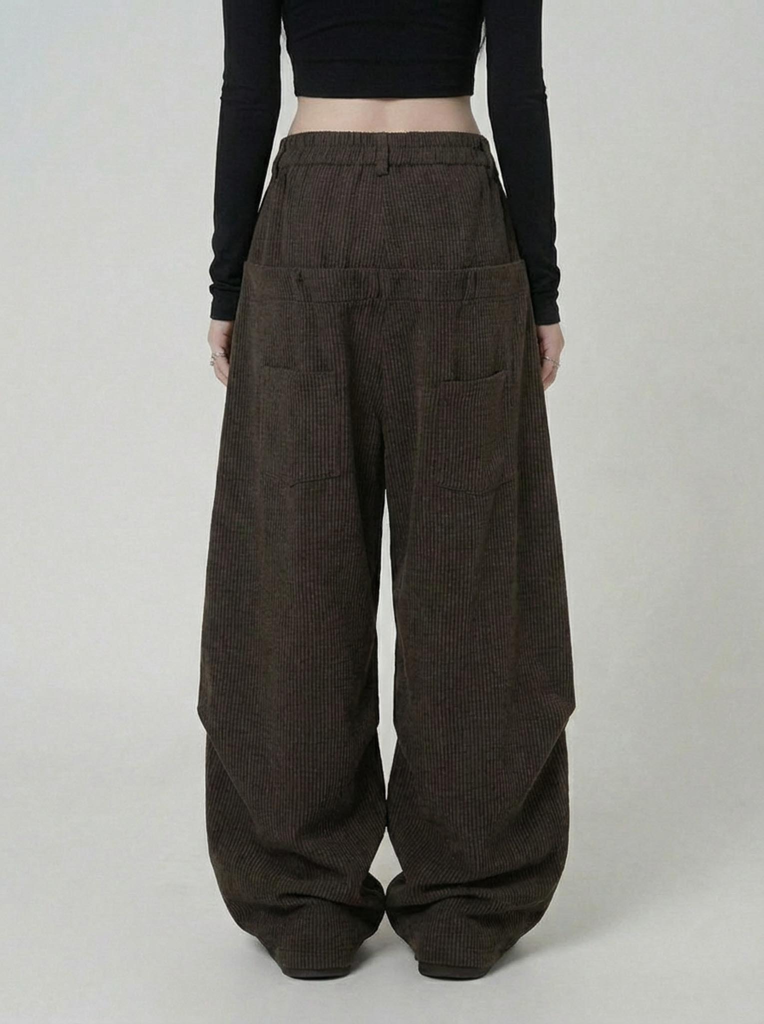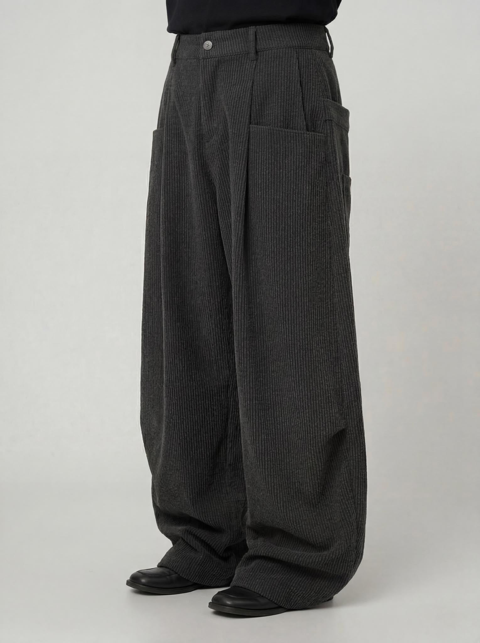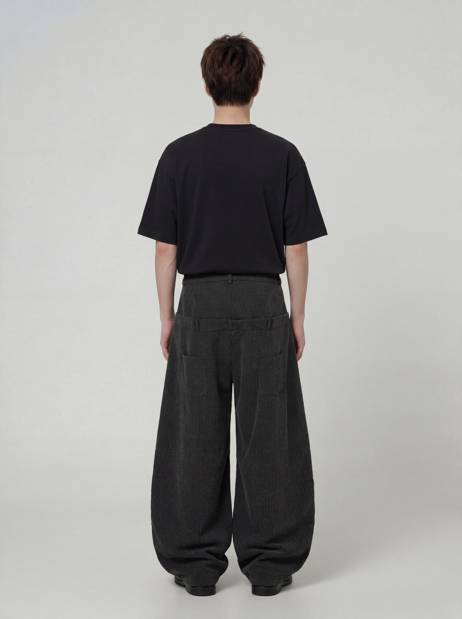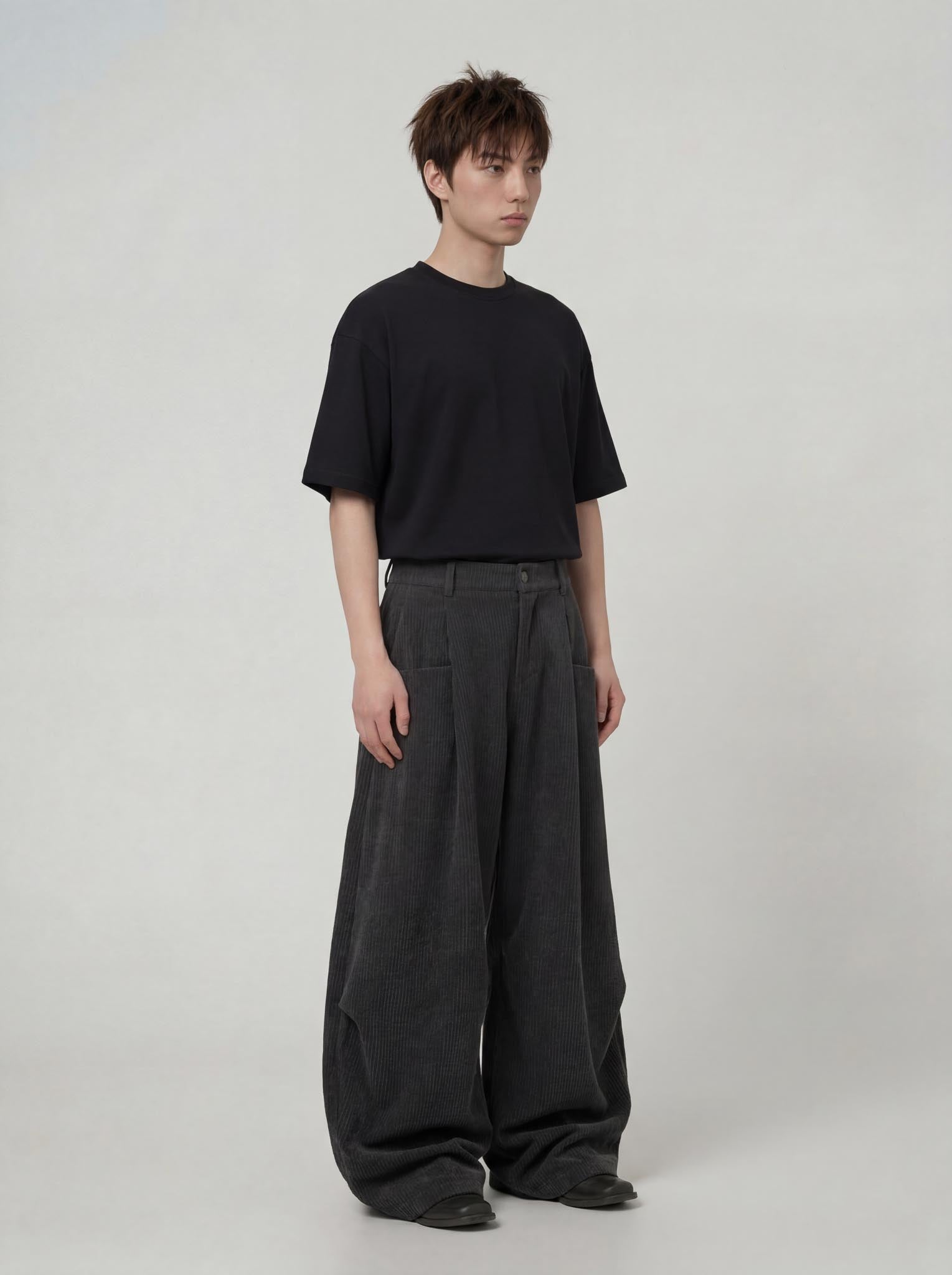 【GUBAN】P-D124 燈芯絨皺摺廓形彎刀長褲