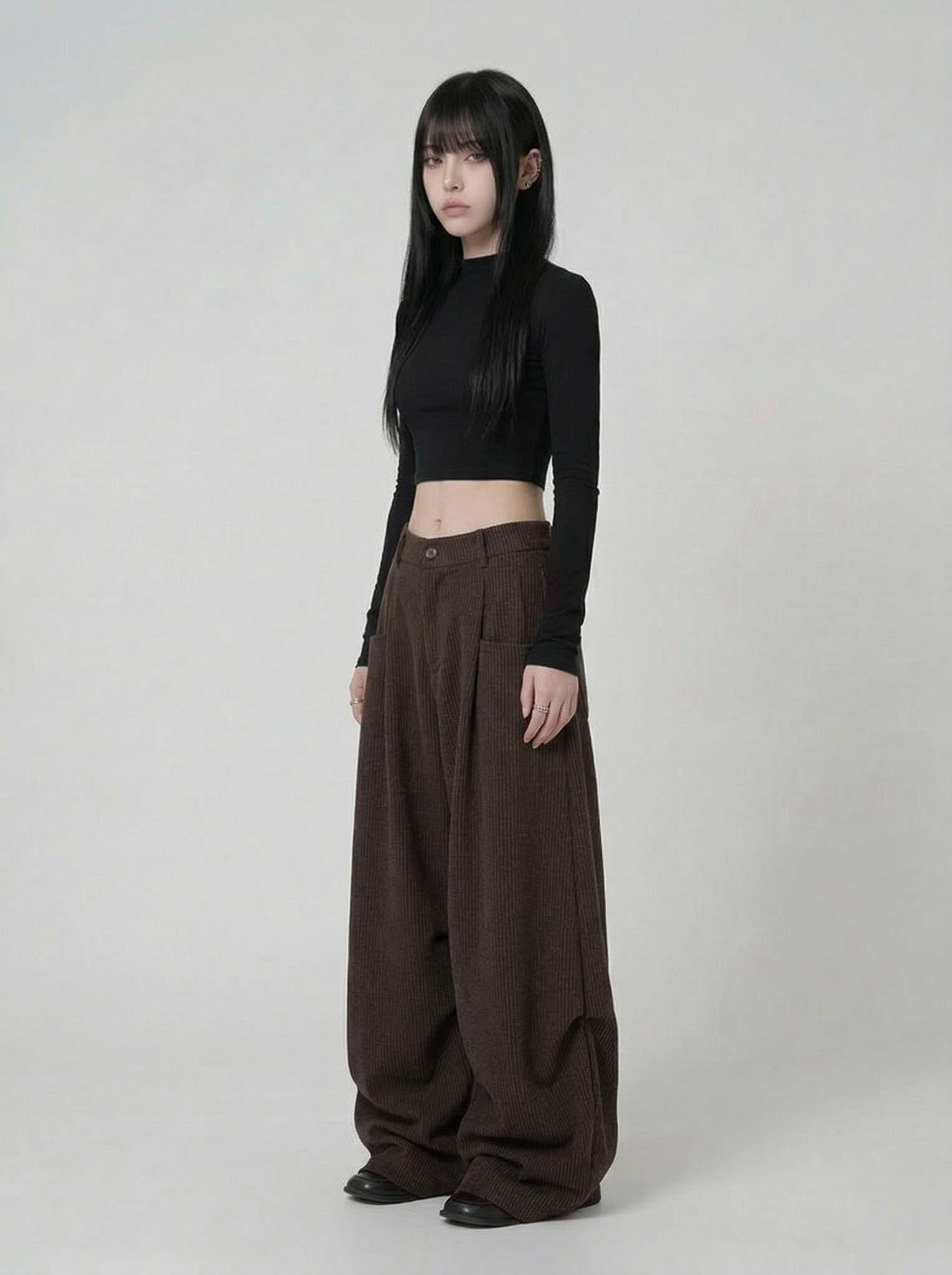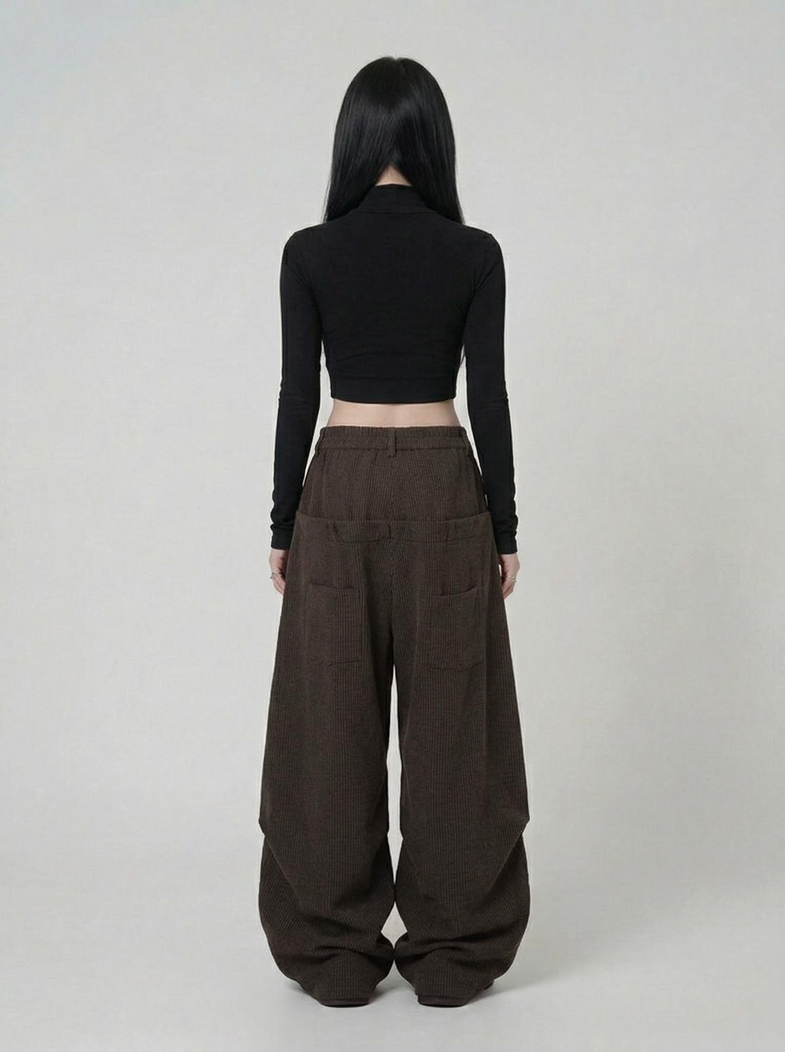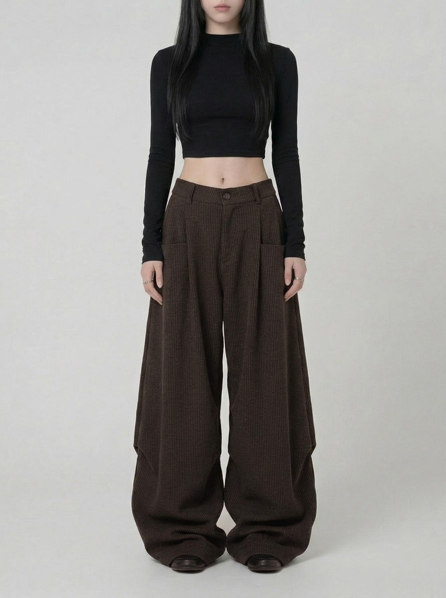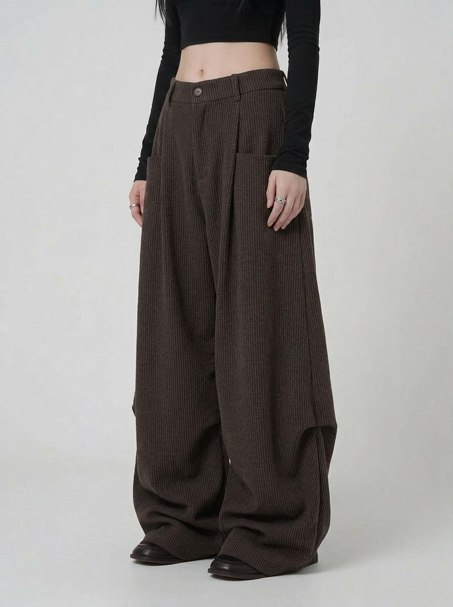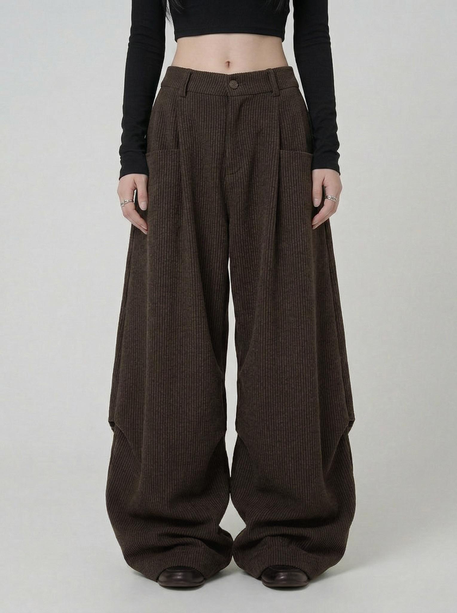【GUBAN】P-D124 燈芯絨皺摺廓形彎刀長褲