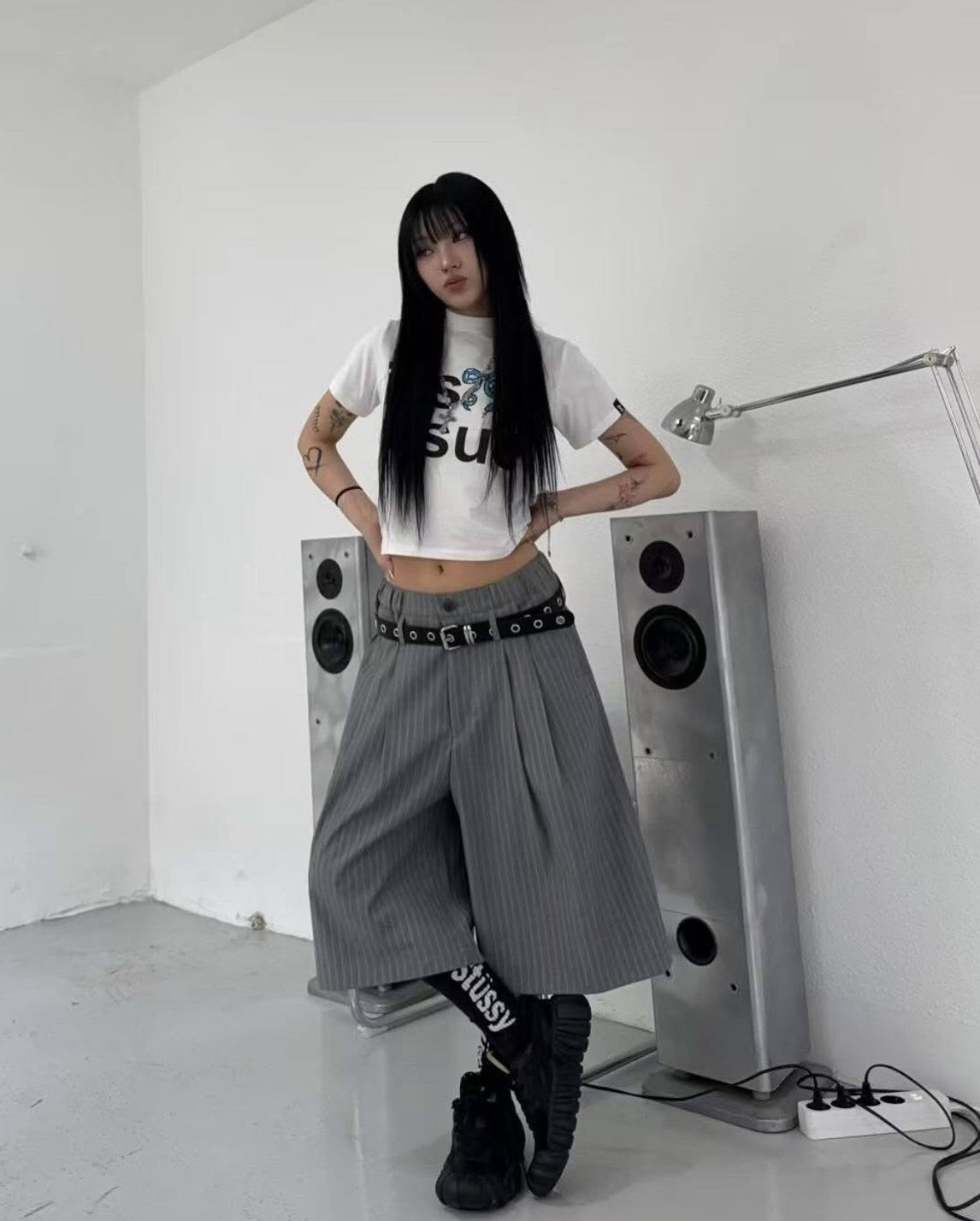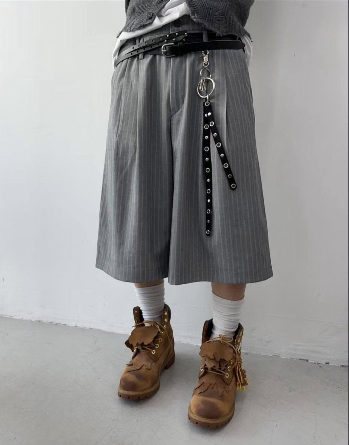 GUBAN】P-E66 韓國 直條紋 腰帶 半鬆緊 寬鬆 西裝 短褲