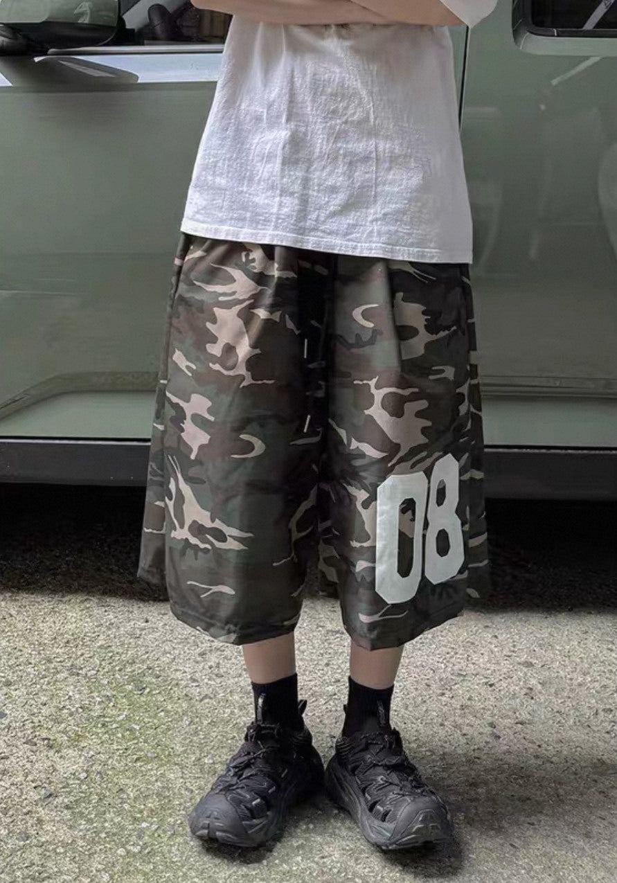韓國 迷彩 數字 尼龍 短褲