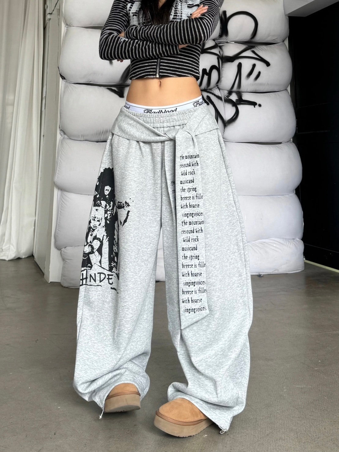 美式 復古 街舞 字母 印花 綁帶 棉褲