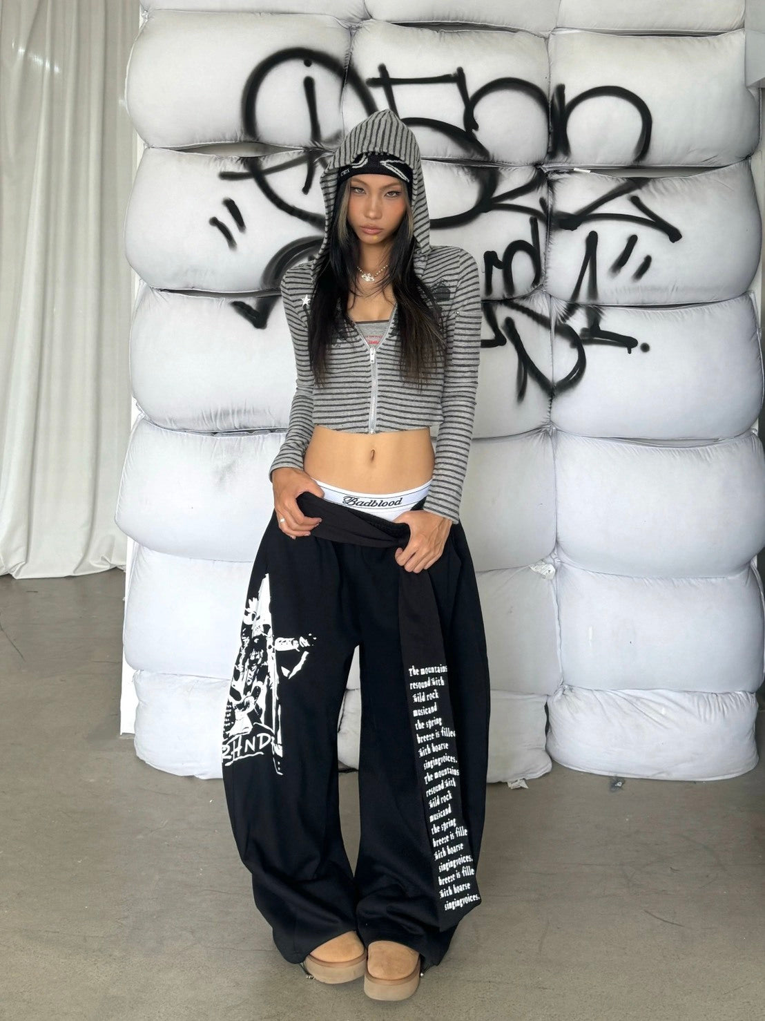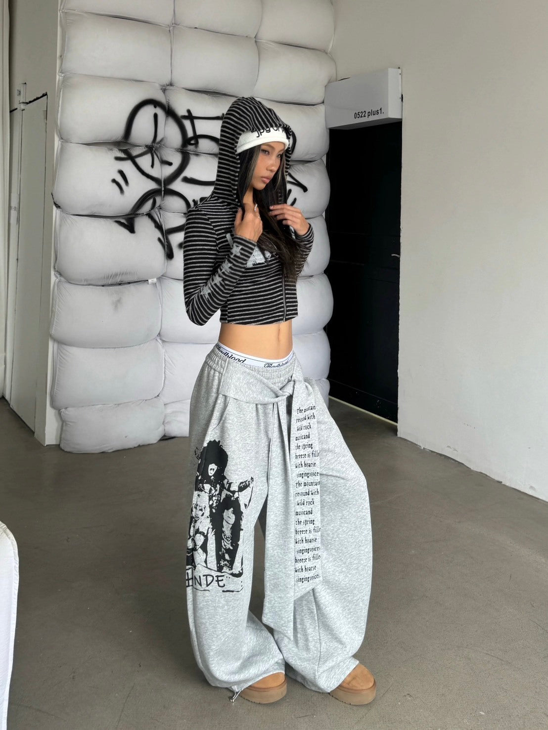 【GUBAN】P-W84 美式 復古 街舞 字母 印花 綁帶 棉褲