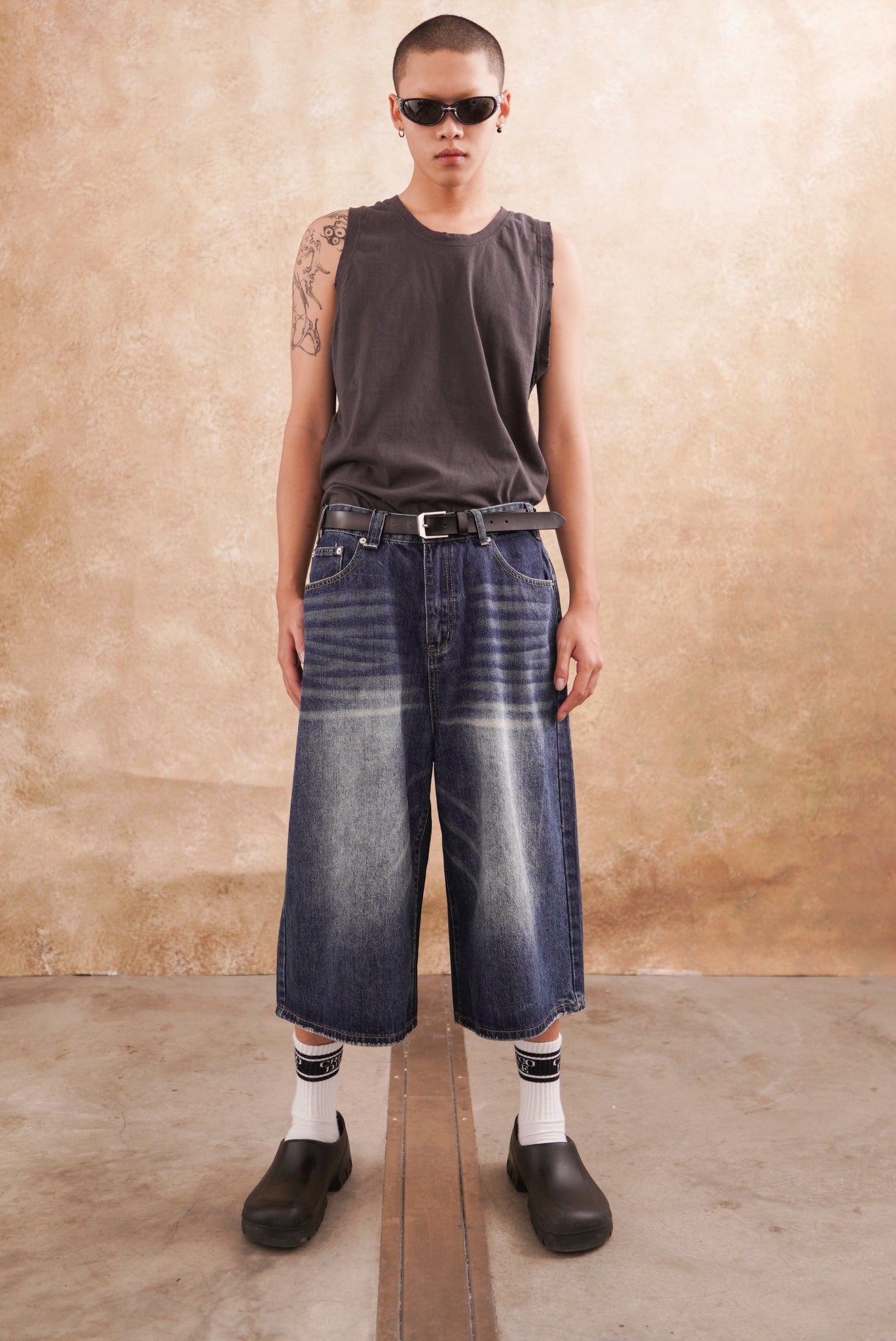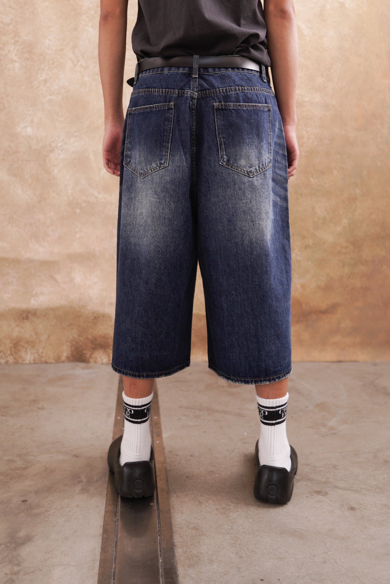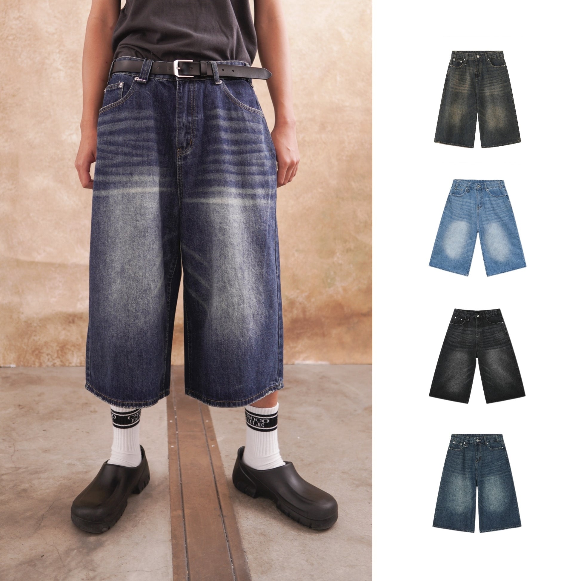 韓版 寬鬆 闊腿 做舊 復古 七分褲