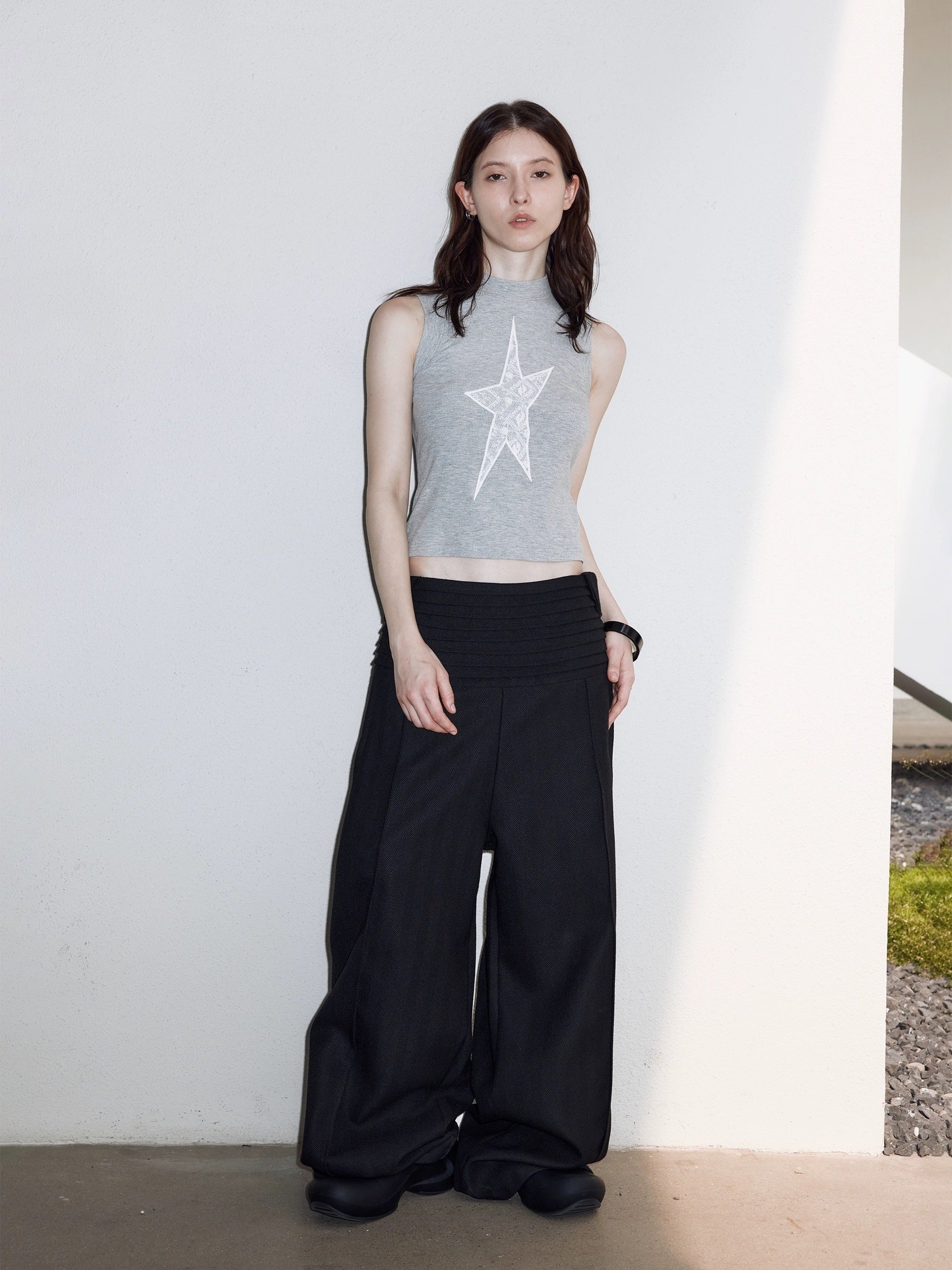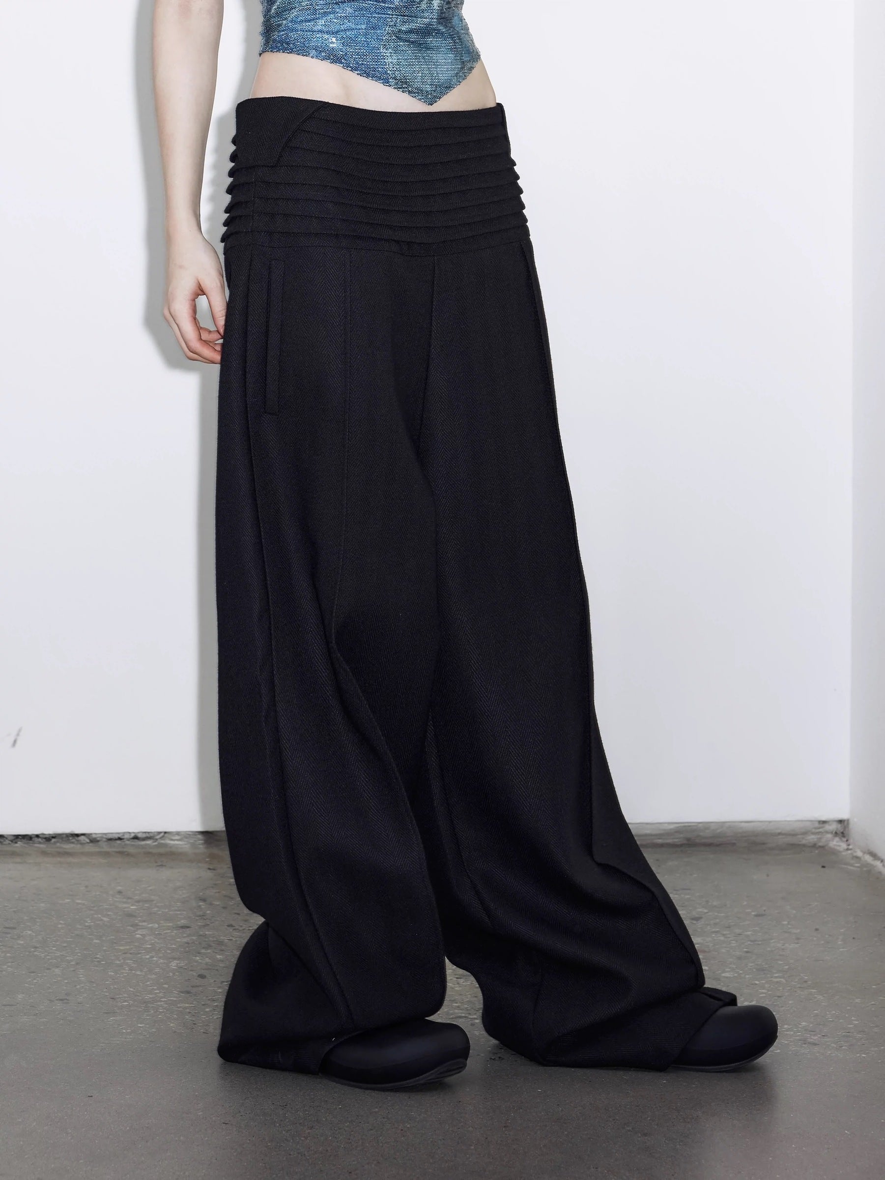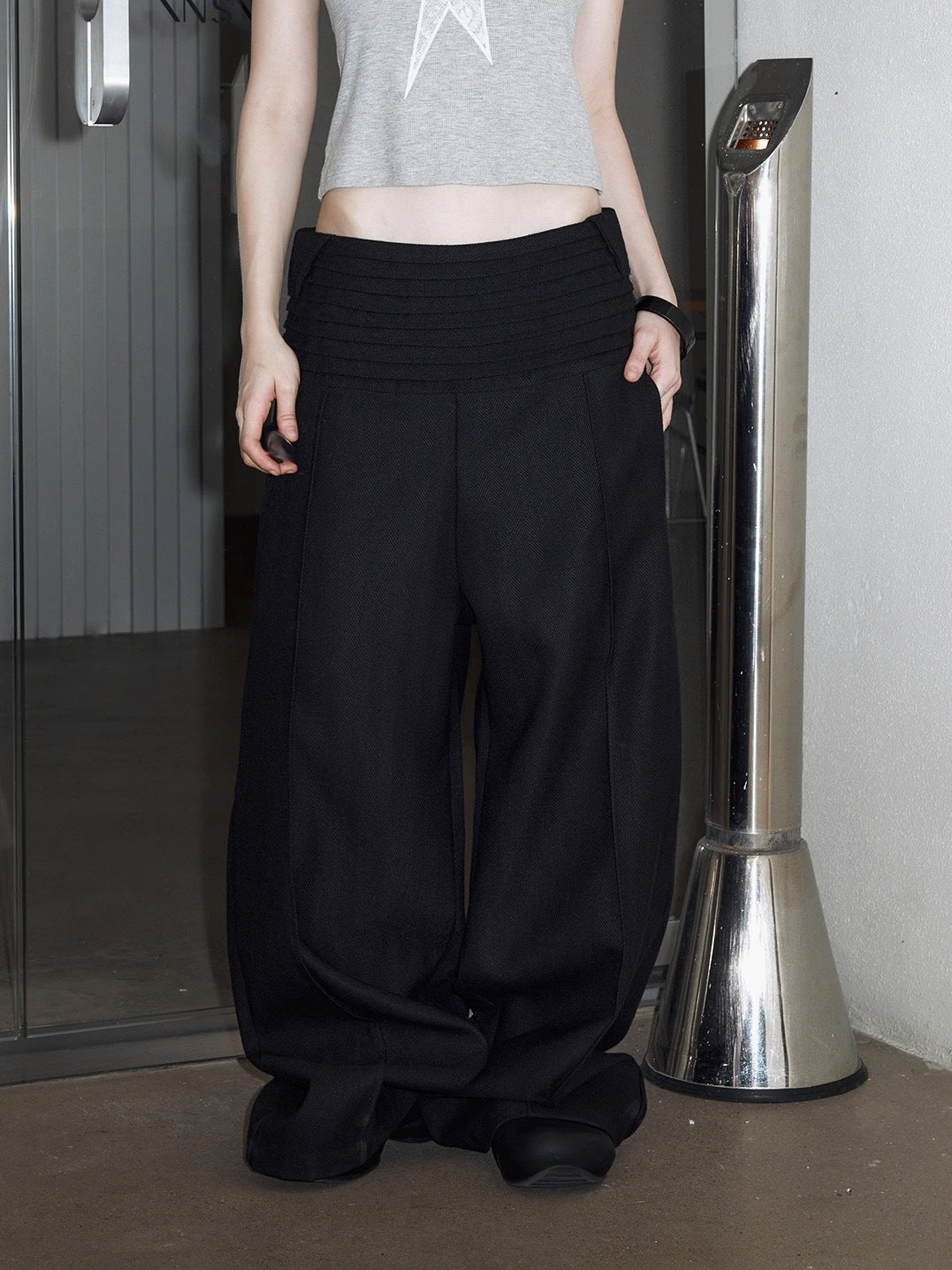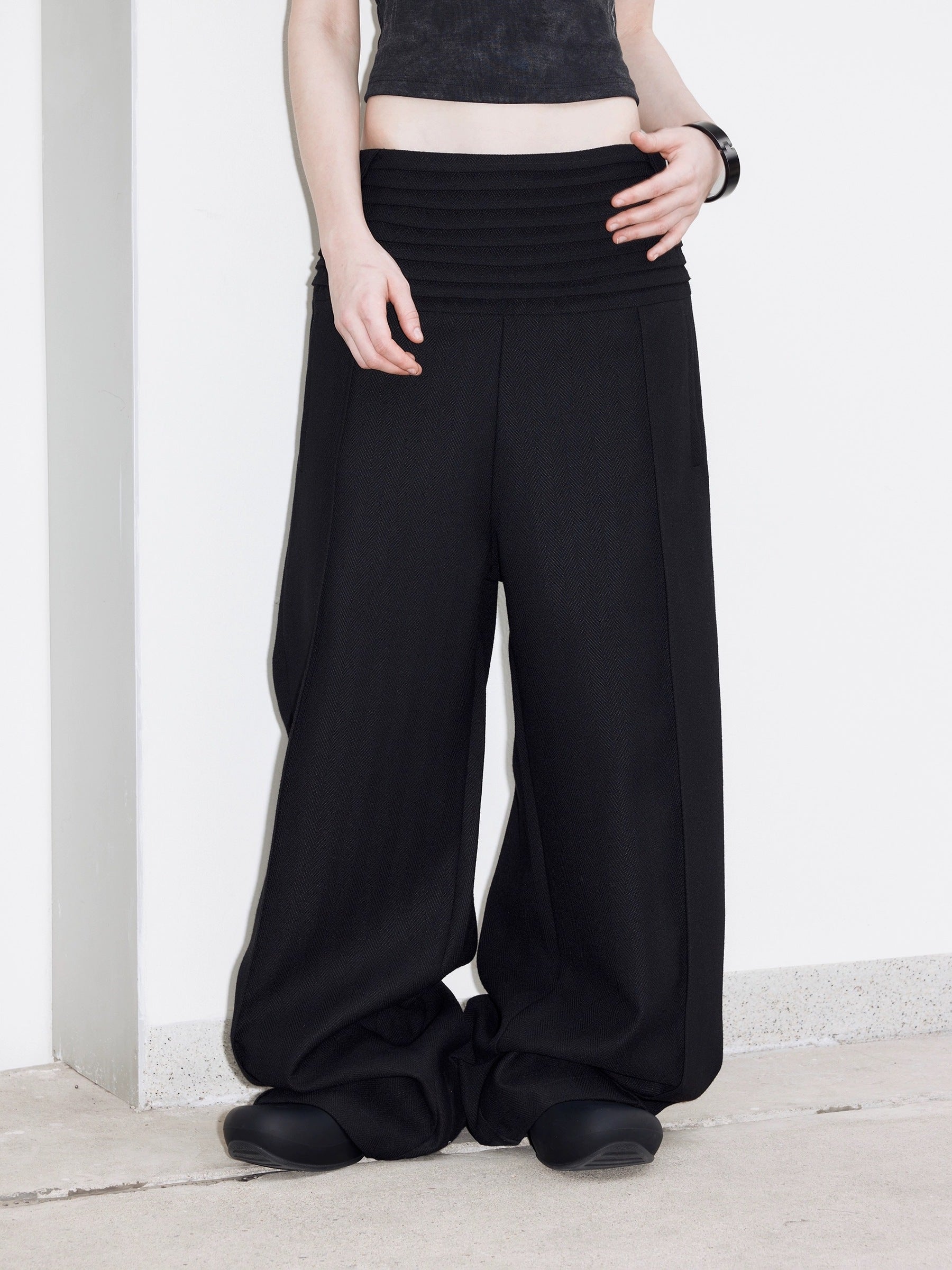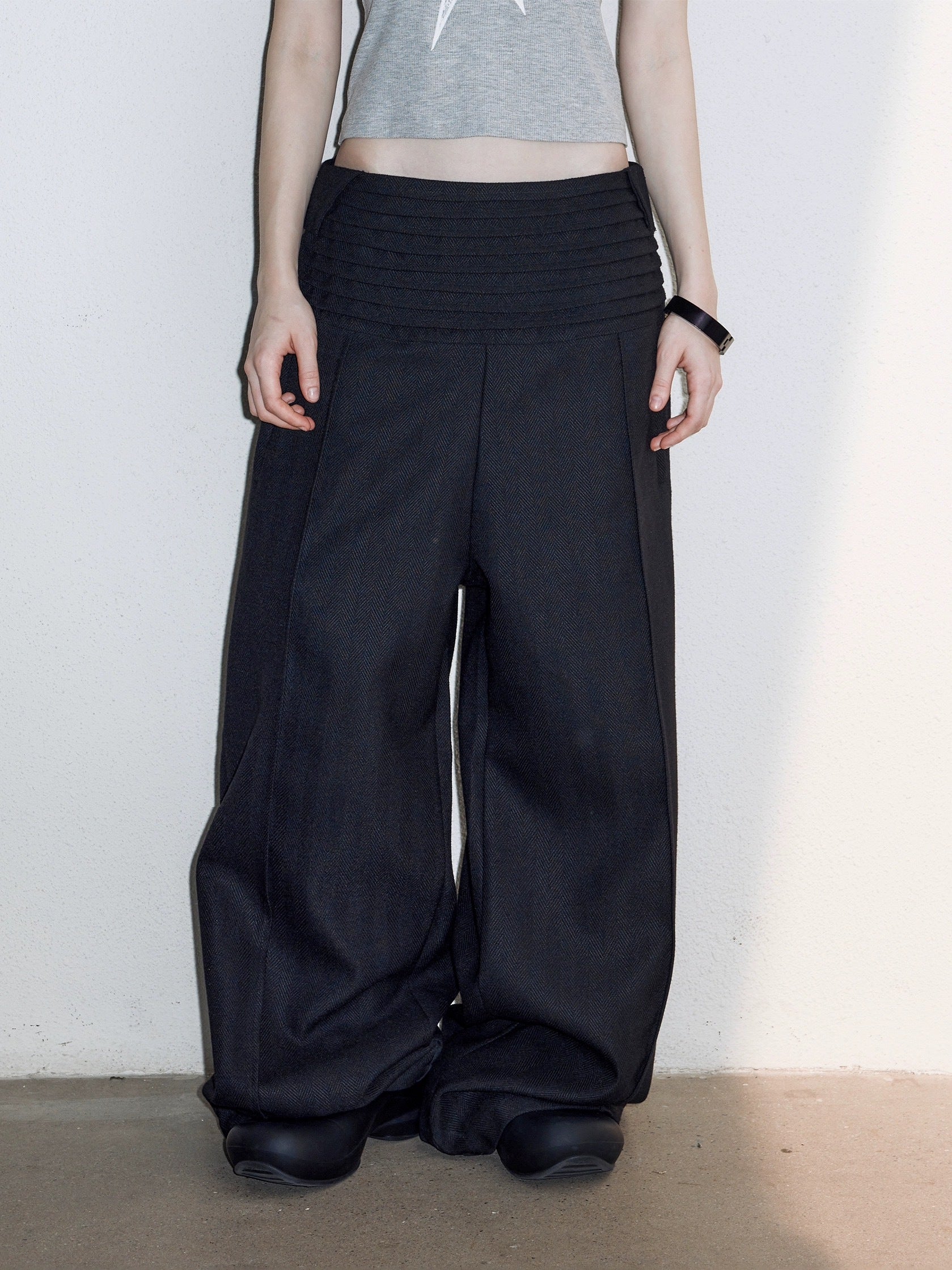 LABELROOM 24SS 階梯腰頭肌理面料寬鬆西裝褲