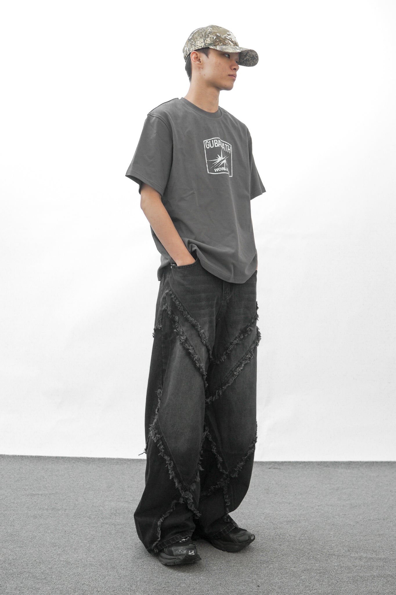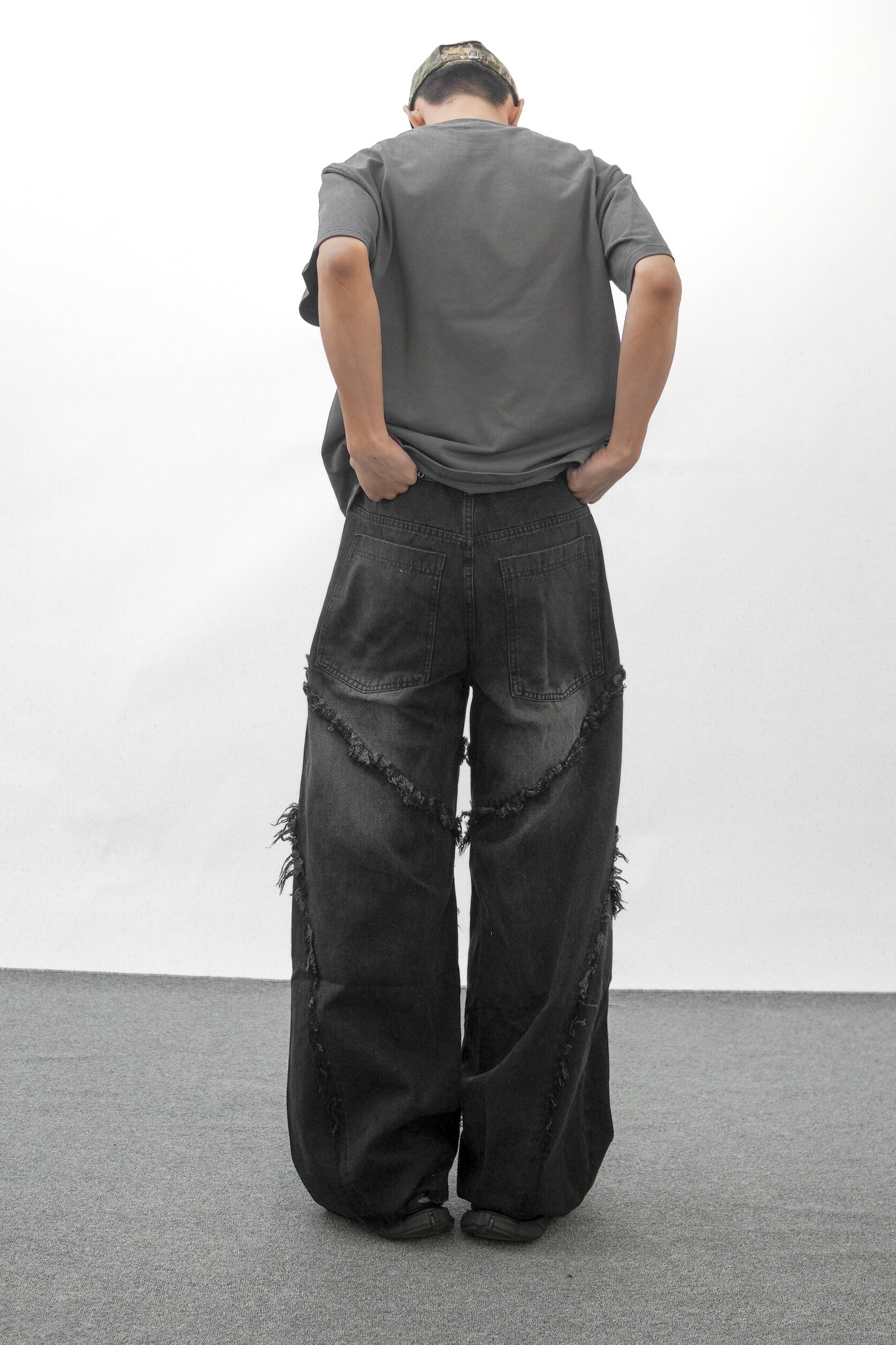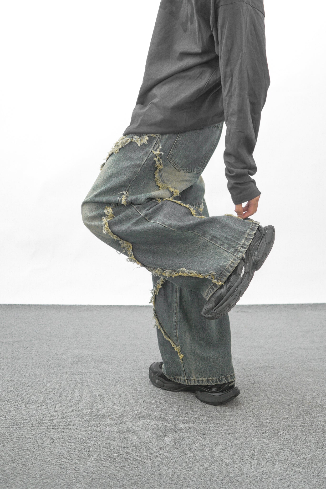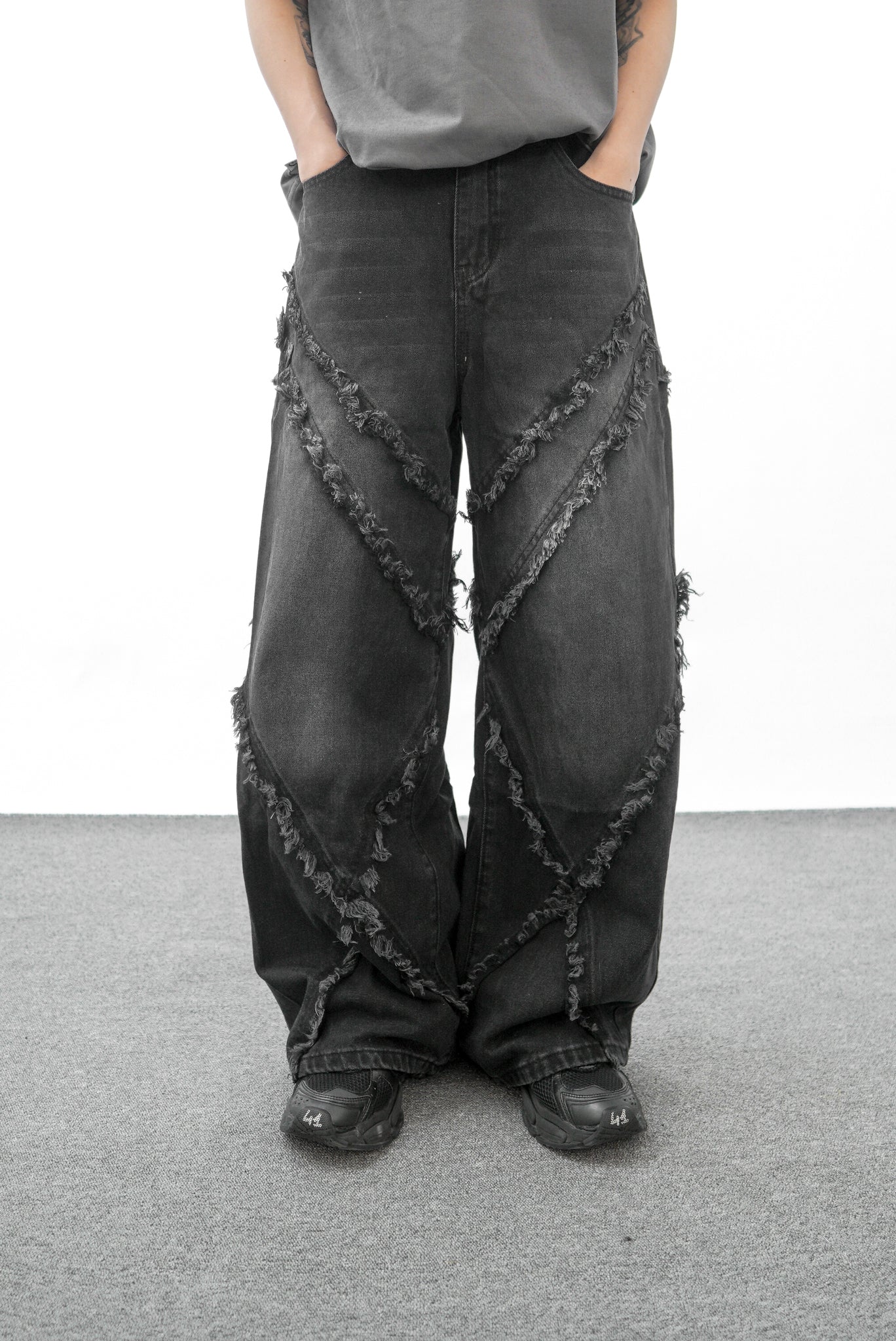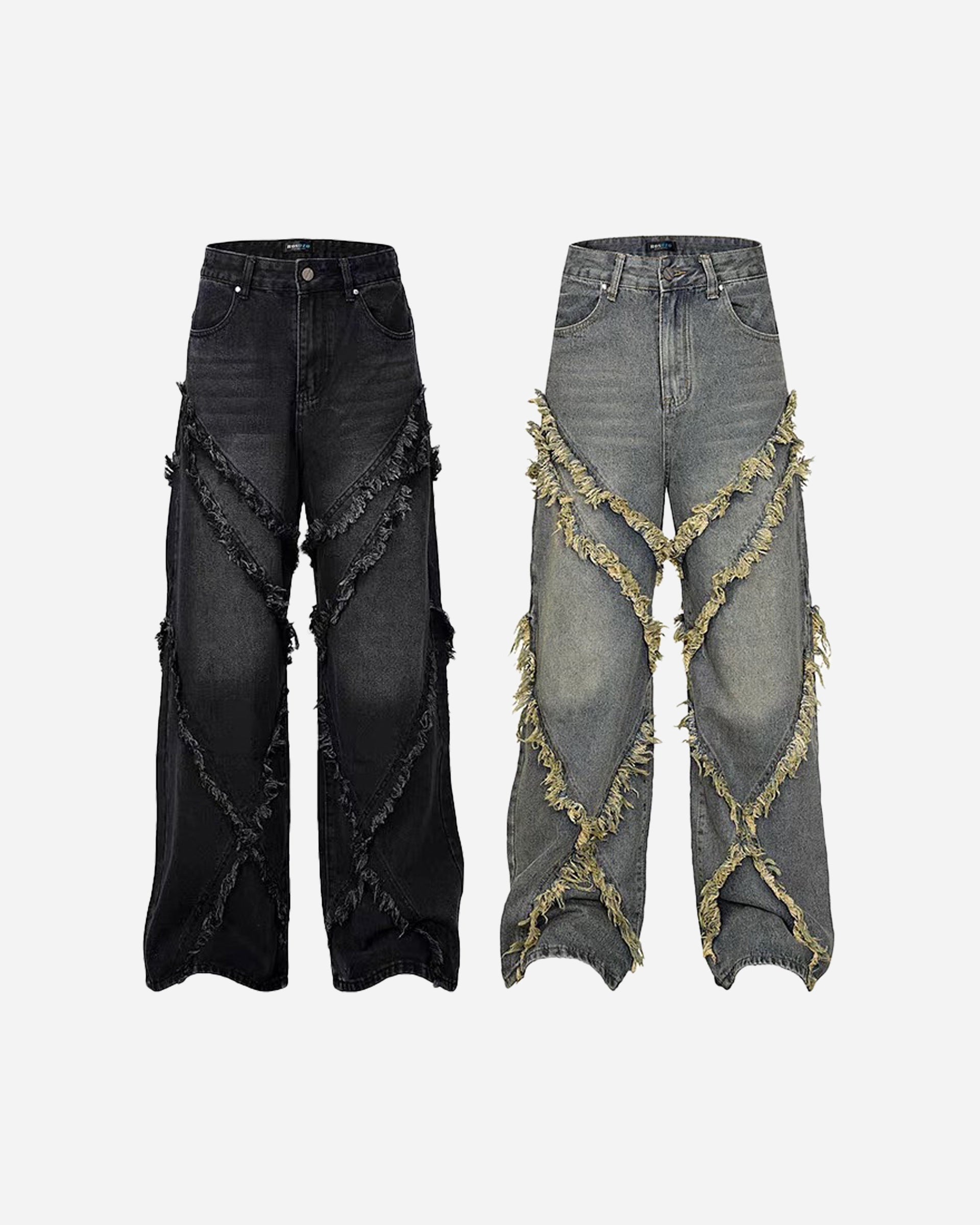 【GUBAN】PT- 2799 "Select" 美式復古毛邊流蘇拼接闊腿牛仔褲