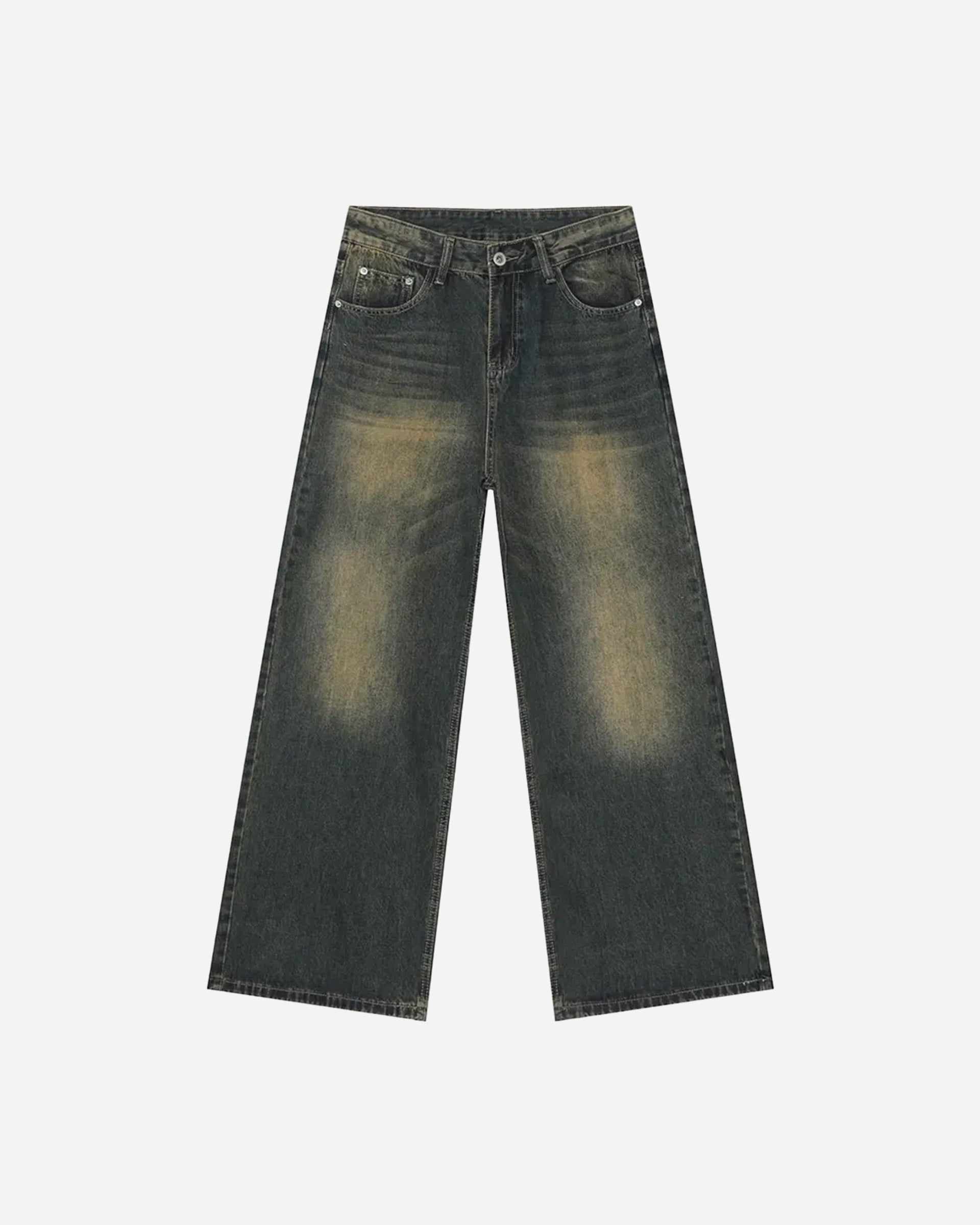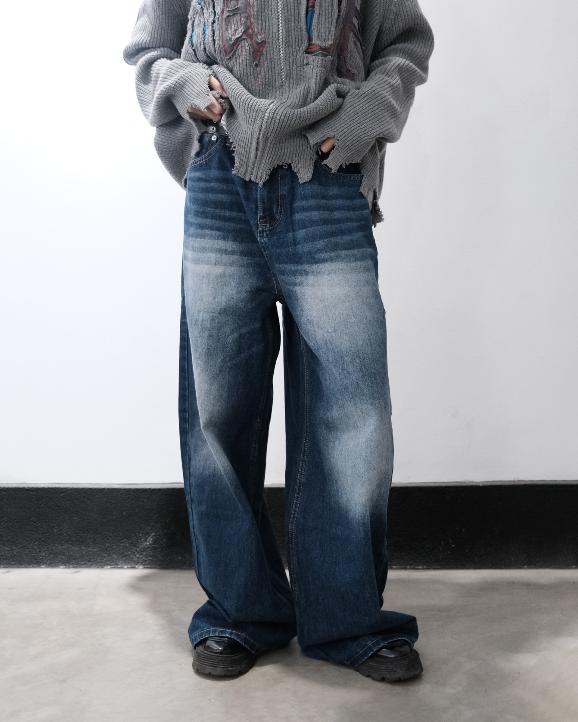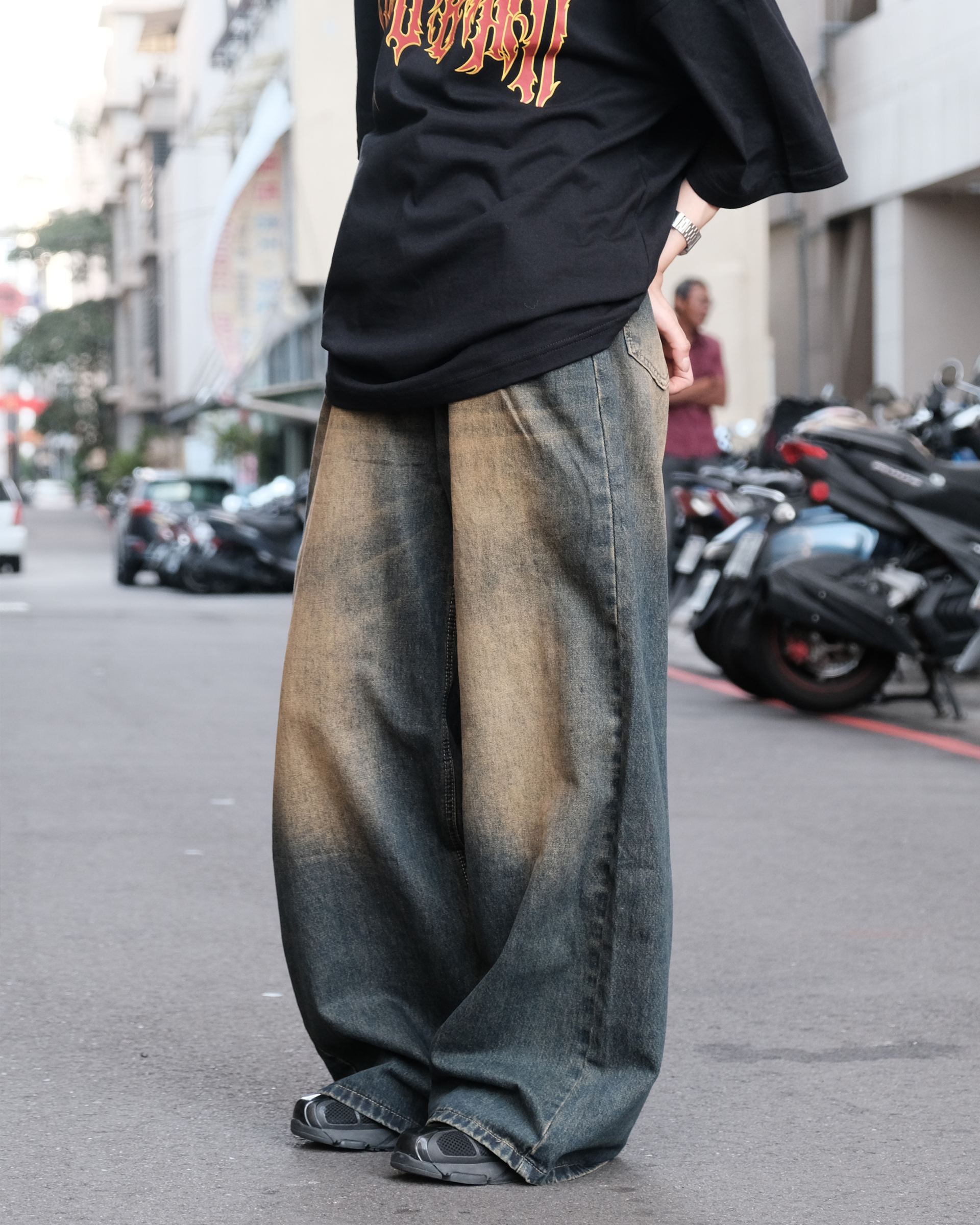 韓版 復古 淤泥 多色 水洗 做就 闊腿 直筒 牛仔褲