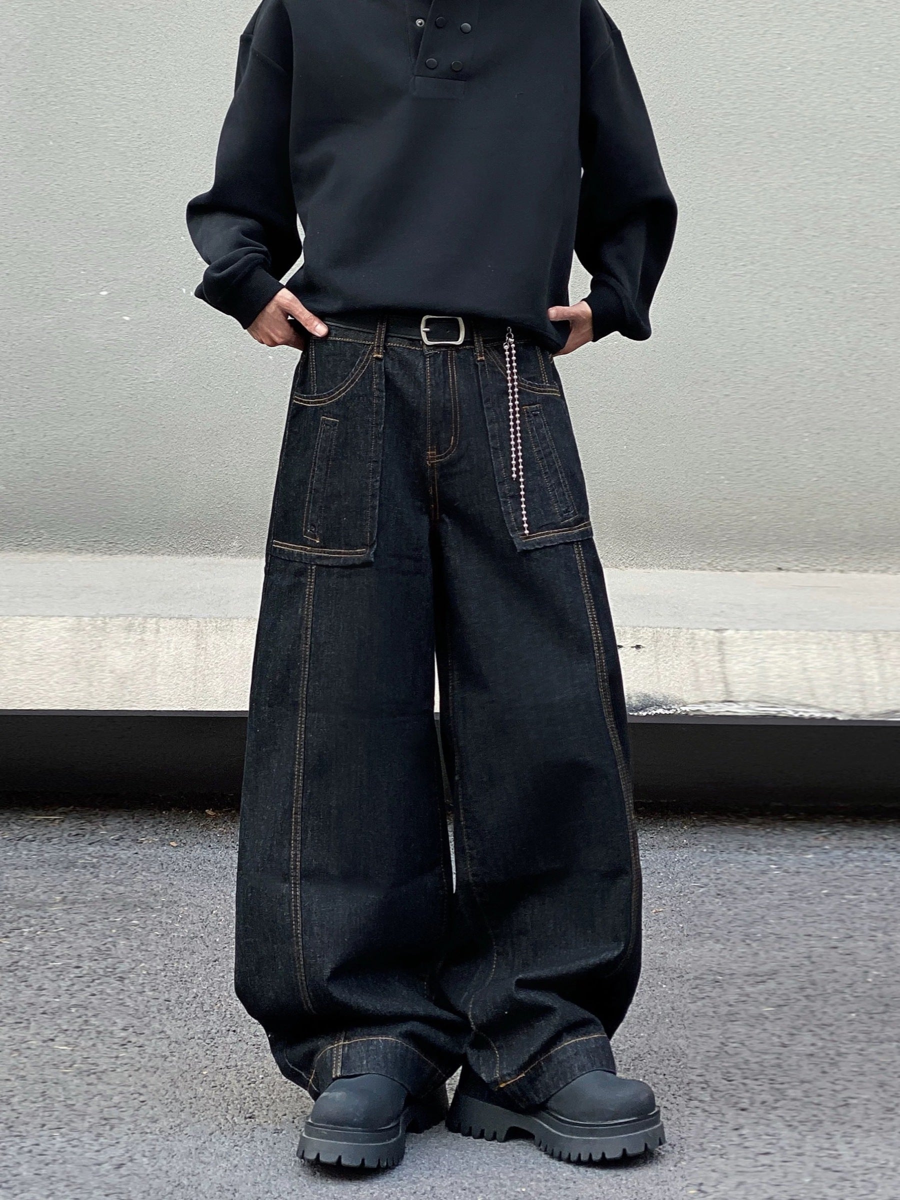 【GUBAN】PT- 2935 " Select " 美式復古單寧彎刀廓形牛仔褲