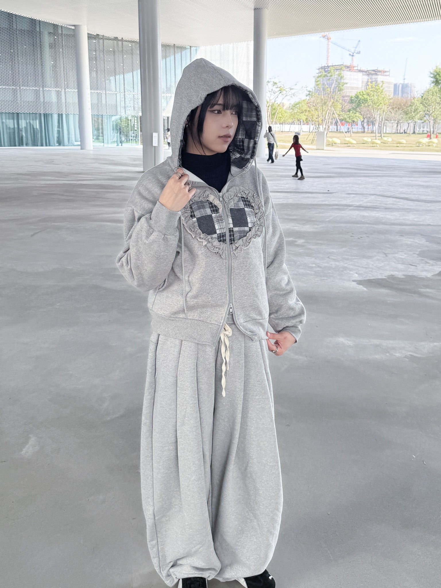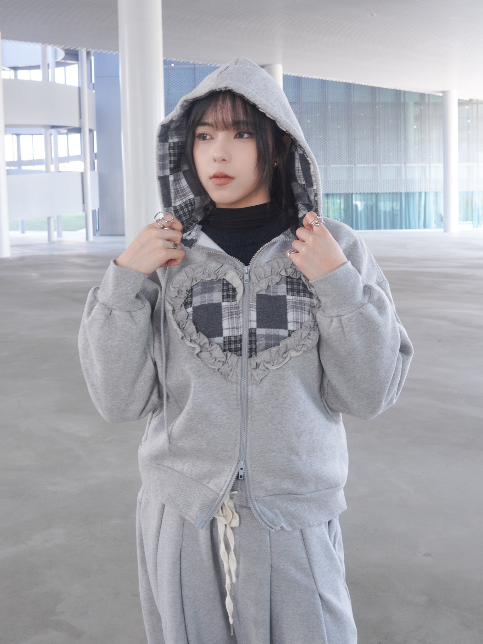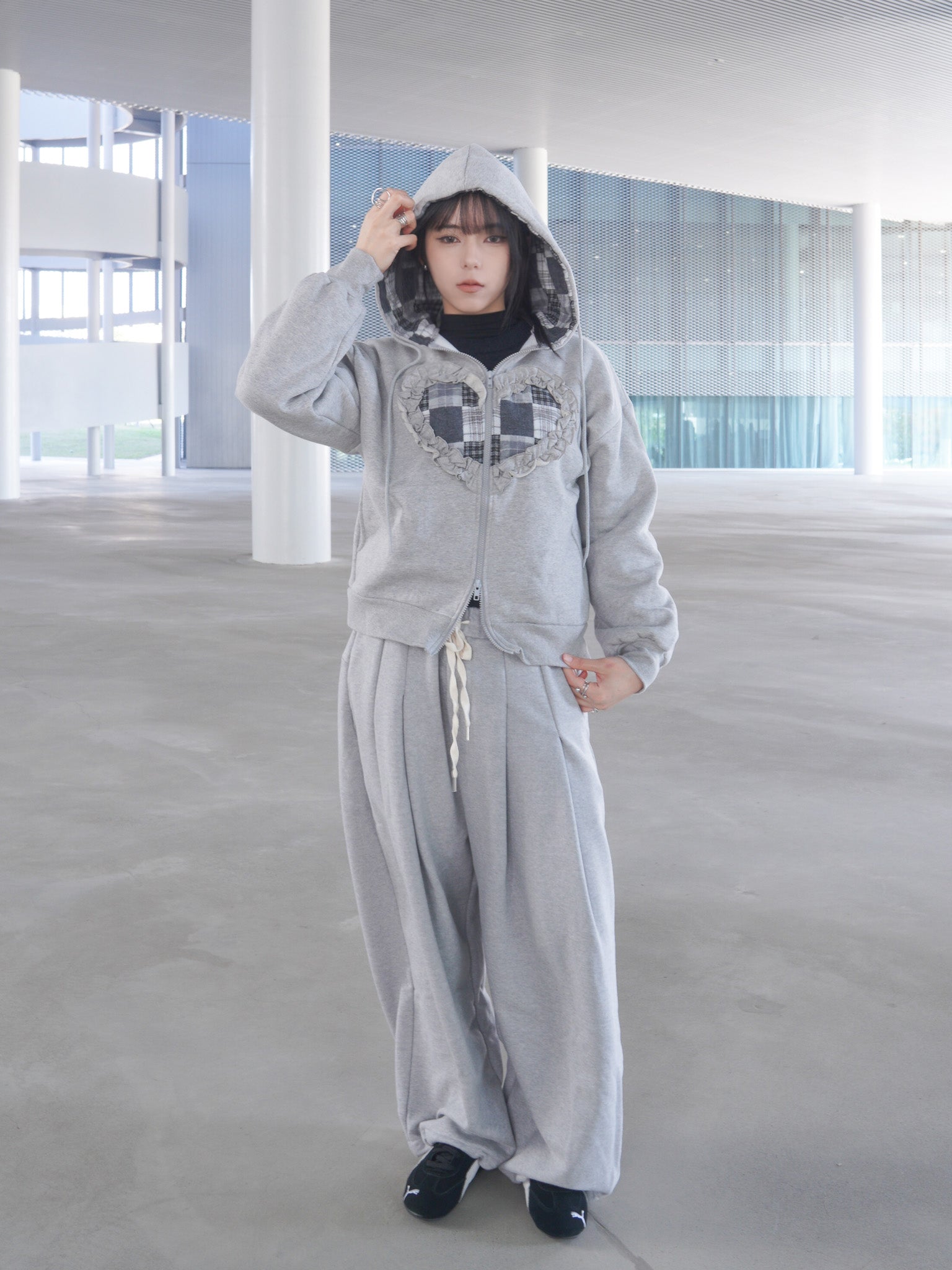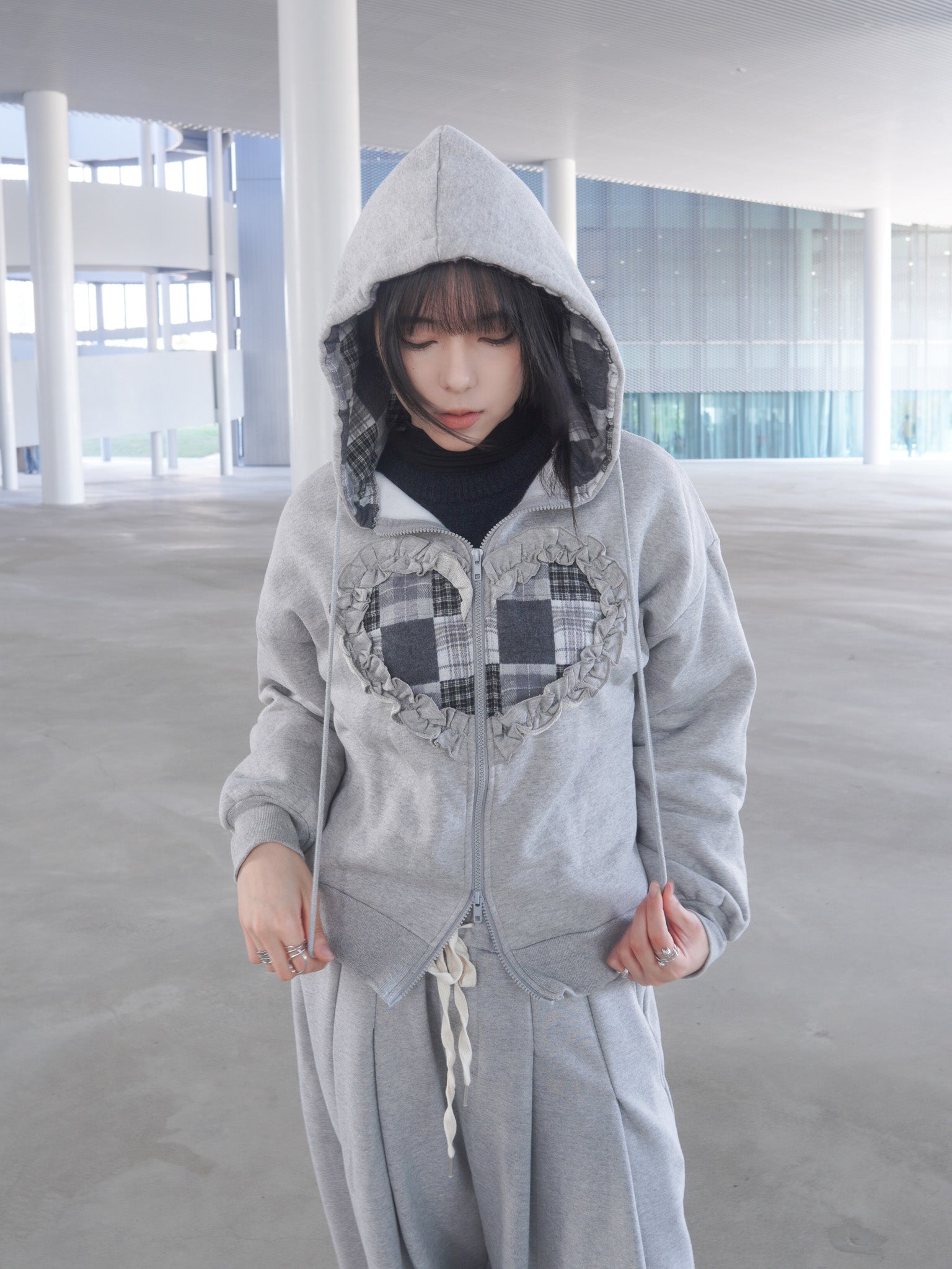 J-H92 韓國立體抽繩愛心貼布連帽外套