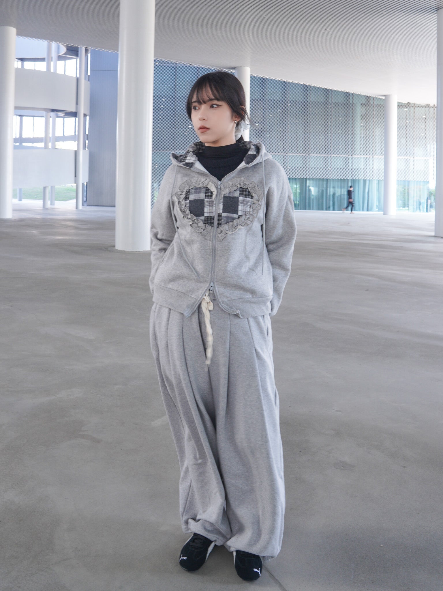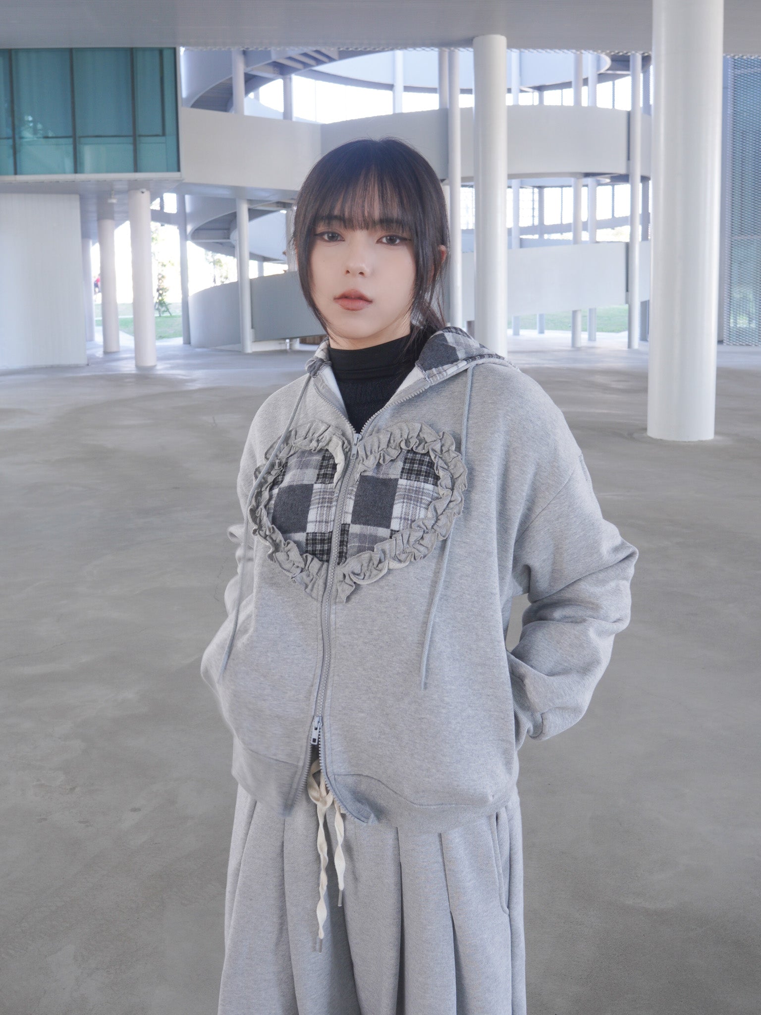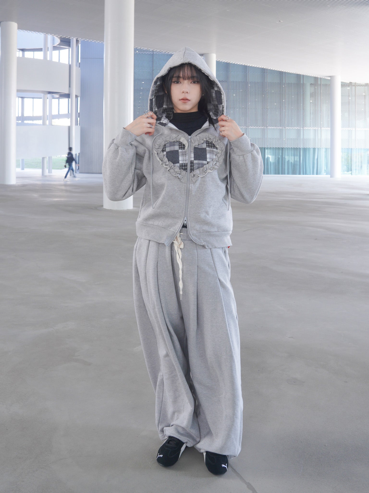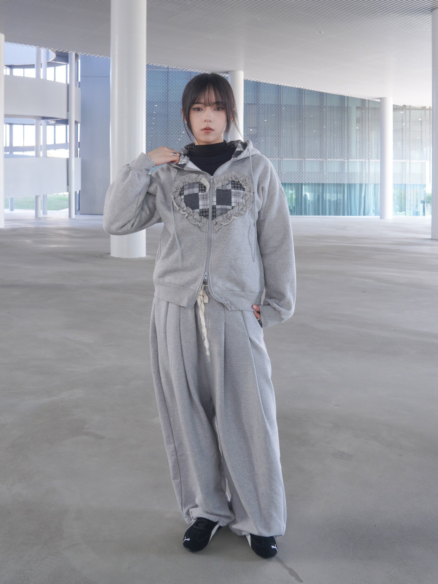 J-H92 韓國立體抽繩愛心貼布連帽外套