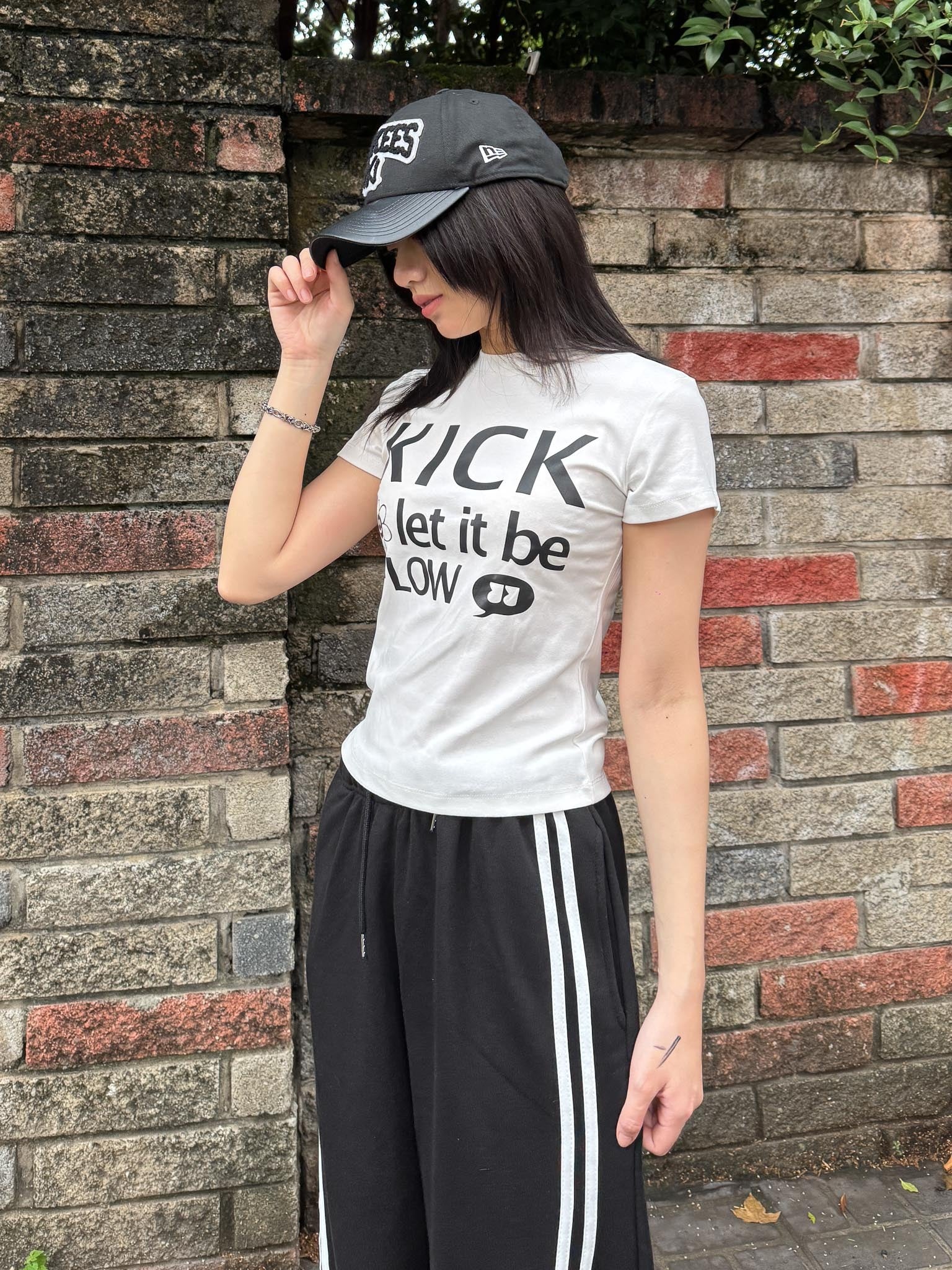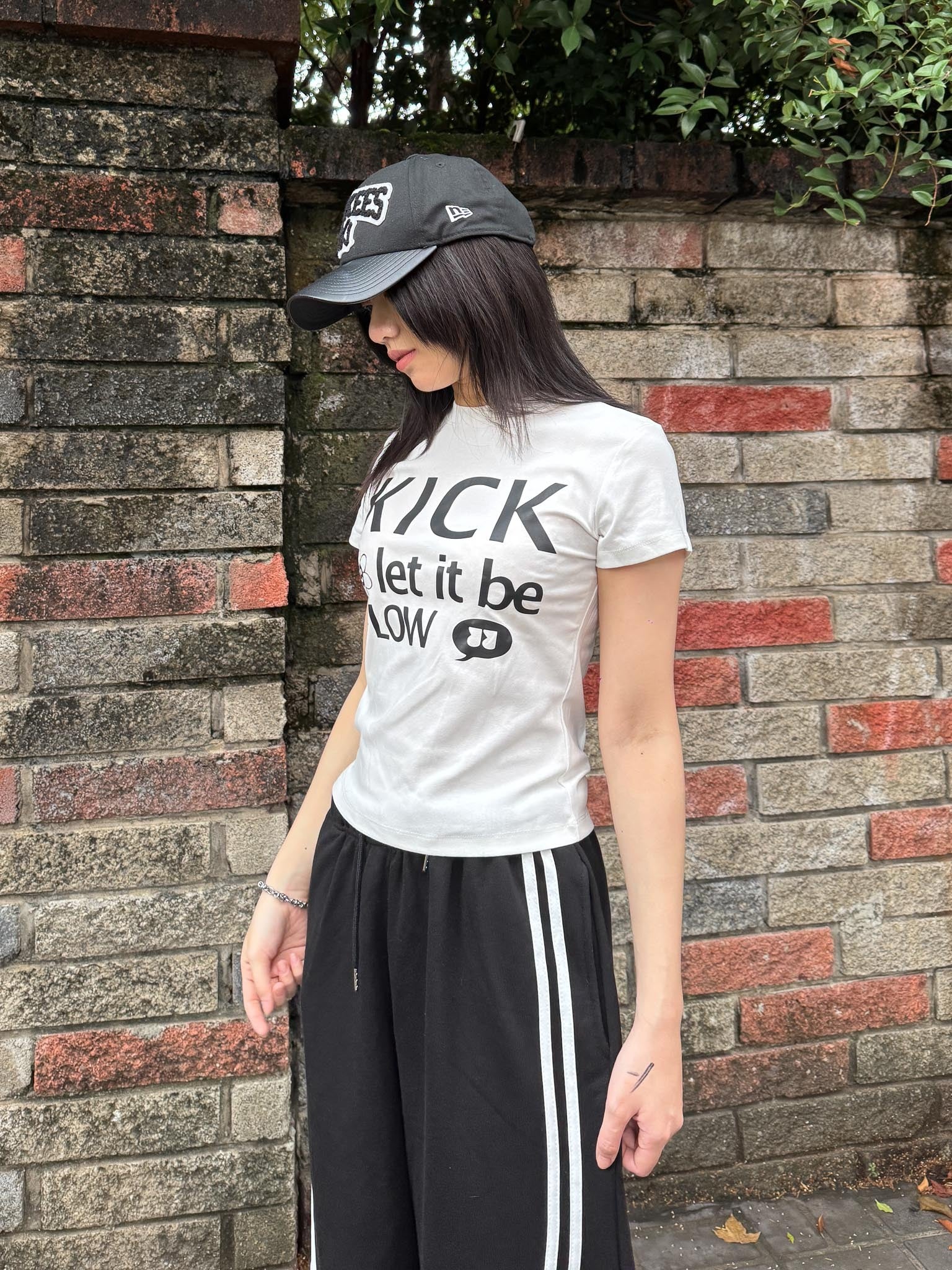 “MADE 𝗚𝘂𝗯𝗮𝗻 " KICK 小花 字母 萊卡 修身 彈力 短袖 上衣
