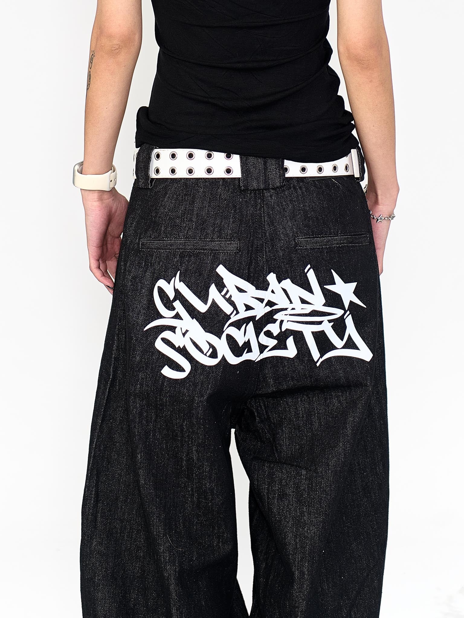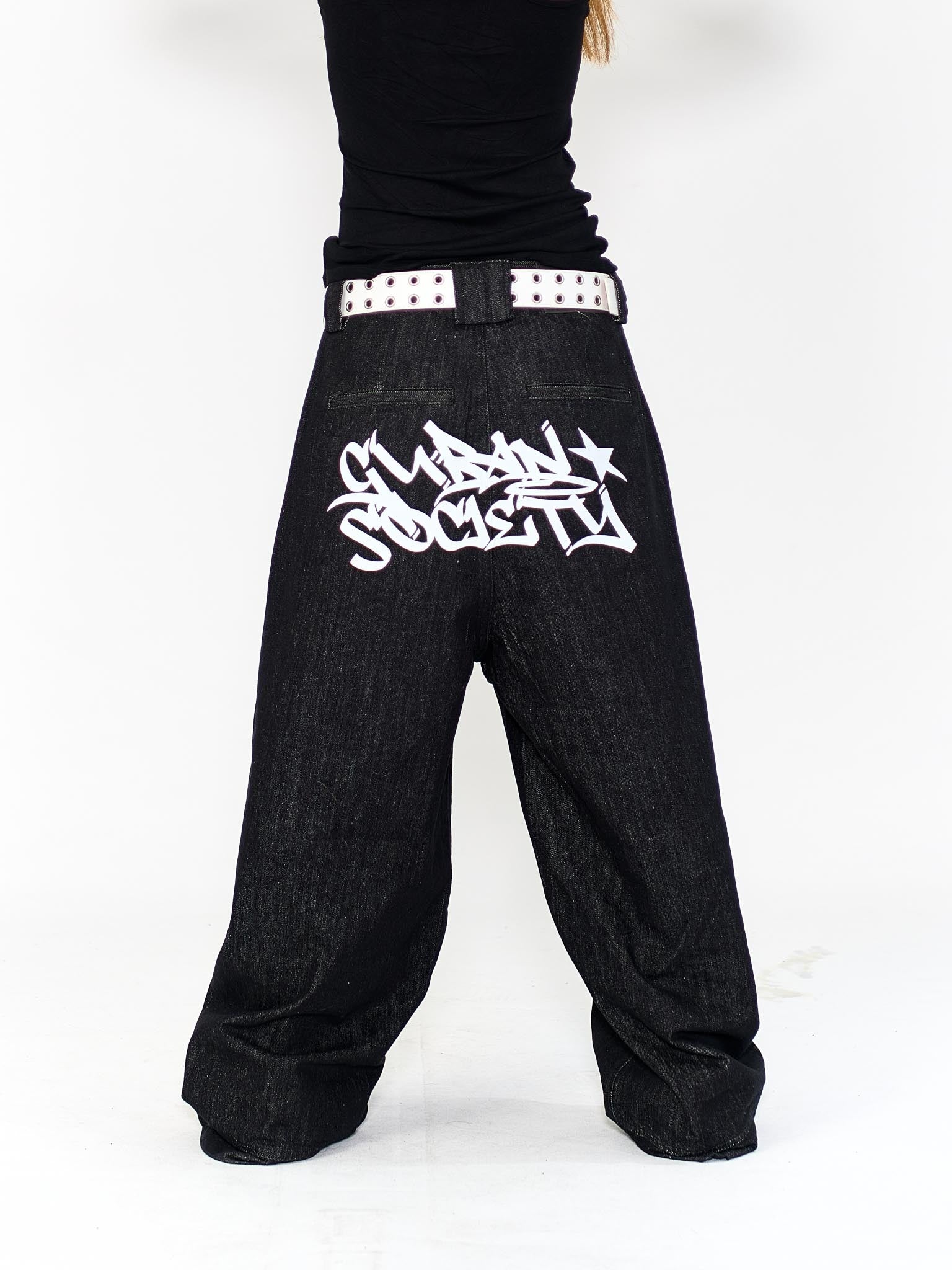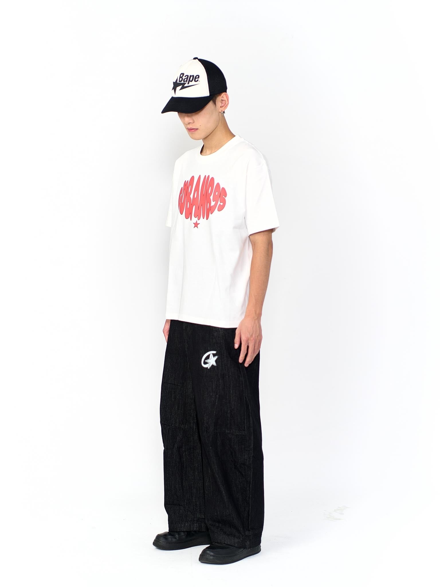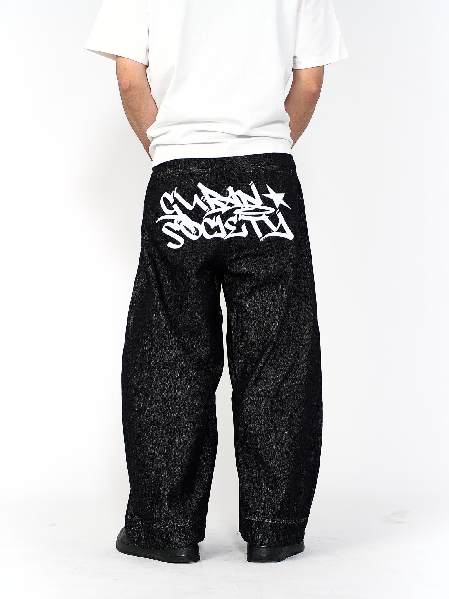 “MADE 𝗚𝘂𝗯𝗮𝗻 " 塗鴉 街舞 彎刀 原創 原牛 闊腿 做舊 牛仔褲