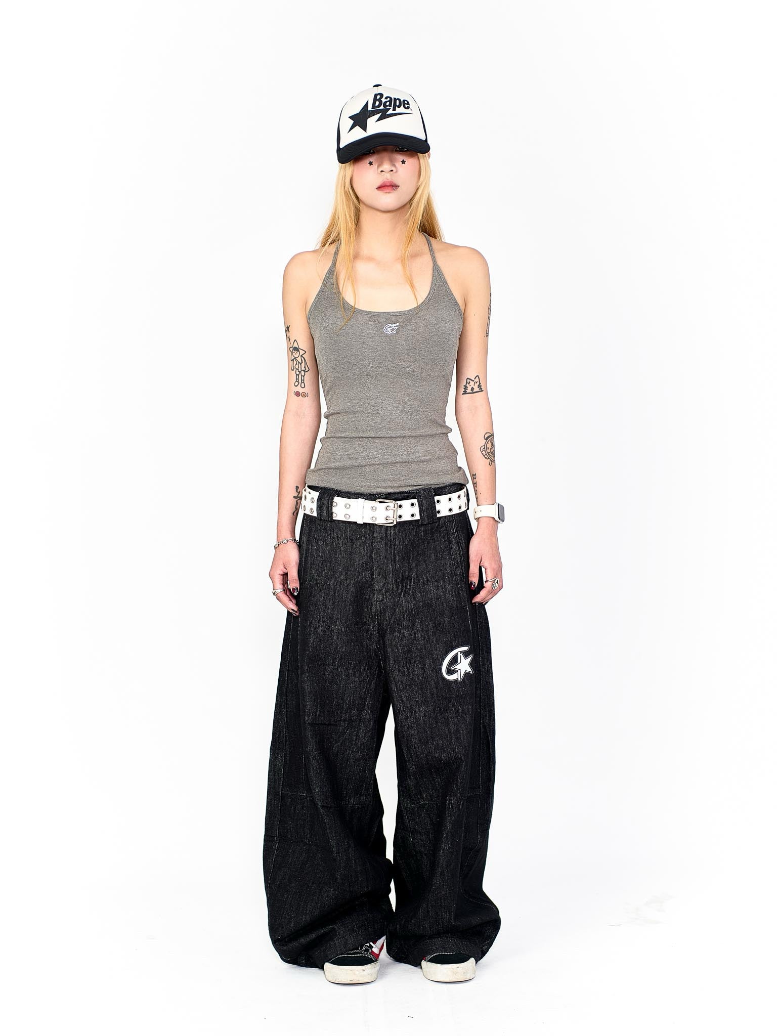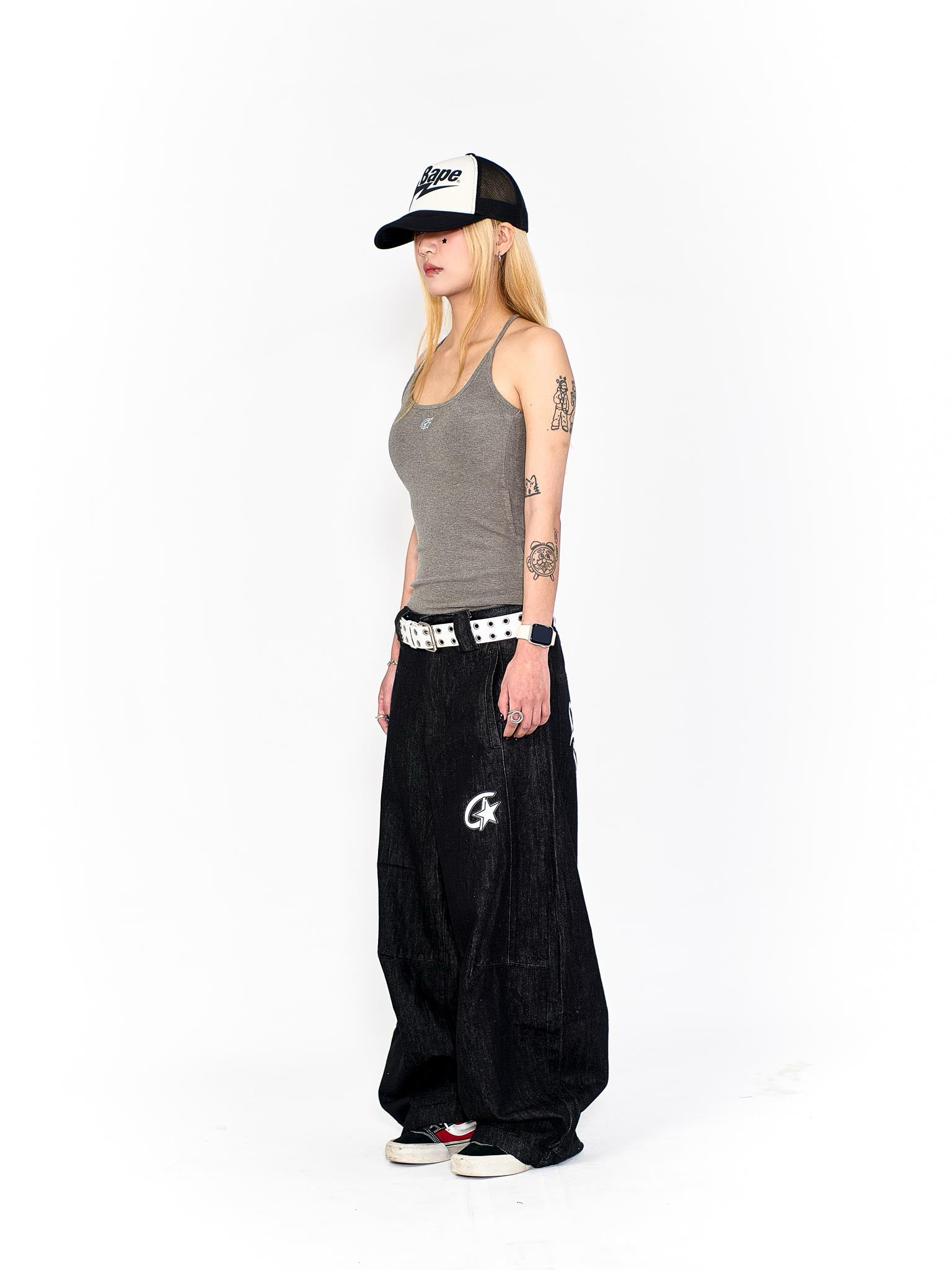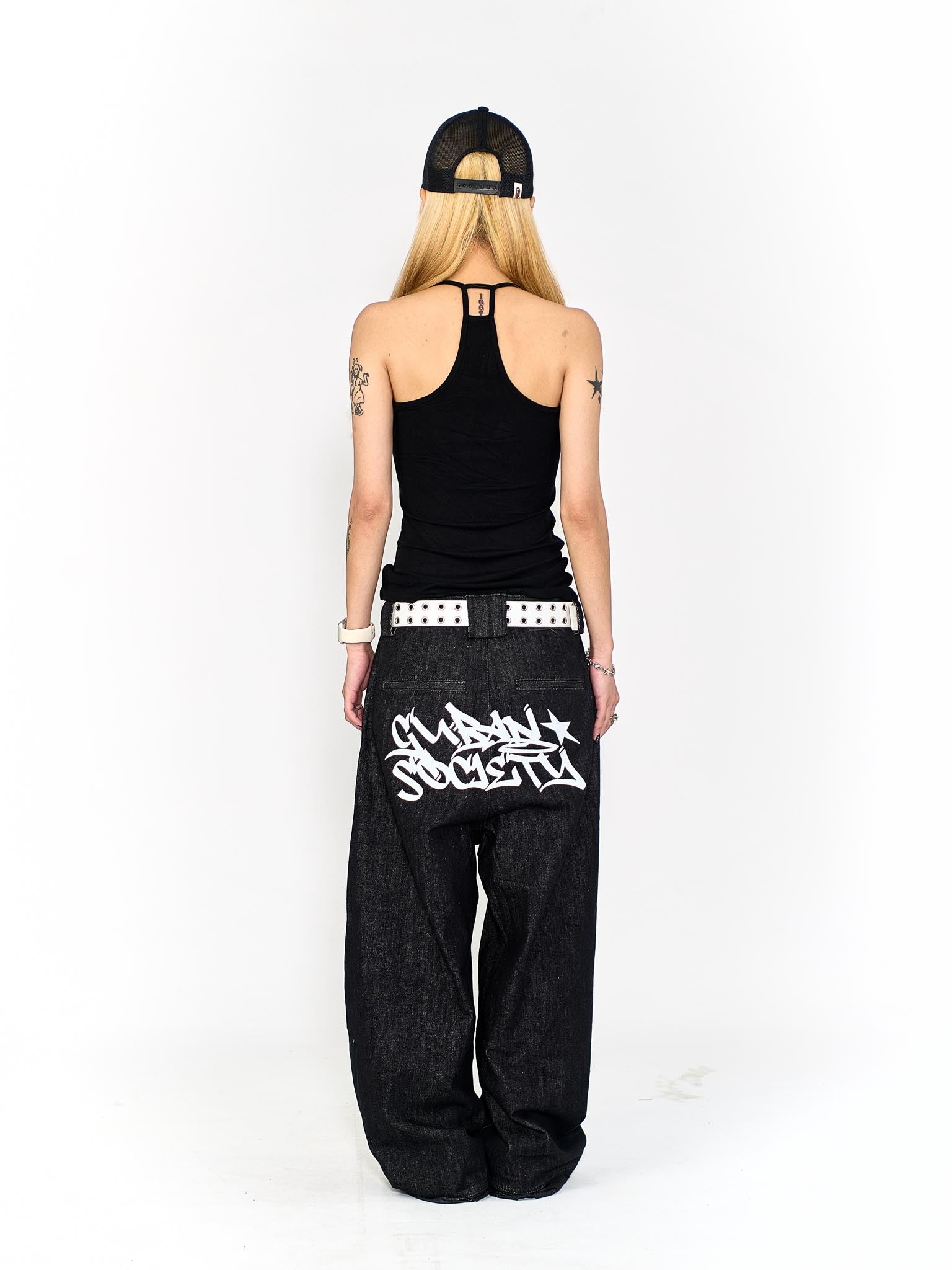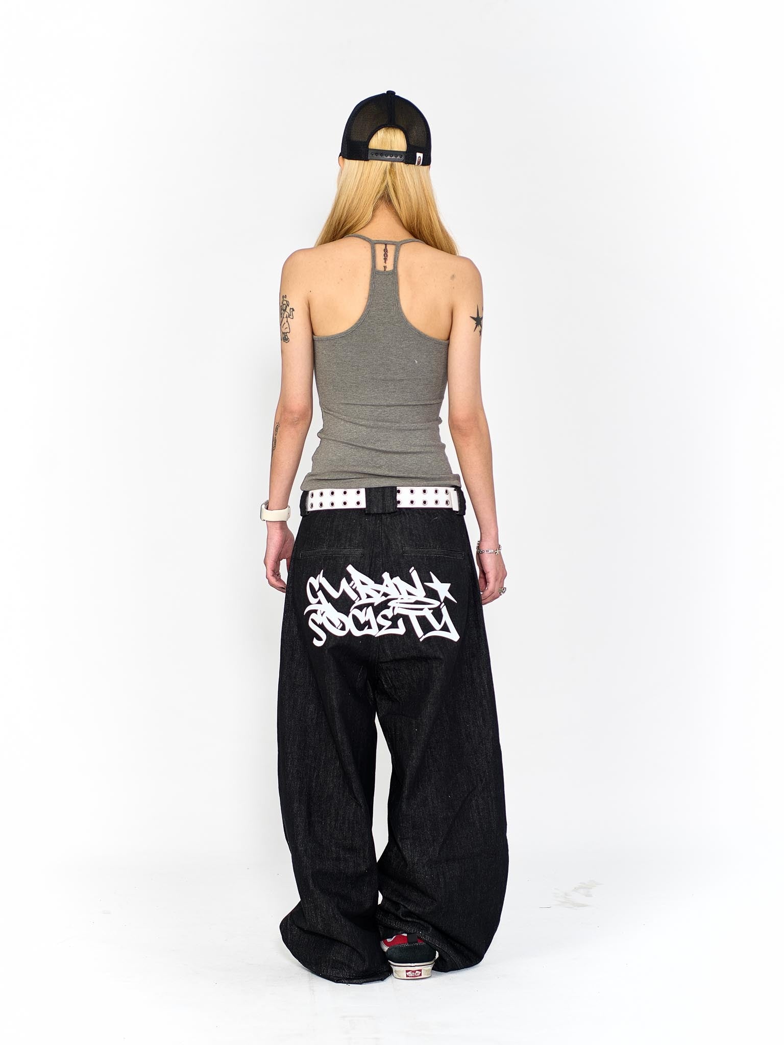 “MADE 𝗚𝘂𝗯𝗮𝗻 " 塗鴉 街舞 彎刀 原創 原牛 闊腿 做舊 牛仔褲