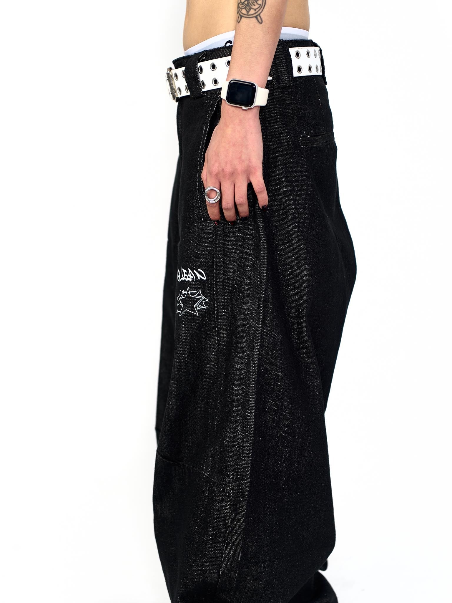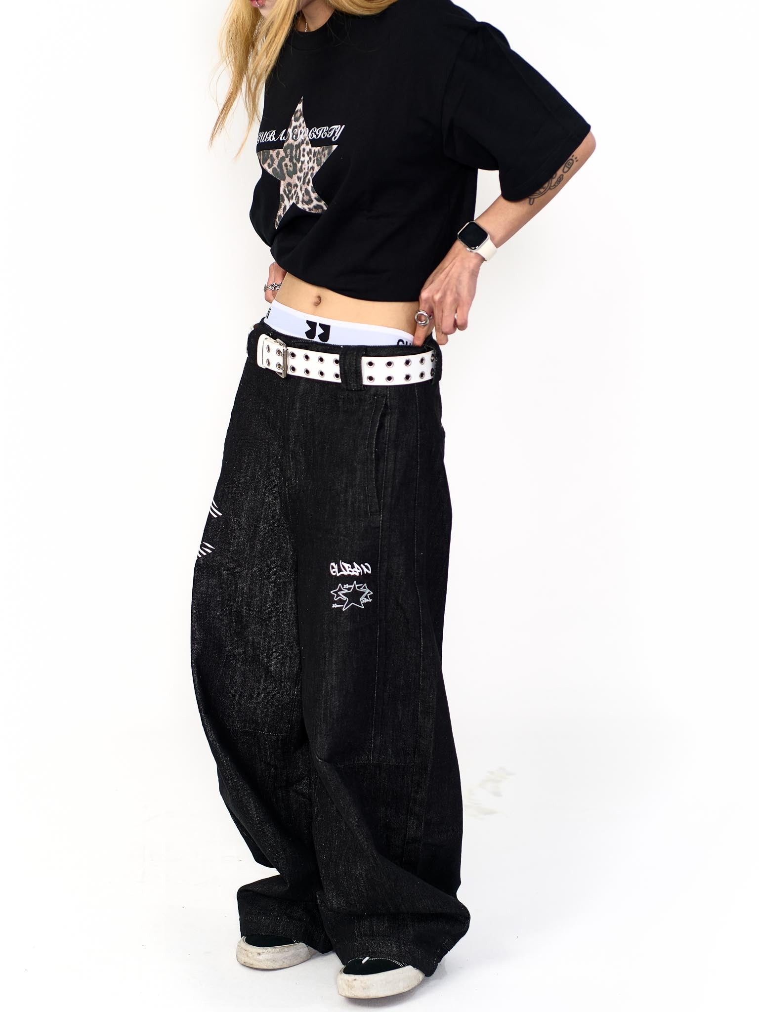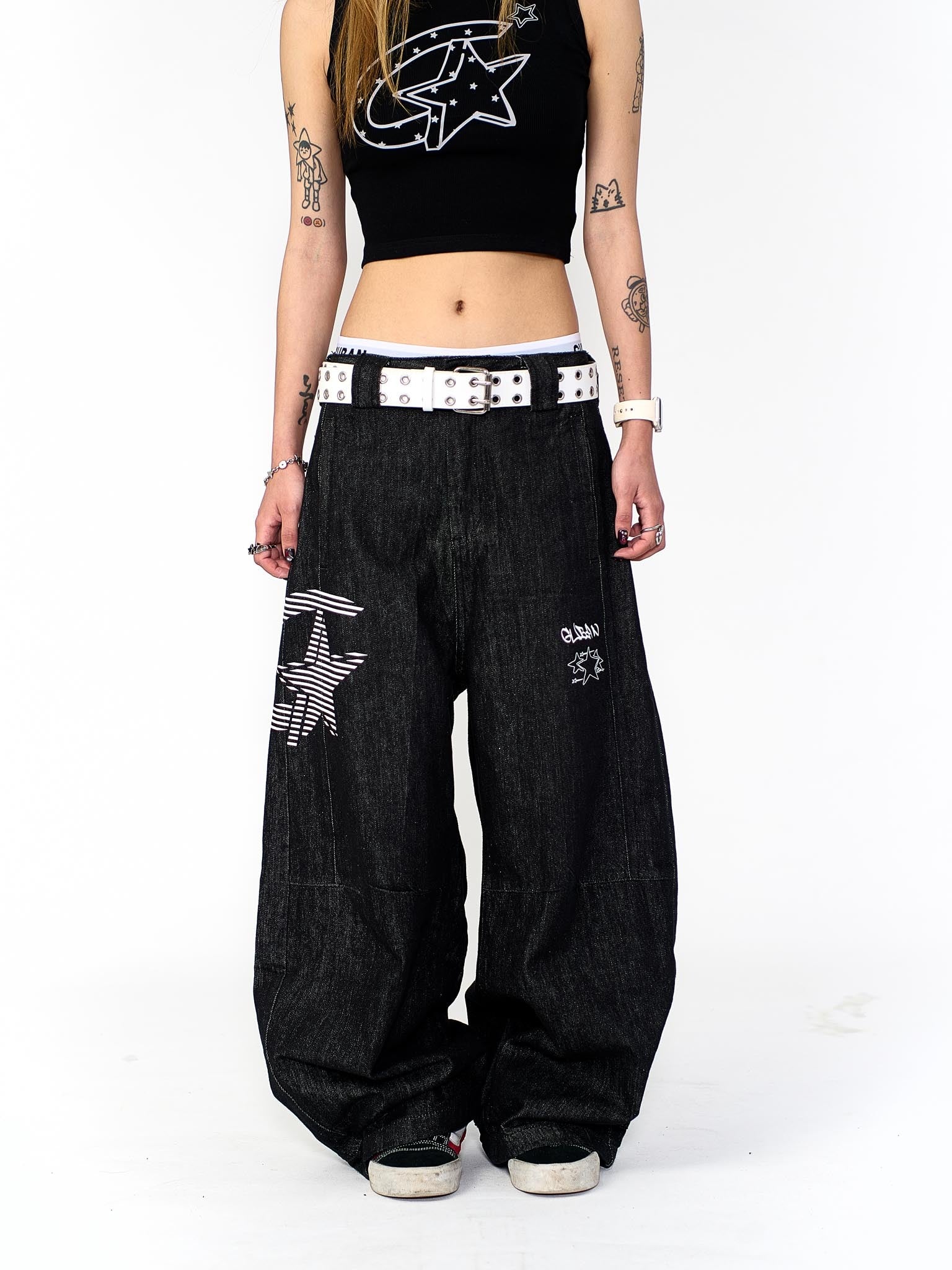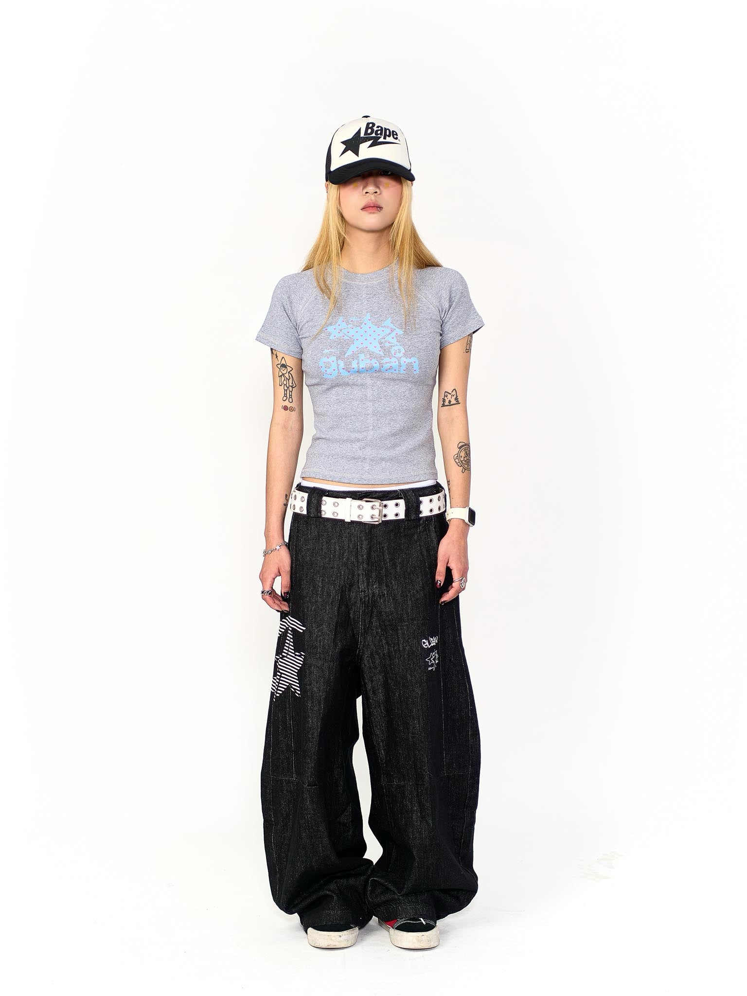 “MADE 𝗚𝘂𝗯𝗮𝗻 " 星星 街舞 彎刀 原創 原牛 闊腿 做舊 牛仔褲