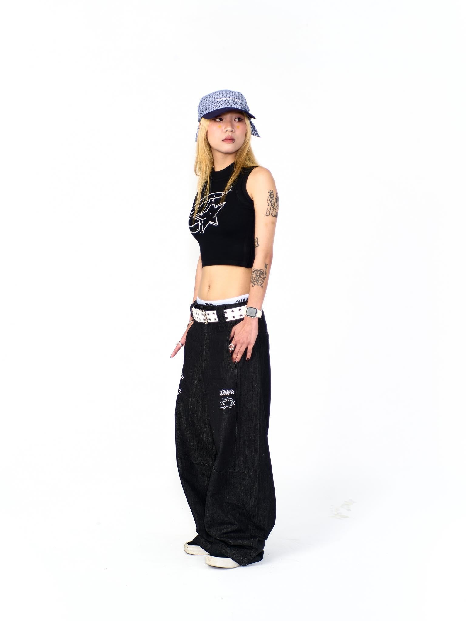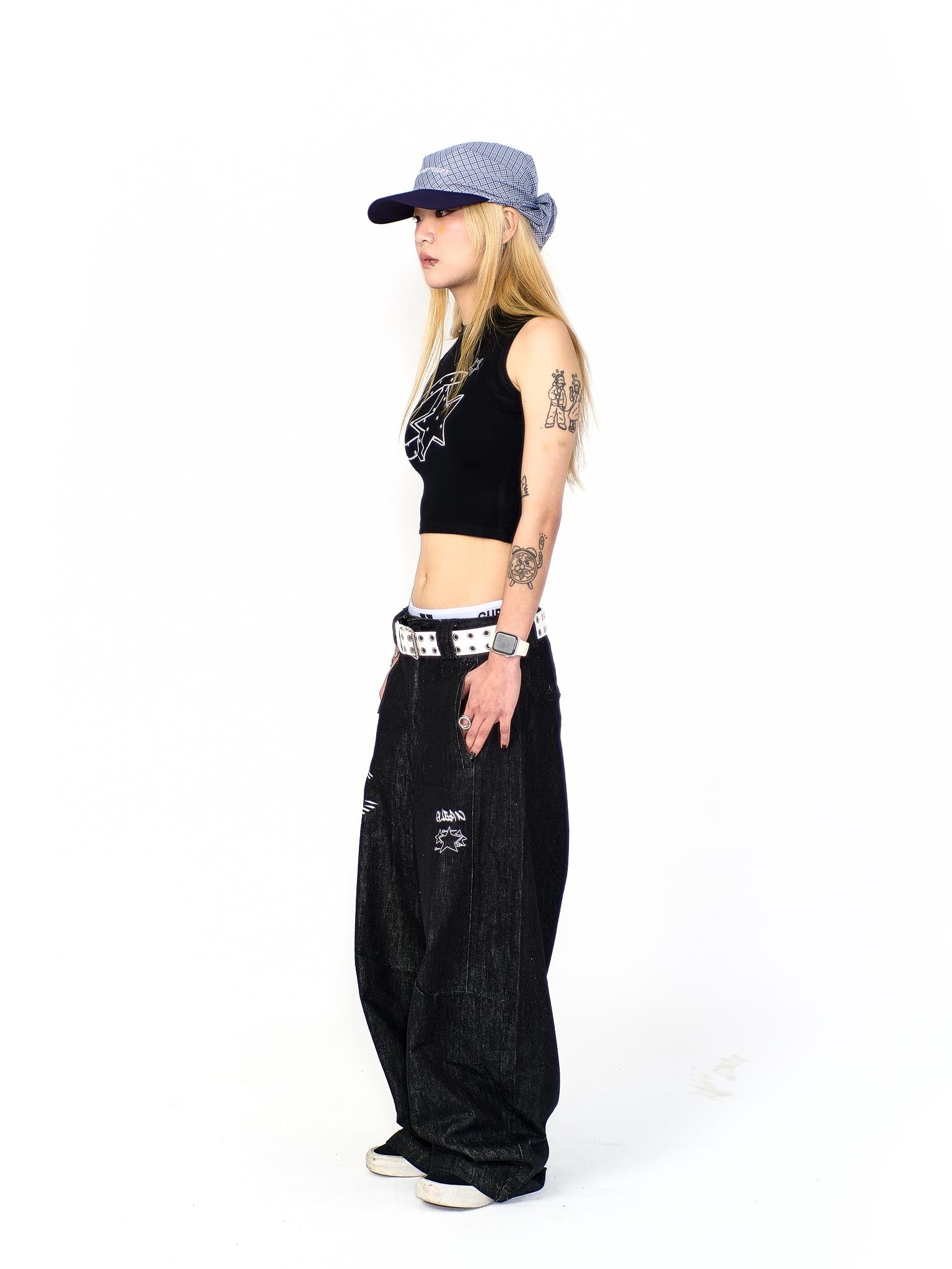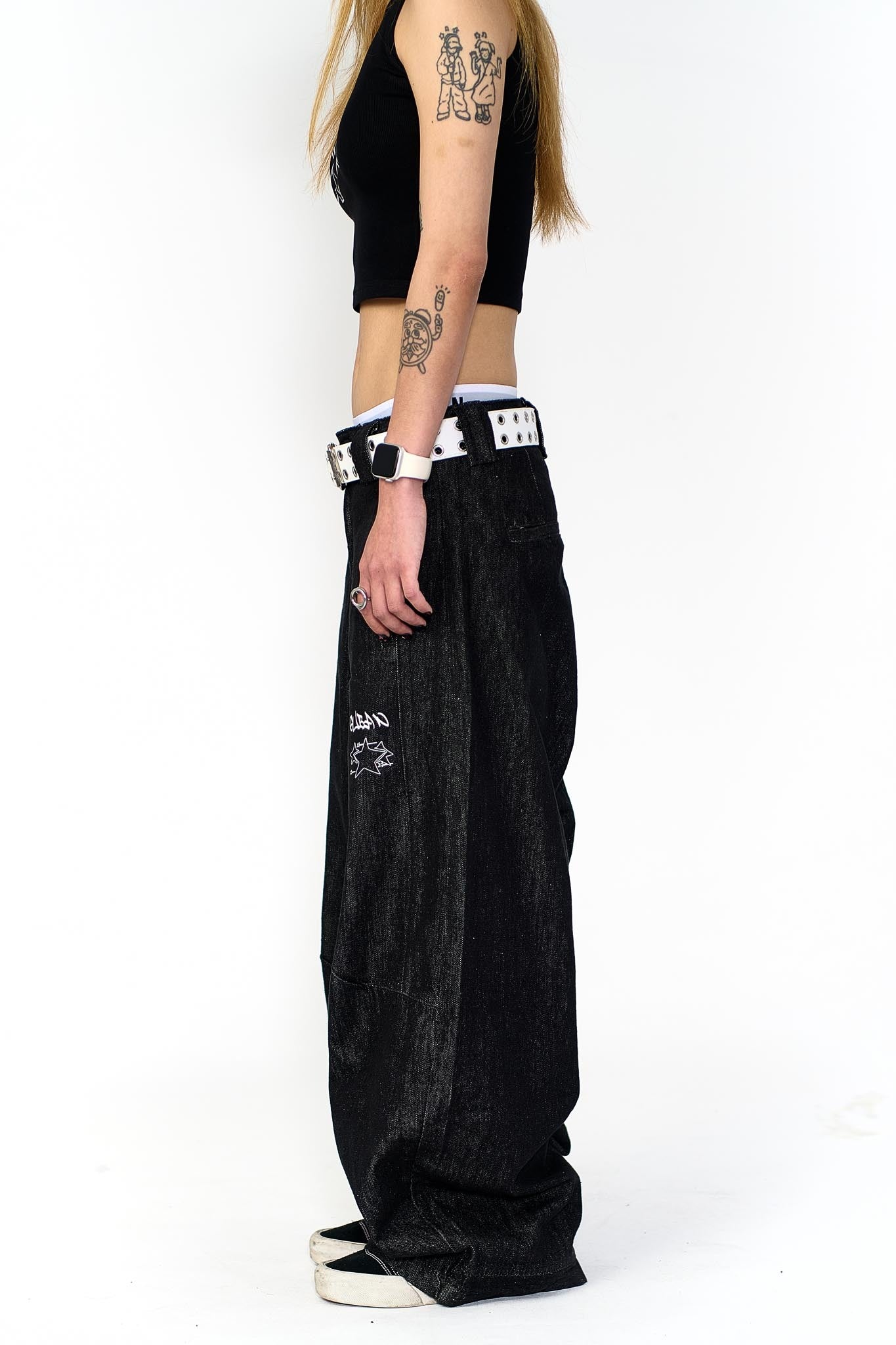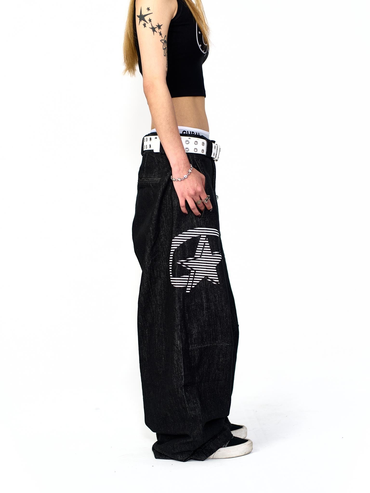 “MADE 𝗚𝘂𝗯𝗮𝗻 " 星星 街舞 彎刀 原創 原牛 闊腿 做舊 牛仔褲