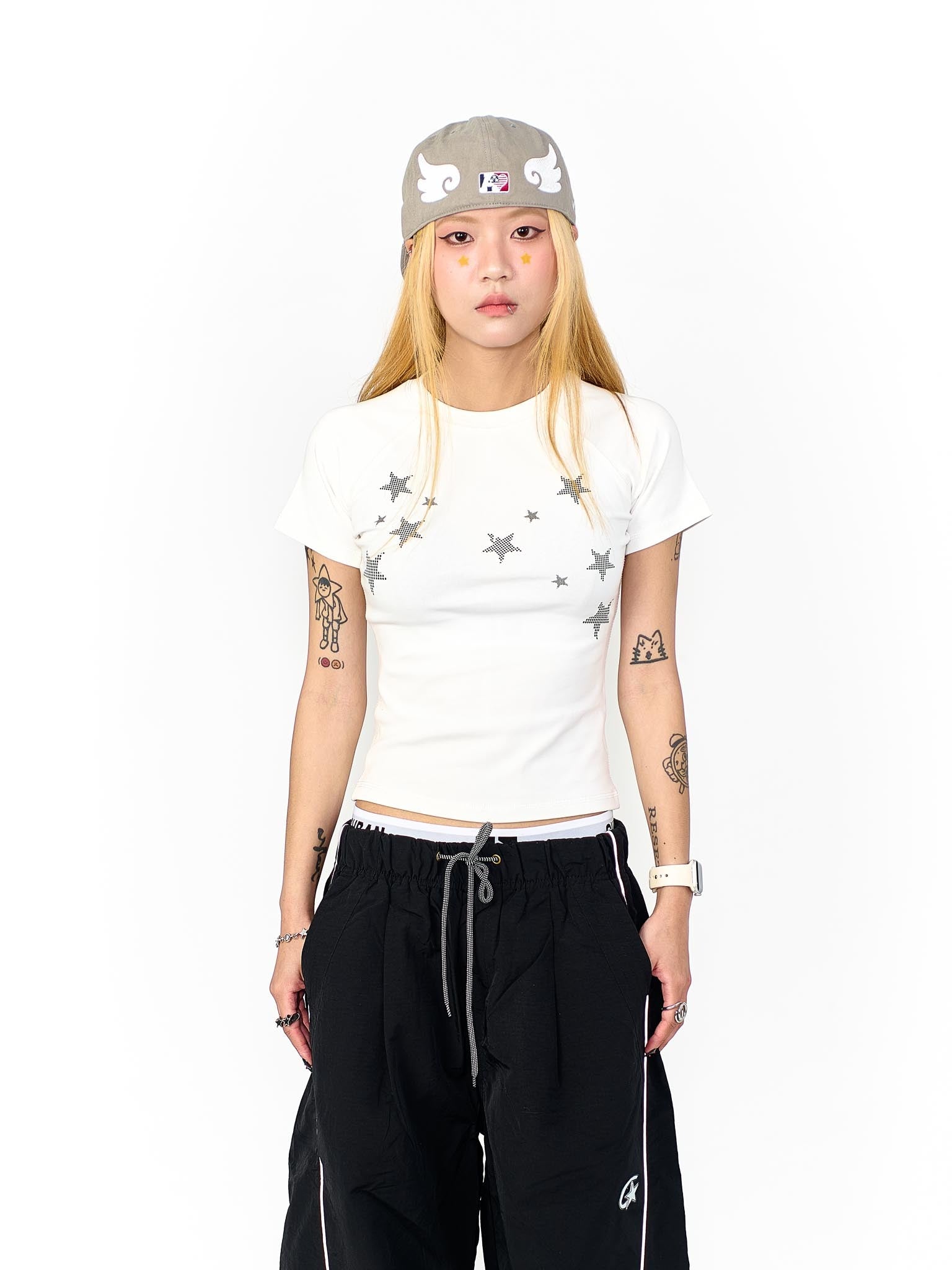 “MADE 𝗚𝘂𝗯𝗮𝗻 " T-W13 " 滿天星 星星 街舞 正肩 短板 彈性 短袖