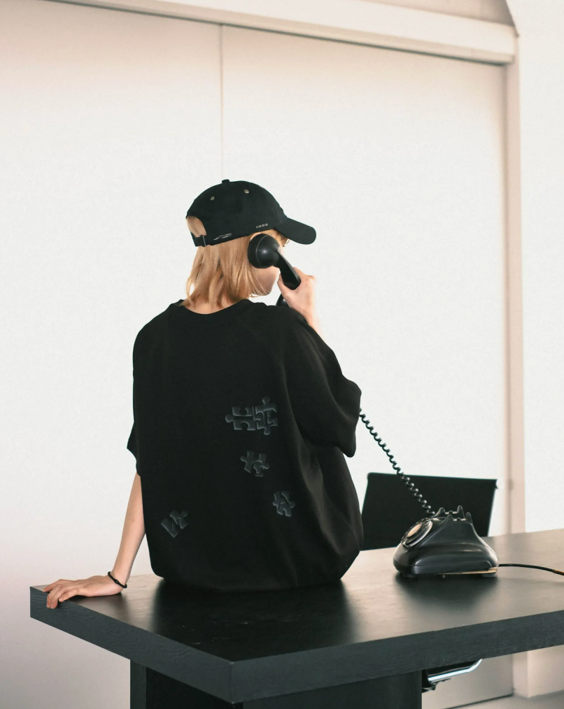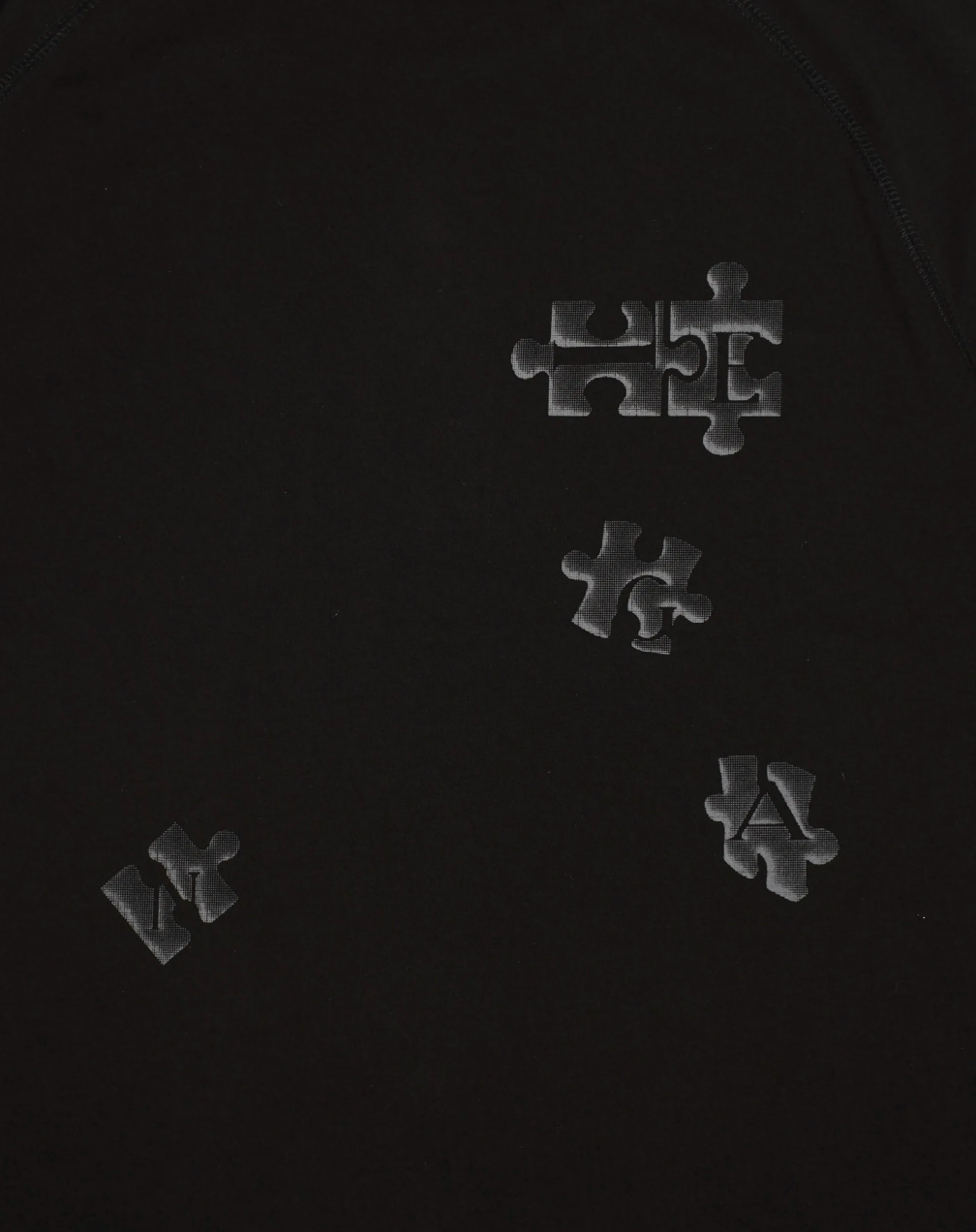 背後的Angel拼圖印花不規則散落。