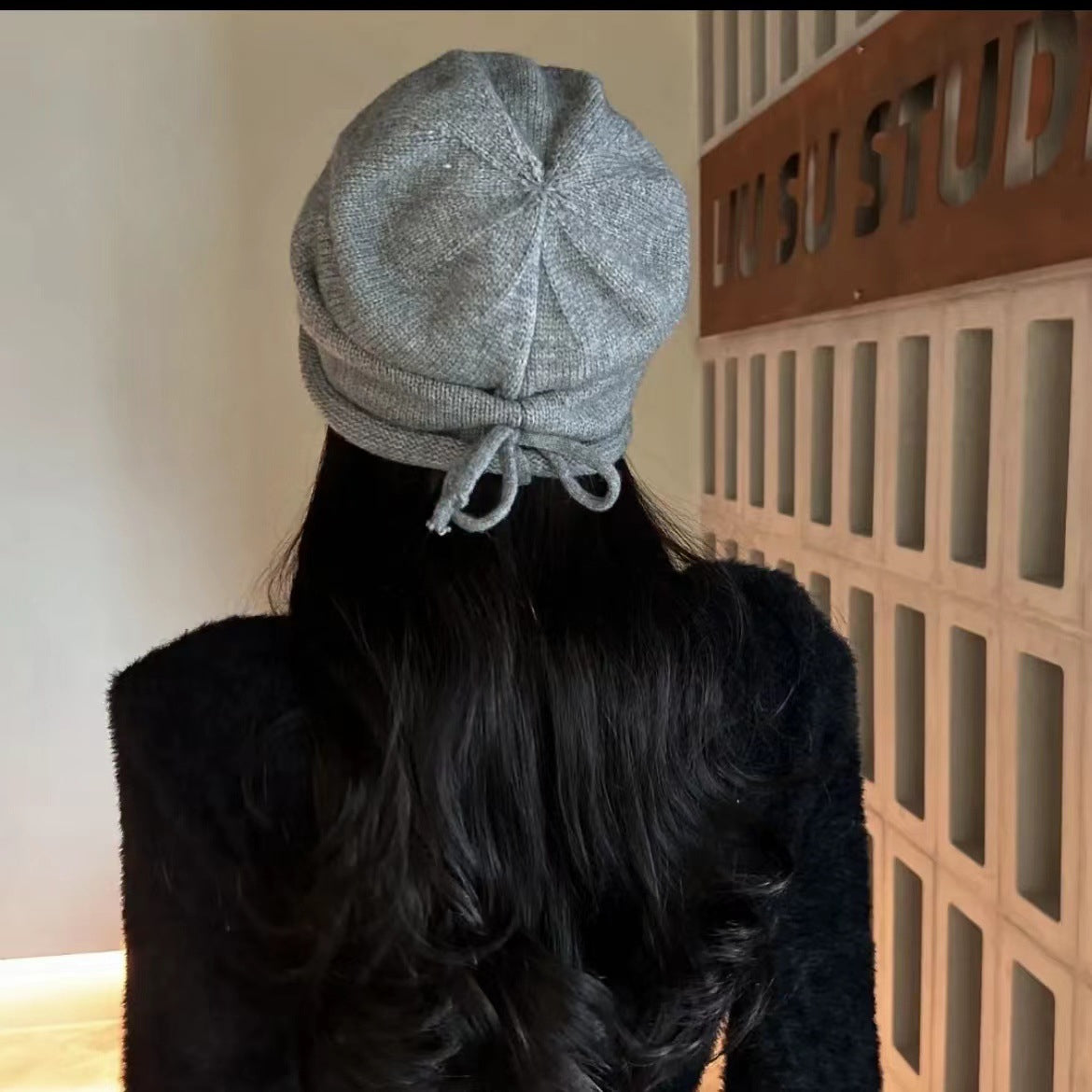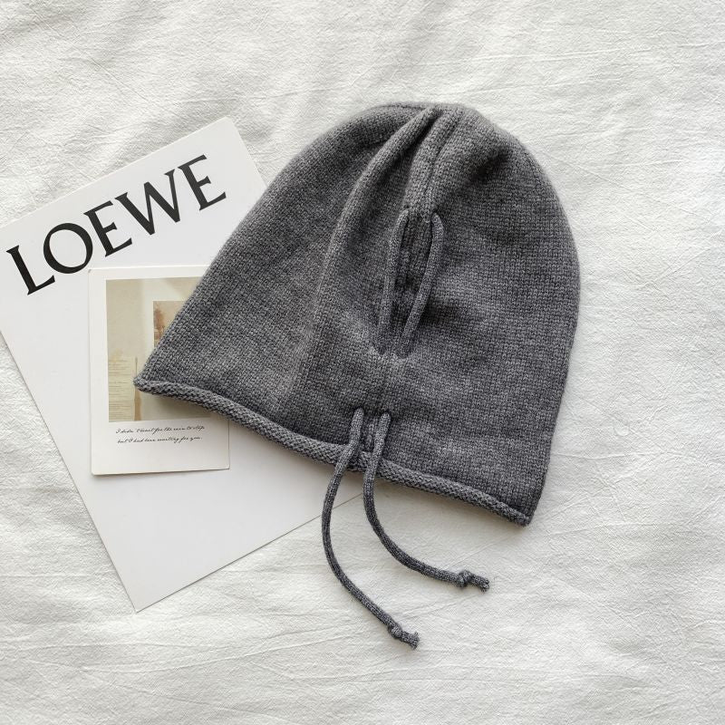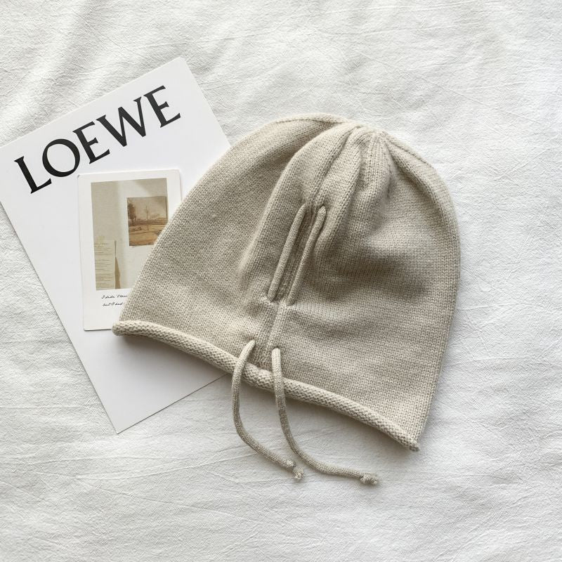抽繩 套頭 卷邊 慵懶 針織 毛帽