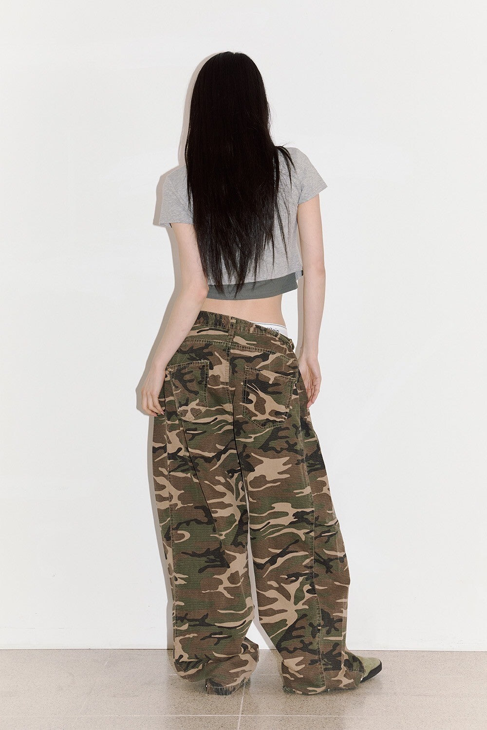 迷彩 防撕裂 側邊折疊 闊腿 長褲