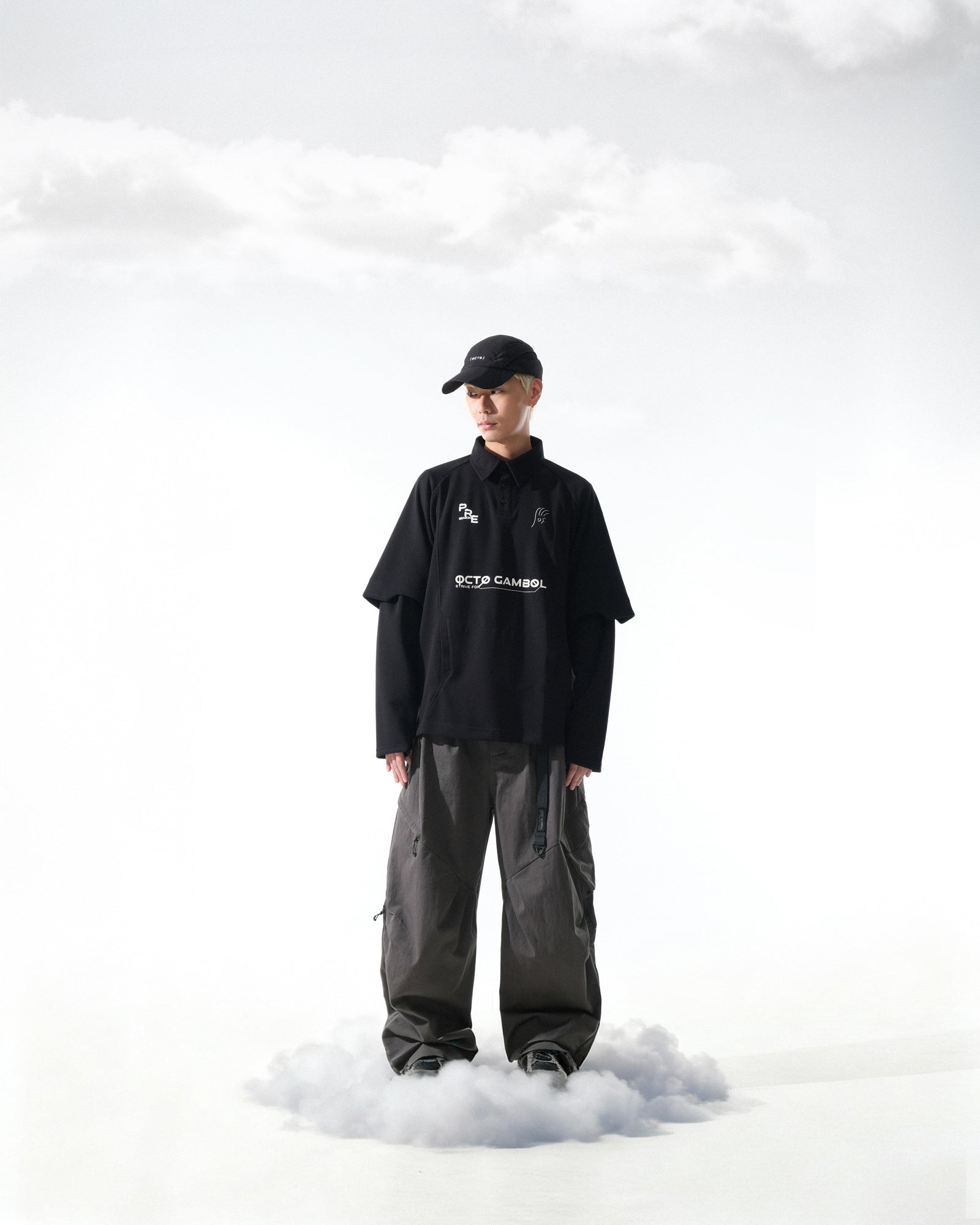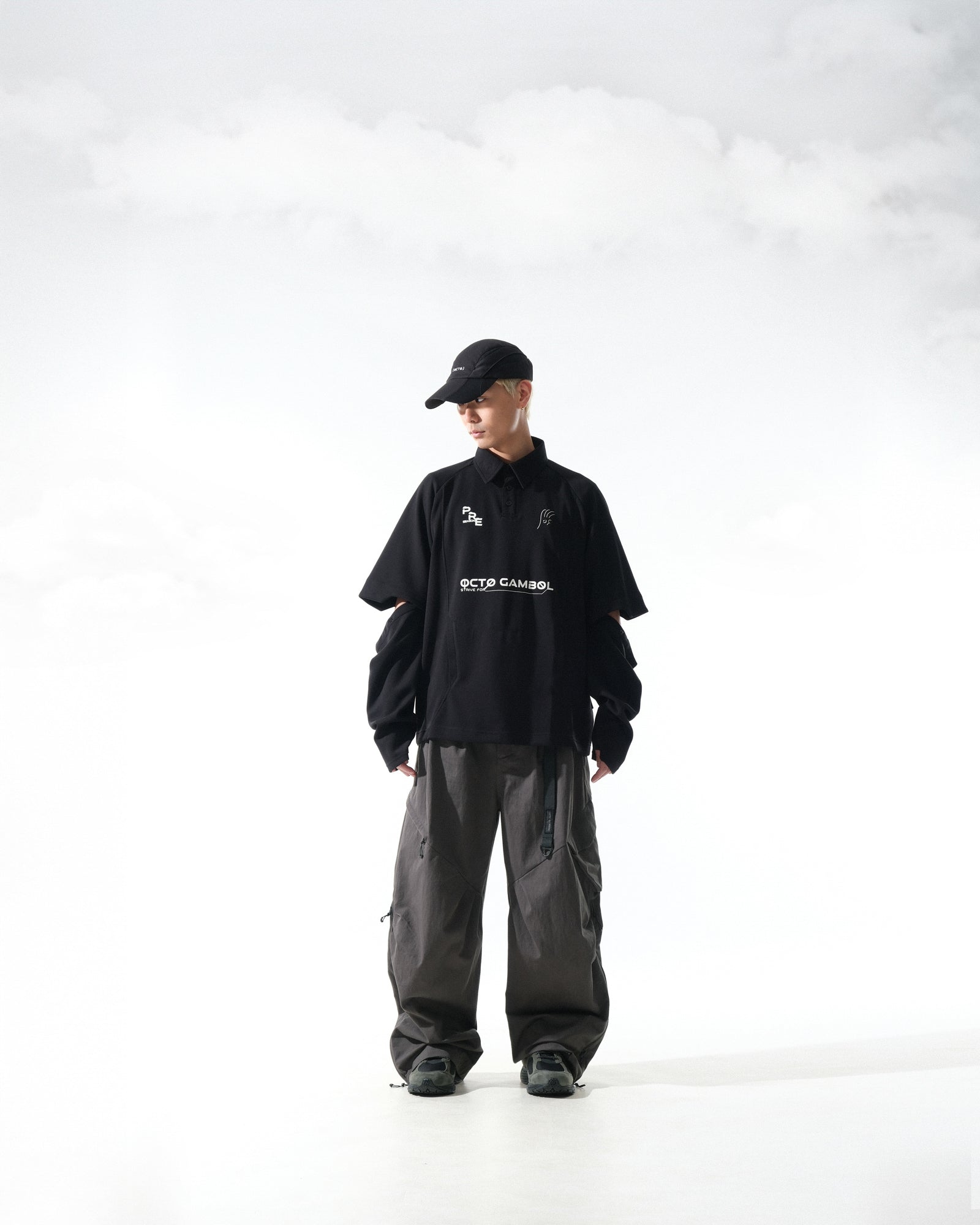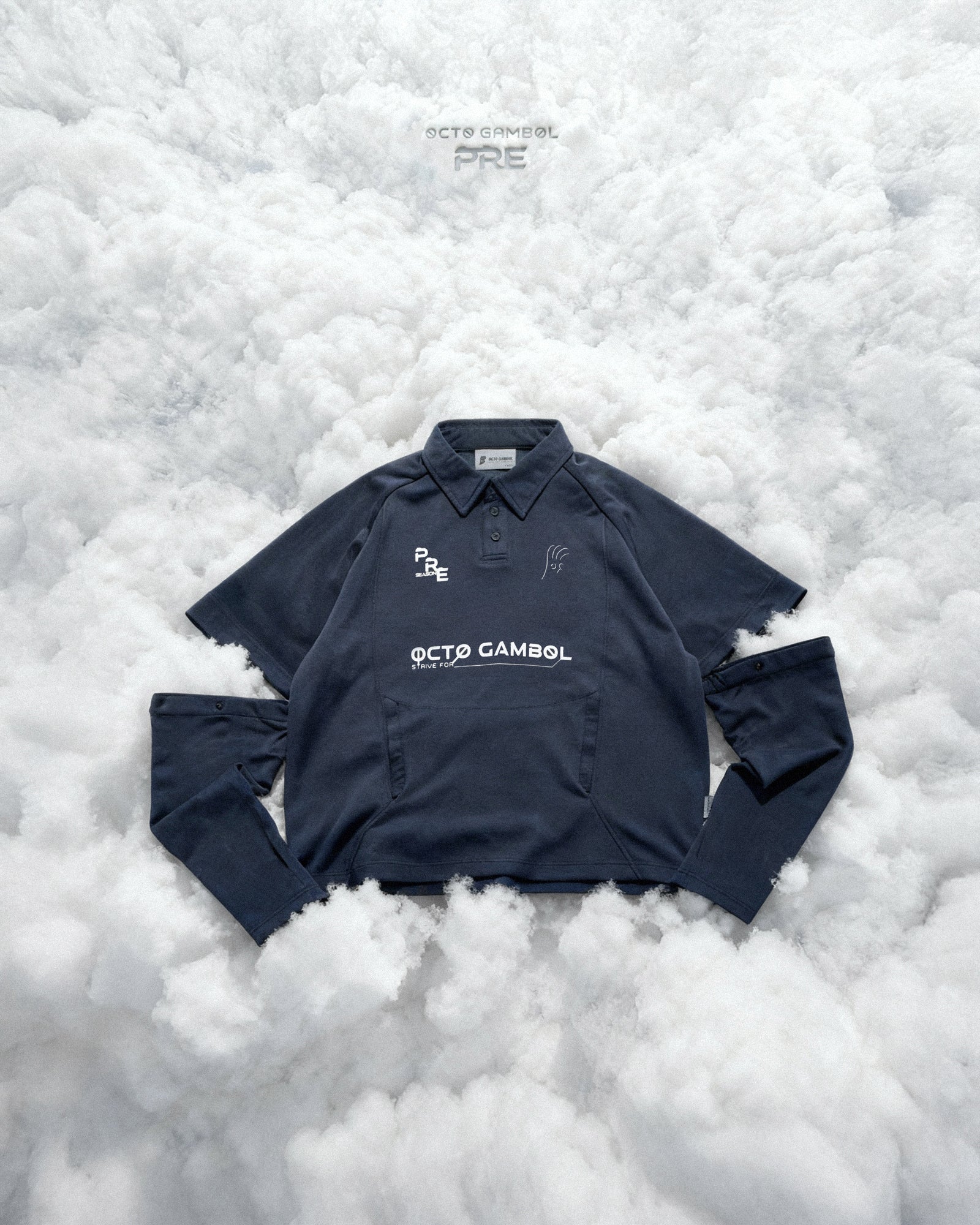 以靈活應對四季為概念,透過可拆卸式袖管設計與透氣內層,讓單品於短袖與長袖之間自由切換。結合透氣快乾布料與前幅標誌性圖像,展現 PRE-SEASON 系列的機能感與動態。
