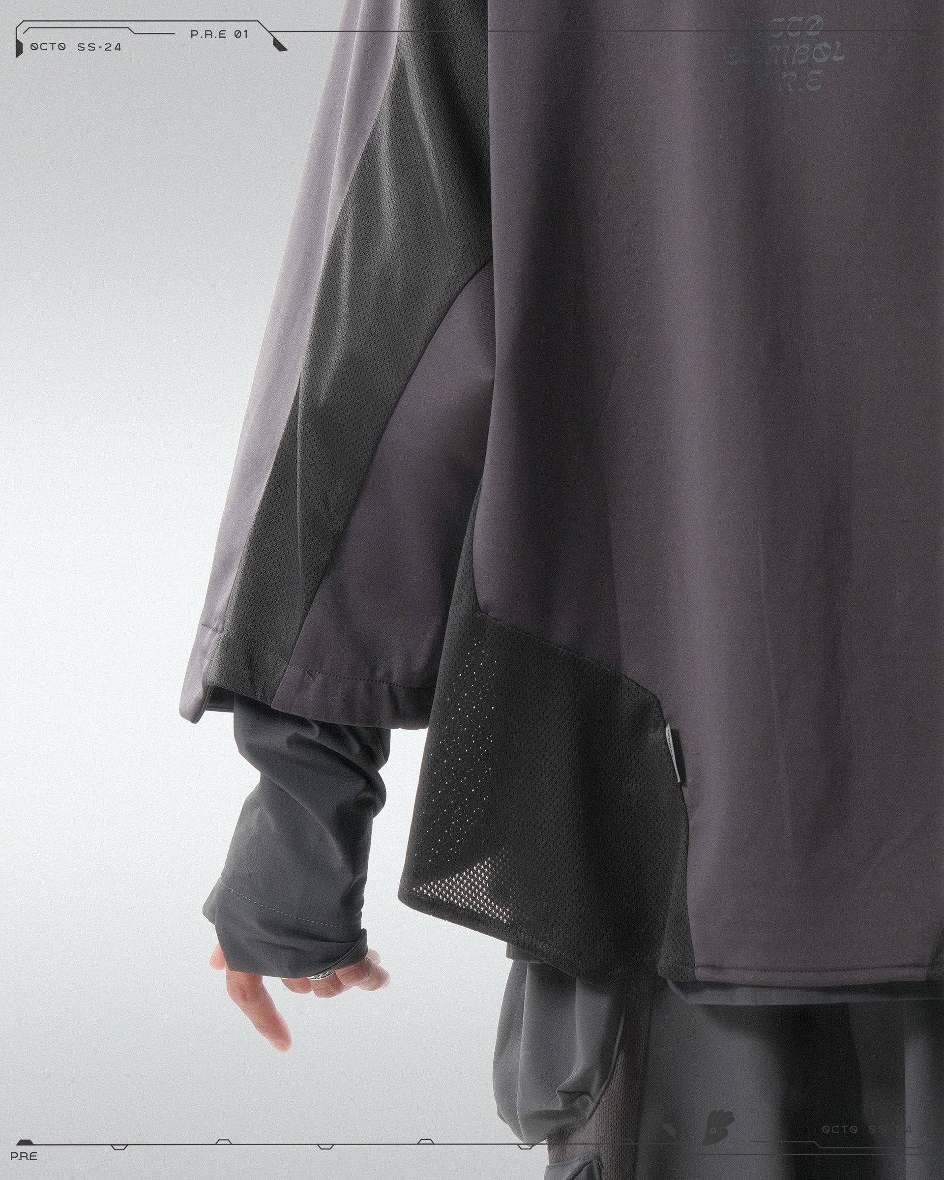 > 左右衣側及衣袖後方均使用梯形透氣拼布拼接,增強導風性降低悶熱帶來的不適感